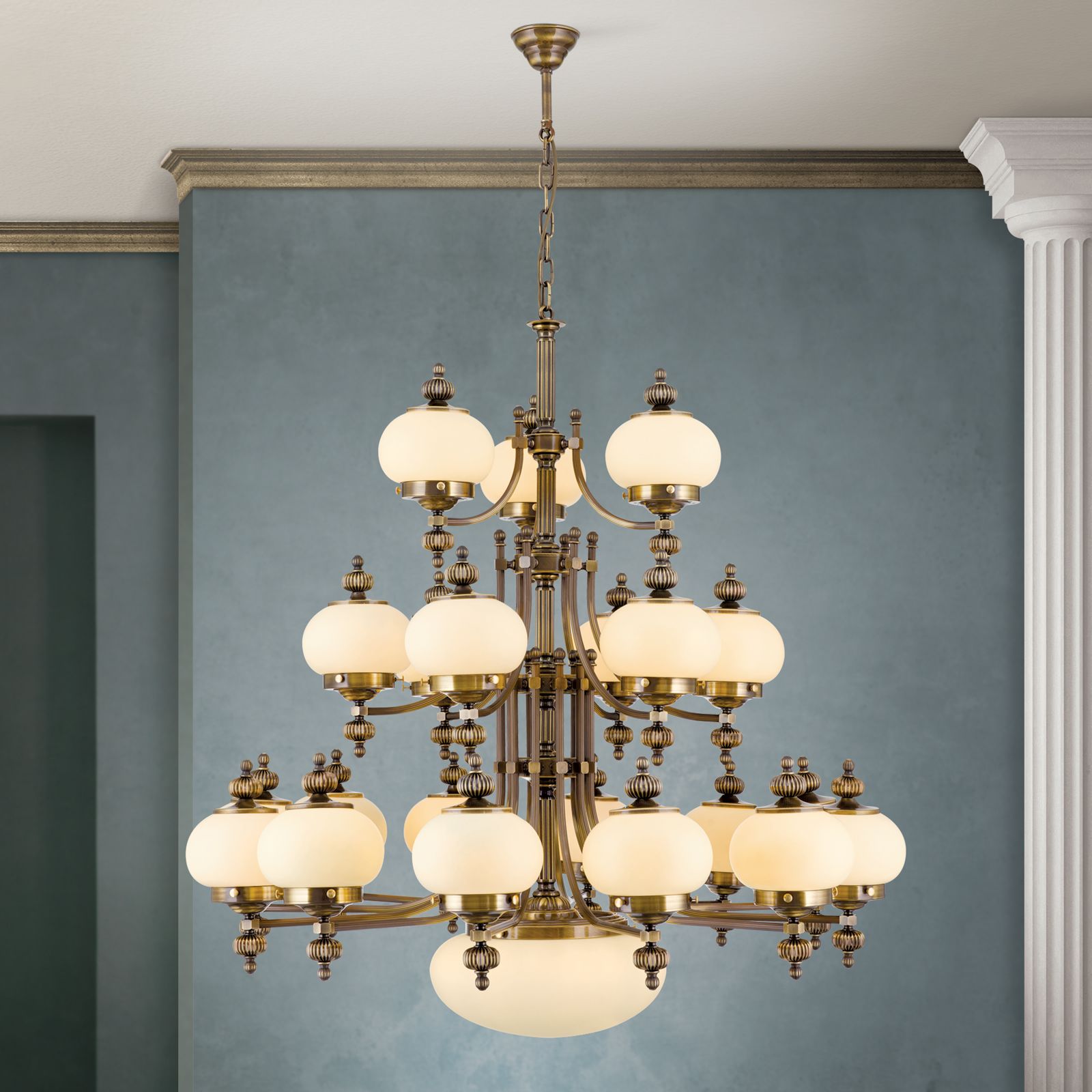 Luster WIENER NOSTALGIE, 22-flammig, Patina, mit champagne matten Gläsern, aufwärts