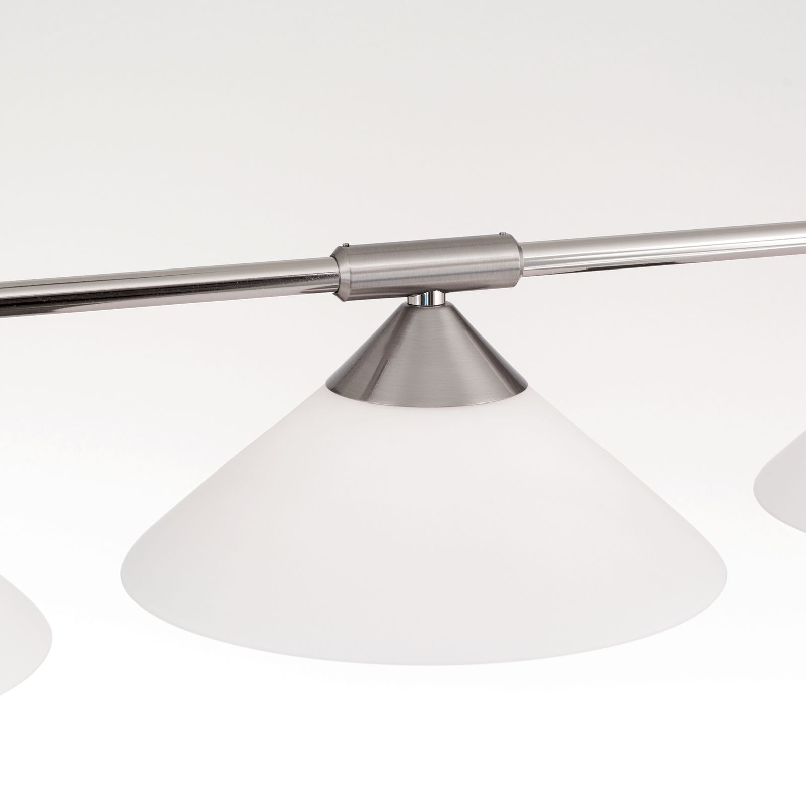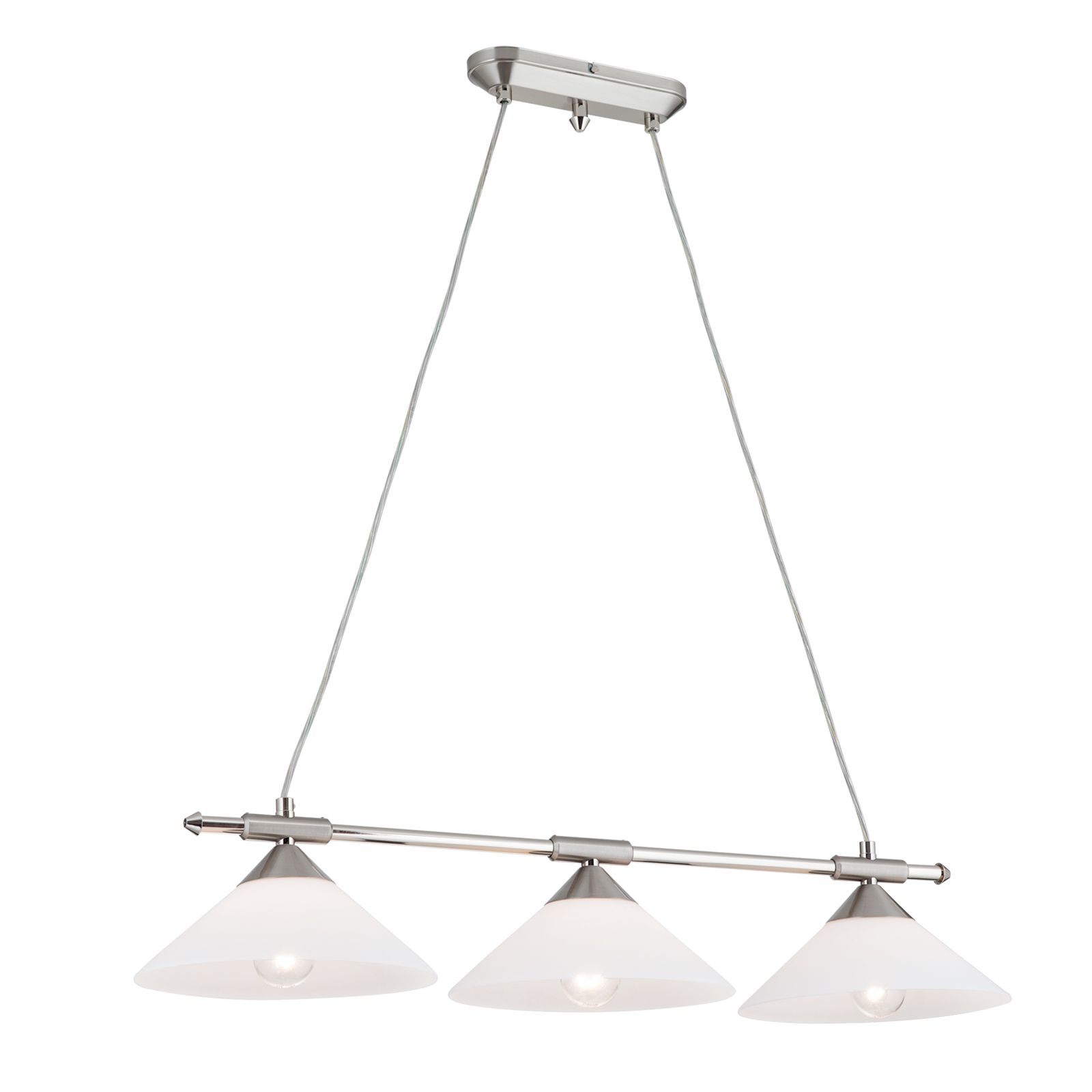 ARTDESIGN triple penant lamp, satin chrome finish & opal glass shades