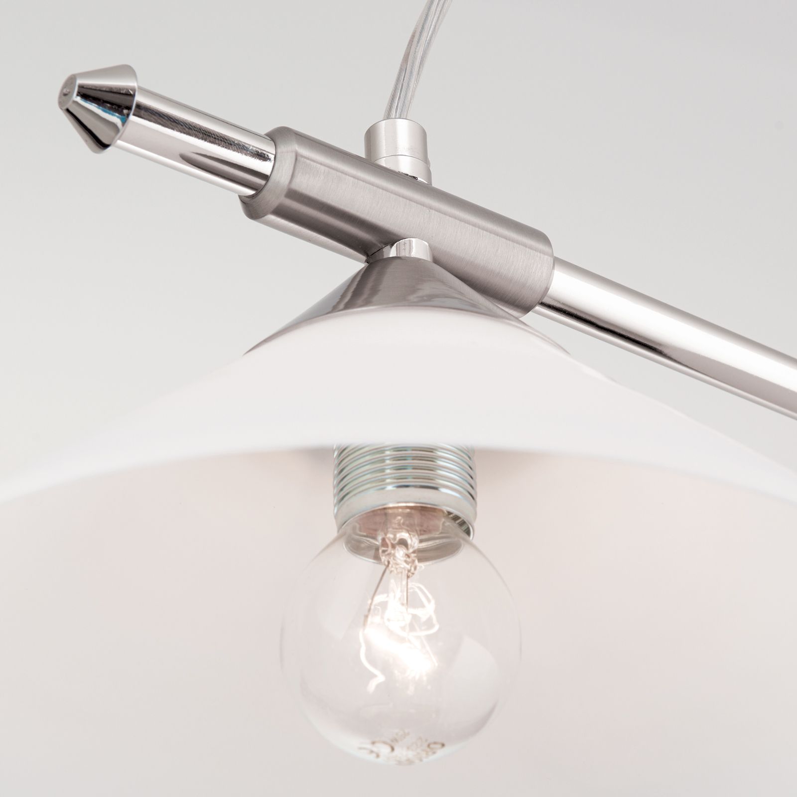 The pendant lamp is equipped with 3 E14 sockets and can be fitted with 40 watts maximum per socket. LED mirror head or matt LED bulbs are the perfect choice.