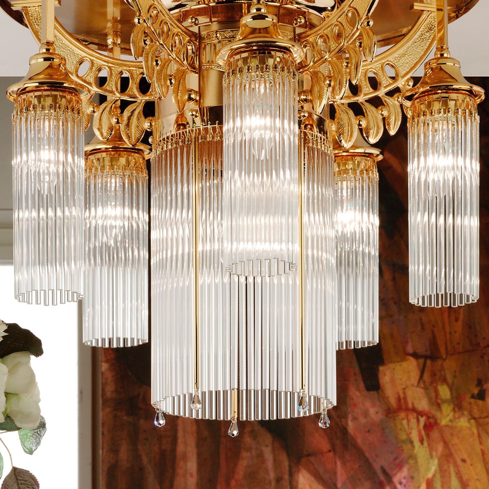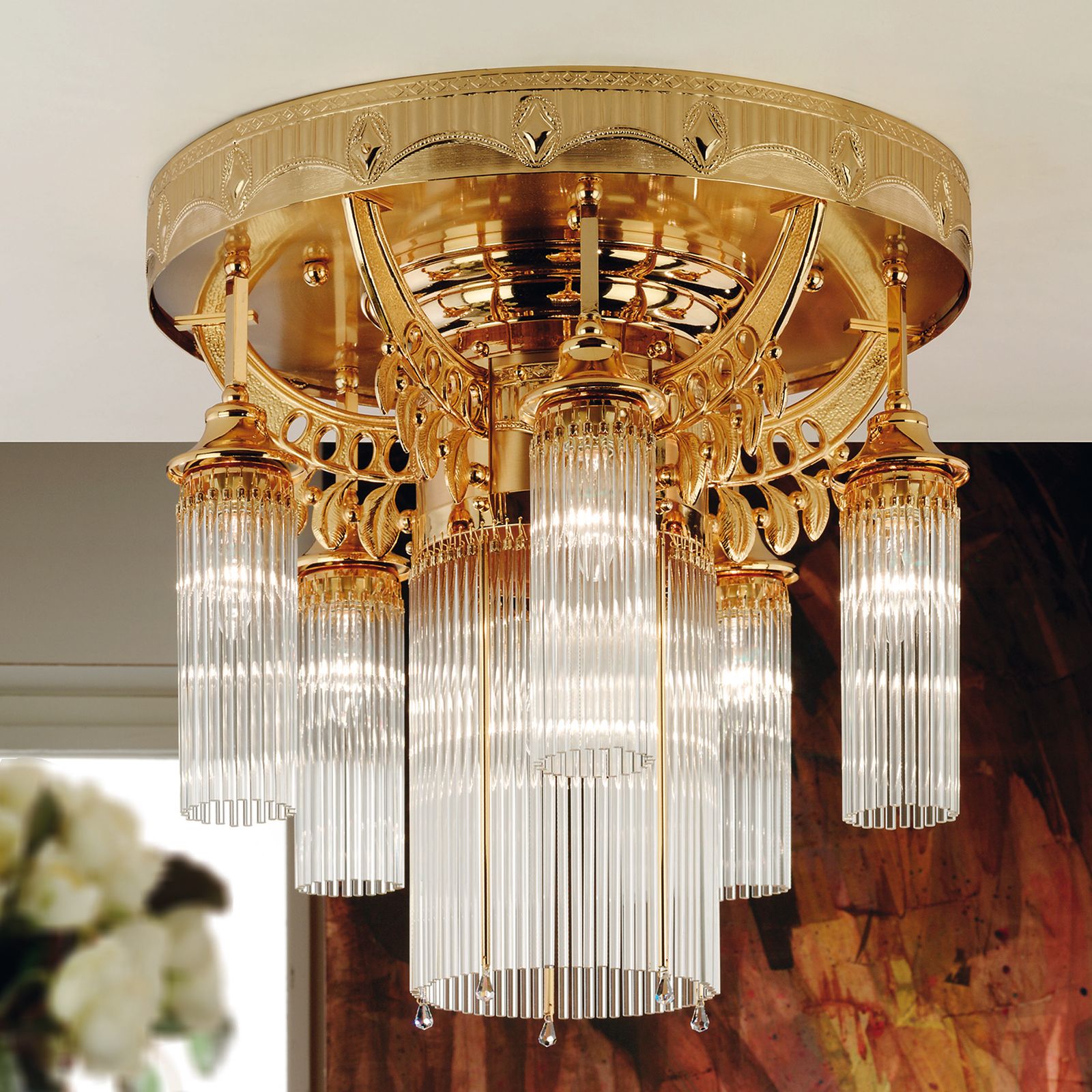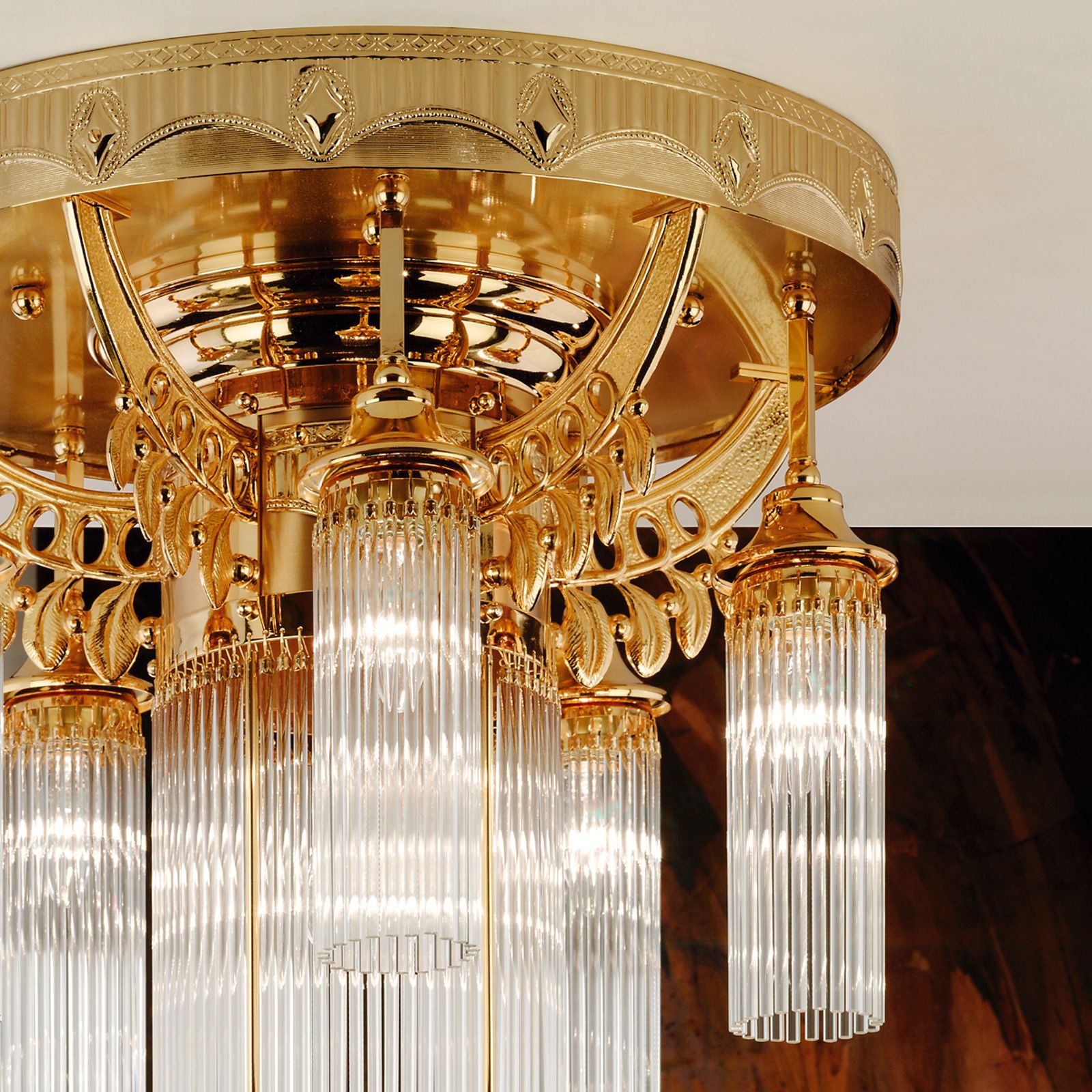 Adele Ceiling Light, 6 lamps, 24K gold plated, with crystal glass sticks