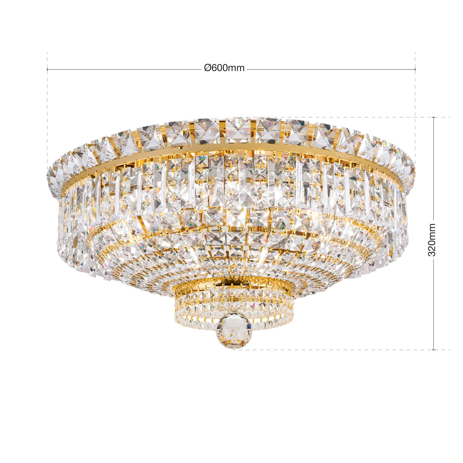 This ceiling chandelier is available in finishes: chrome, gold (24-carat). This product is a shipping item.