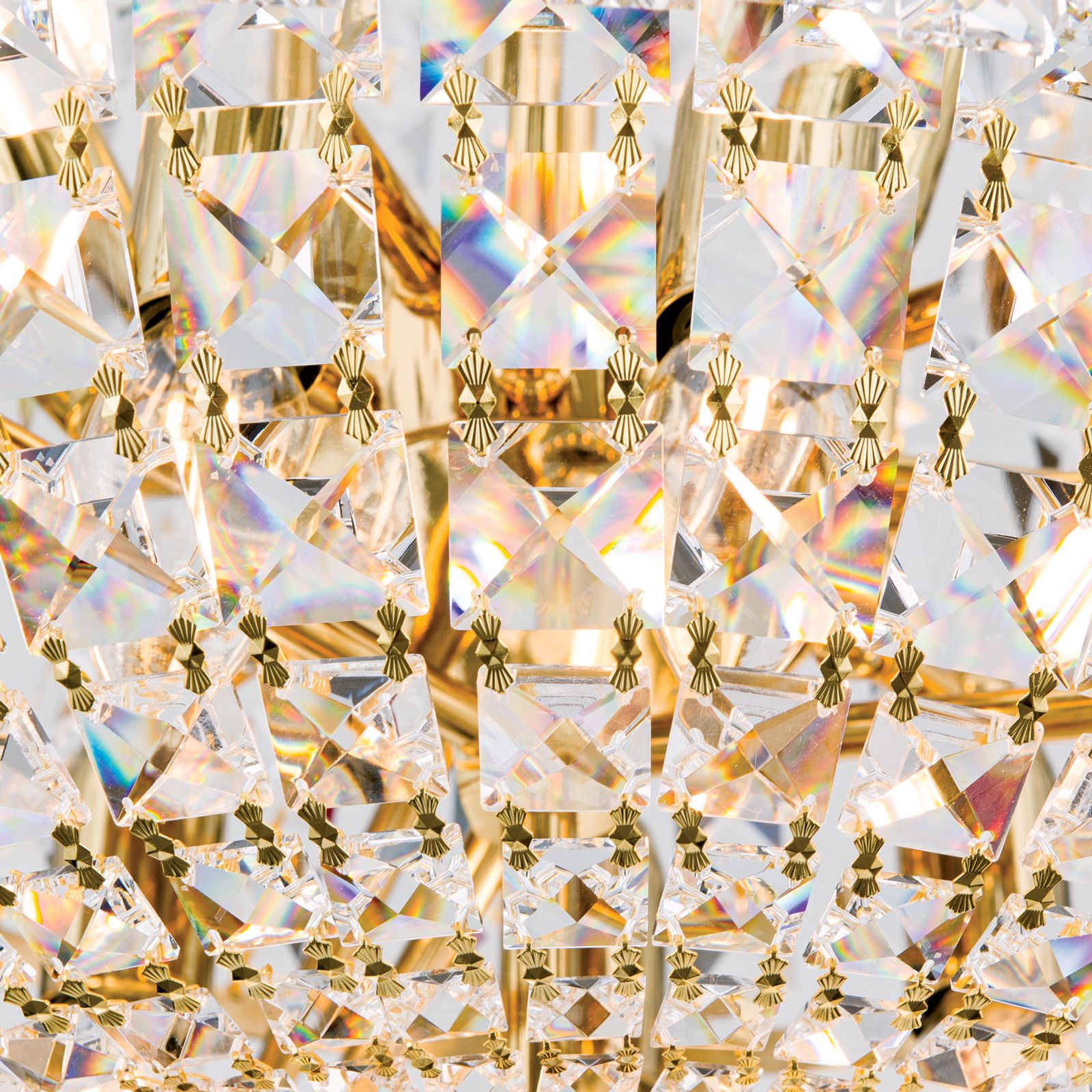 The chandelier is available in chrome and 24-carat gold plating finishes. Please note that this product is a shipping item.