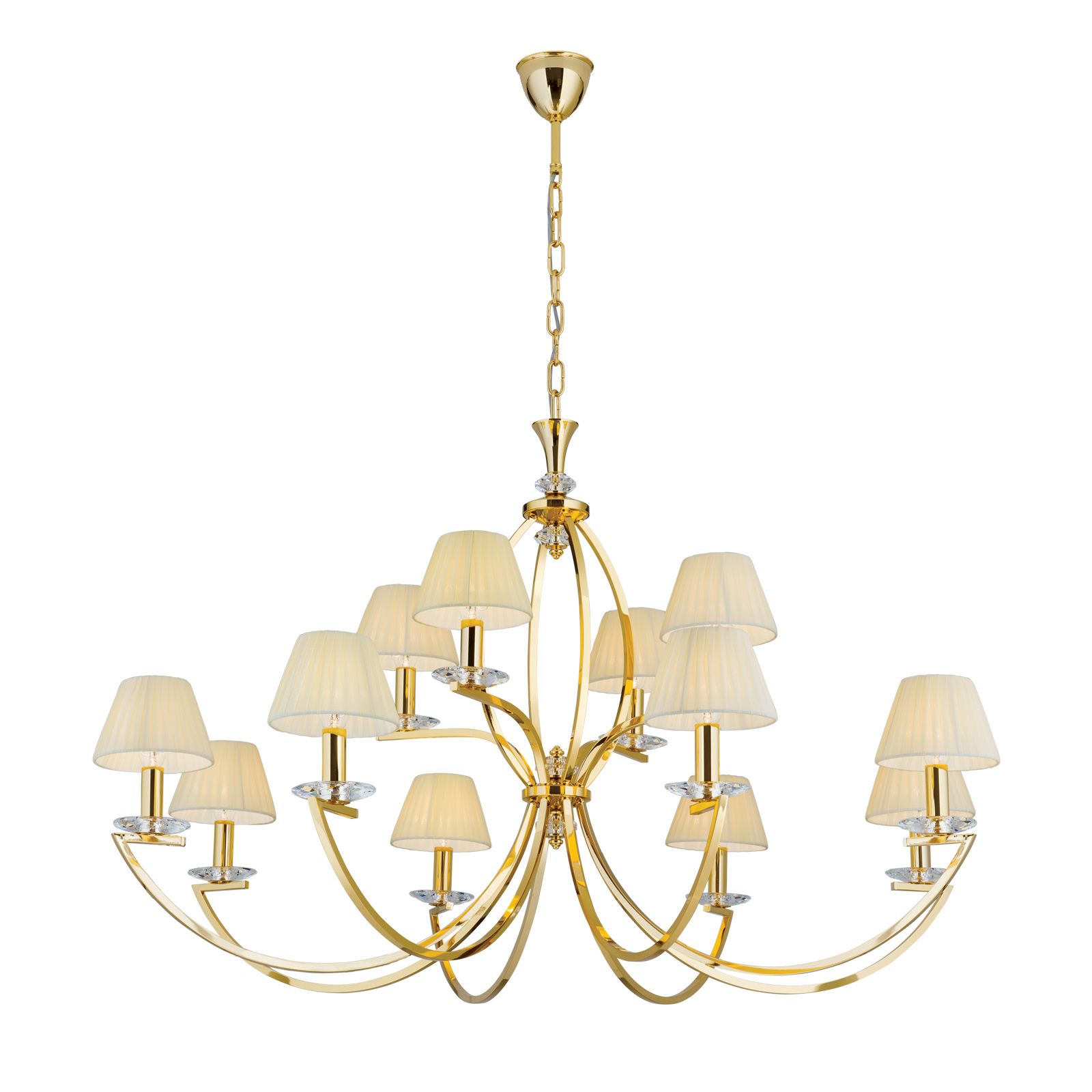 Avala Chandelier, 12 lamps, 24K gold plated and champagne shades