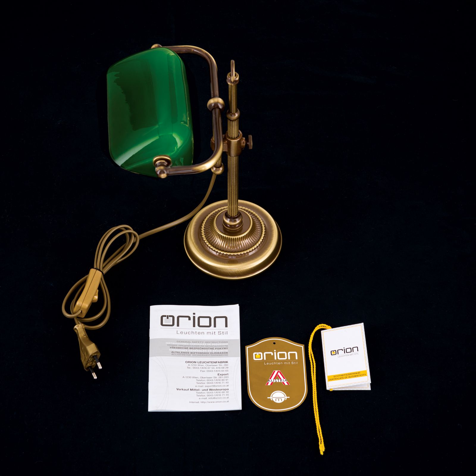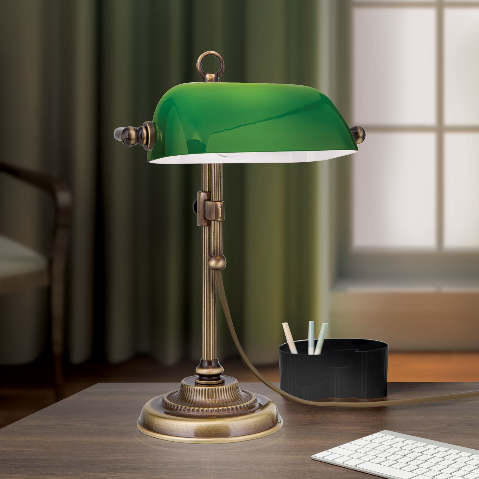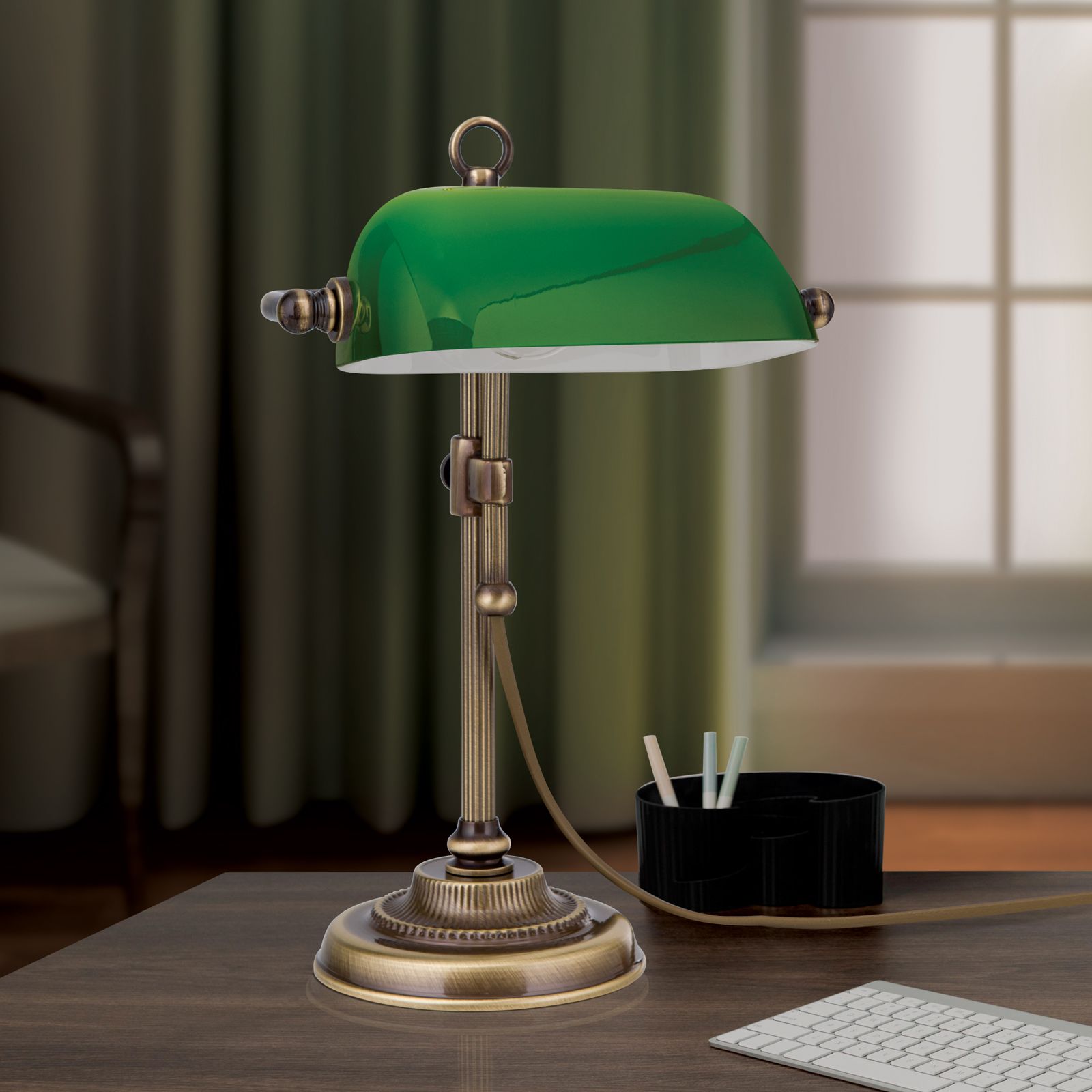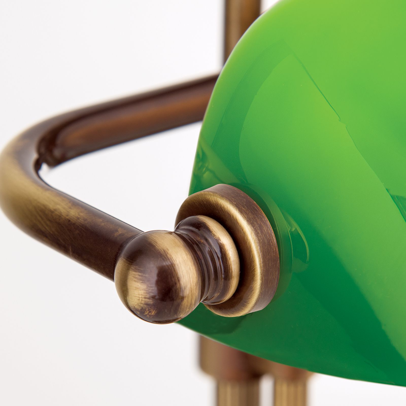 Bench lamp HARVARD, patina with green glass shade, 32cm