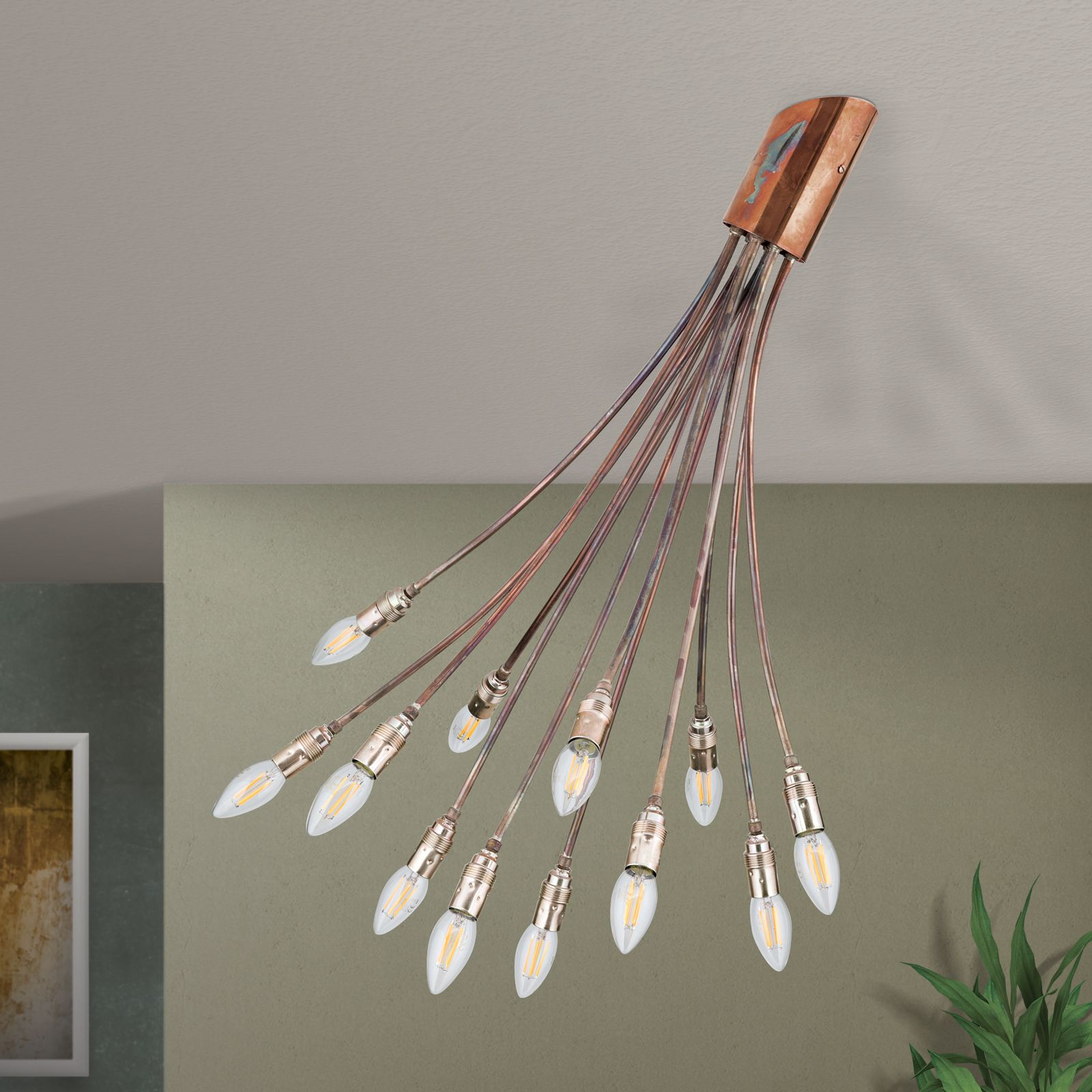 COPPY ceiling light, 12-lamps, copper