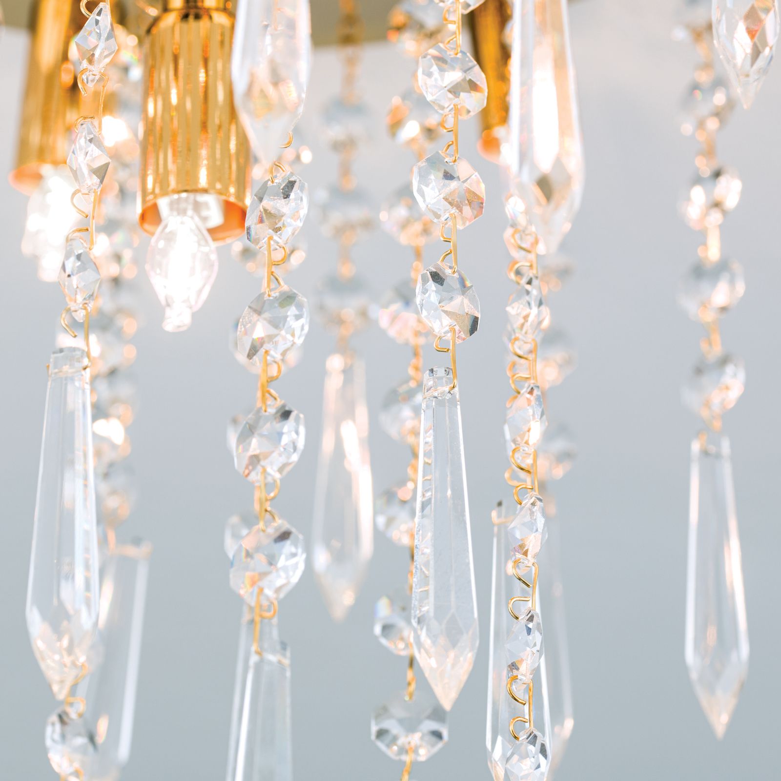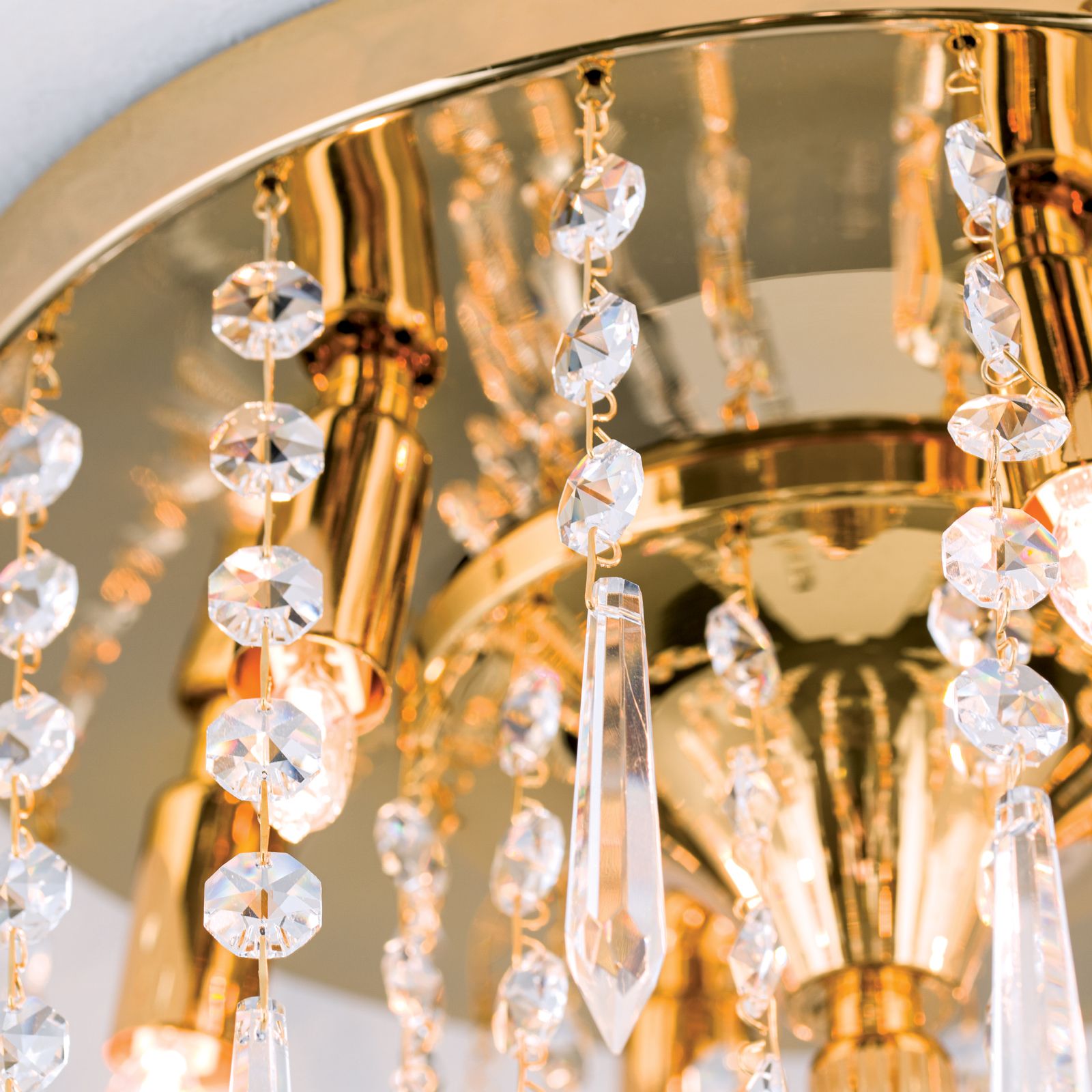 The highlight of this magnificent chandelier is undoubtedly its cap made of individual 1A full-cut crystal glass elements. These sparkling crystals catch the light and refract it in all directions to create a stunning play of light. Your room is bathed in a sparkling, glittering ambience that creates a warm and inviting atmosphere.