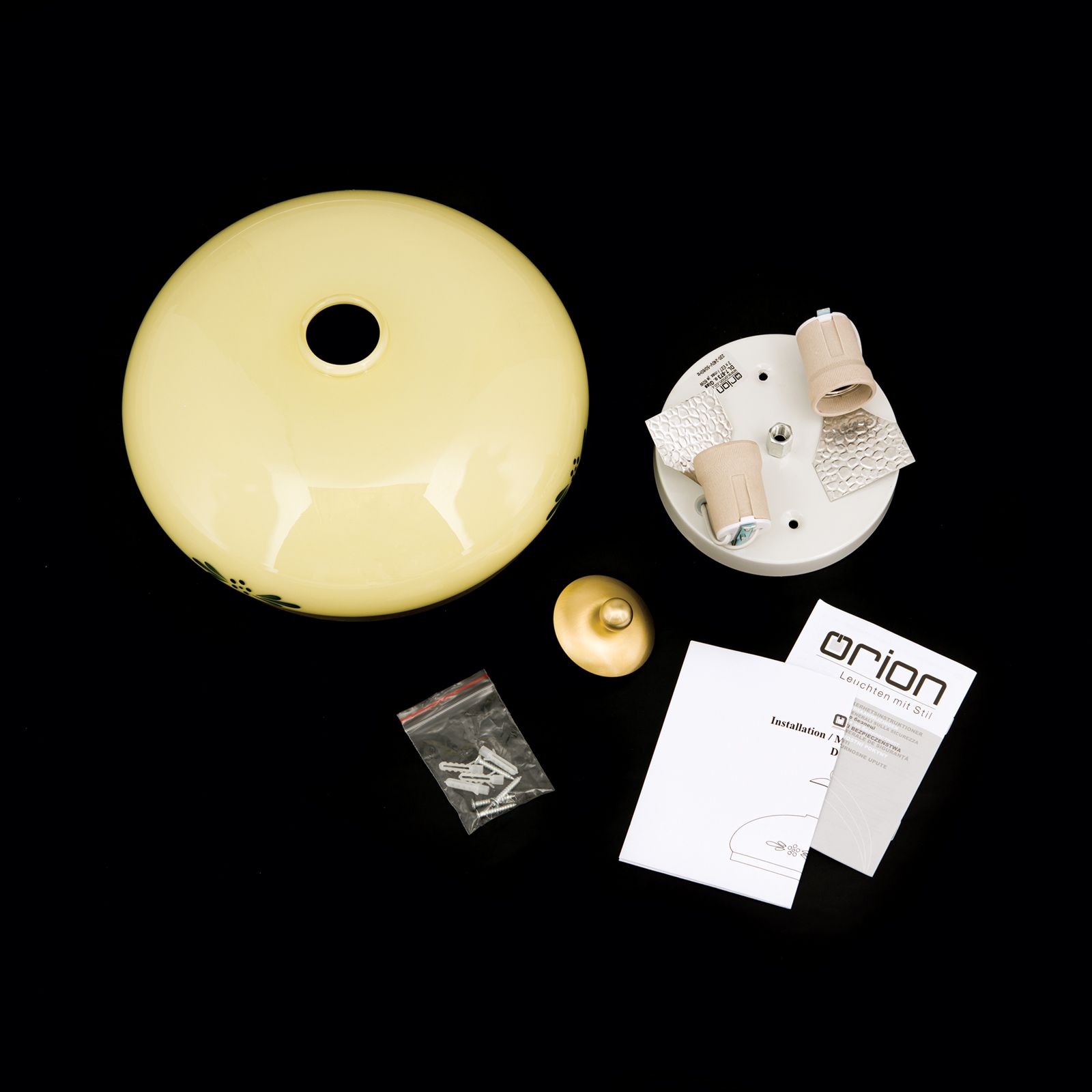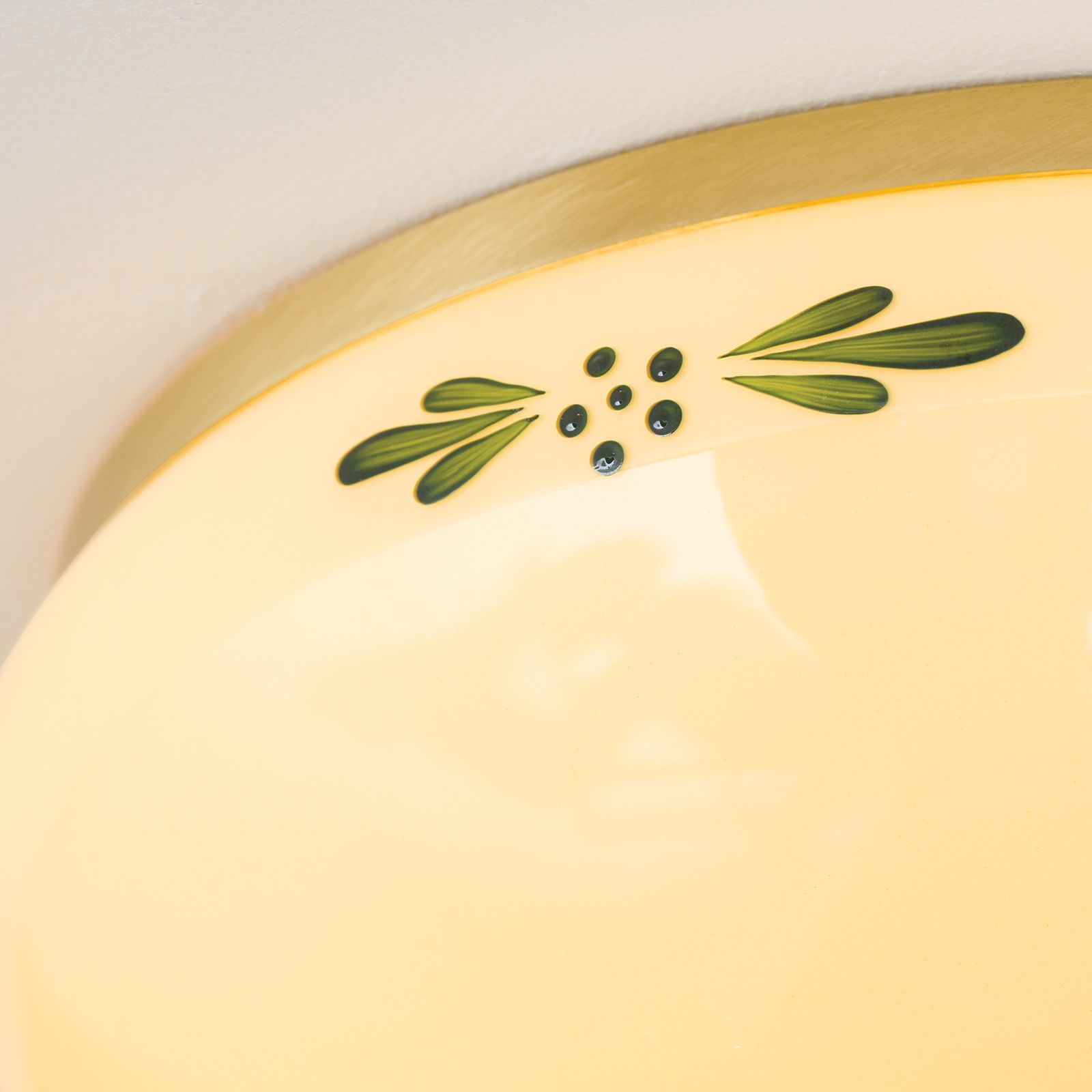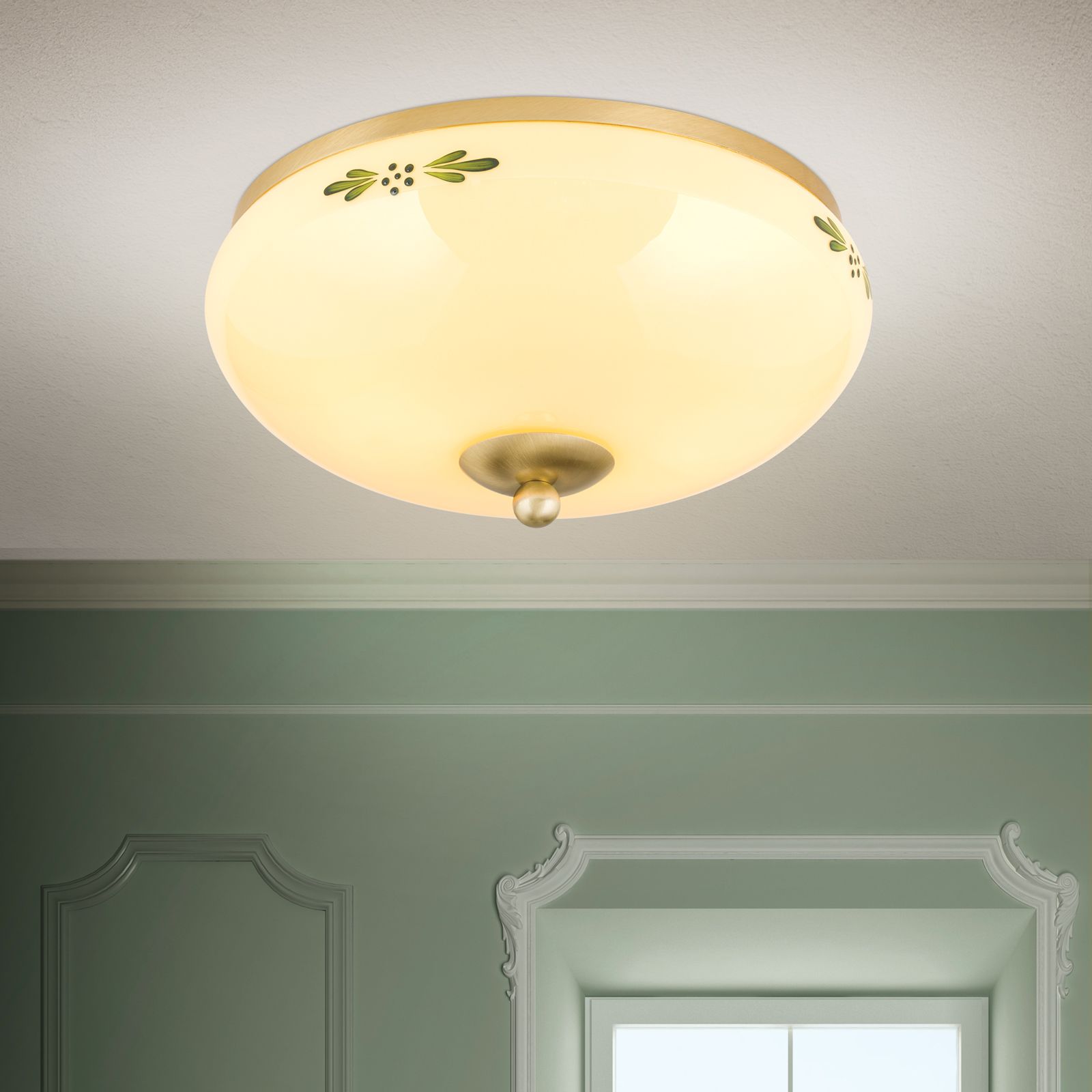 Ceiling lamp LANDHAUS, brass, with green decoration, with knob, Ø 28cm