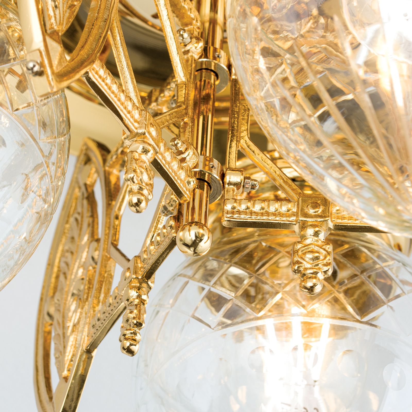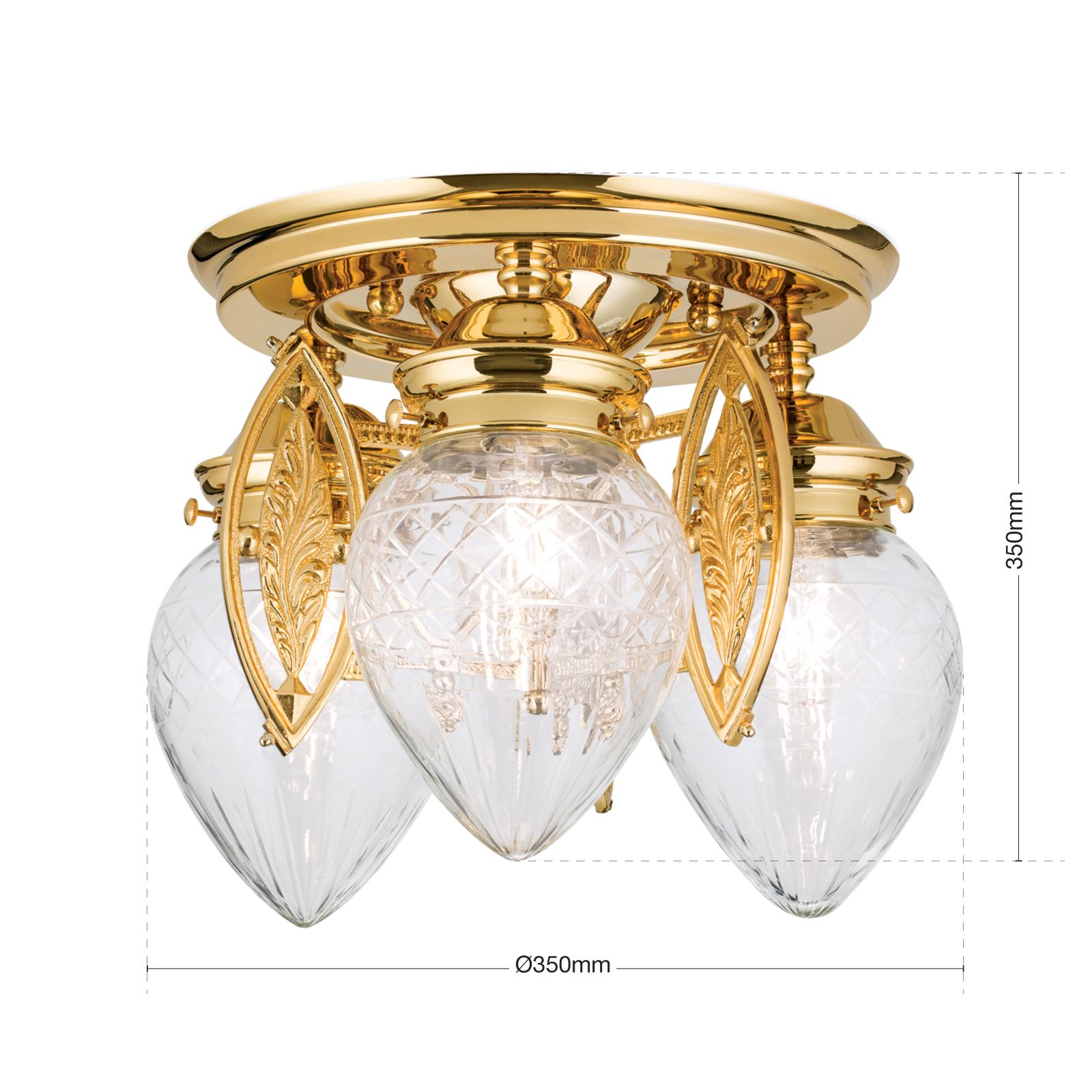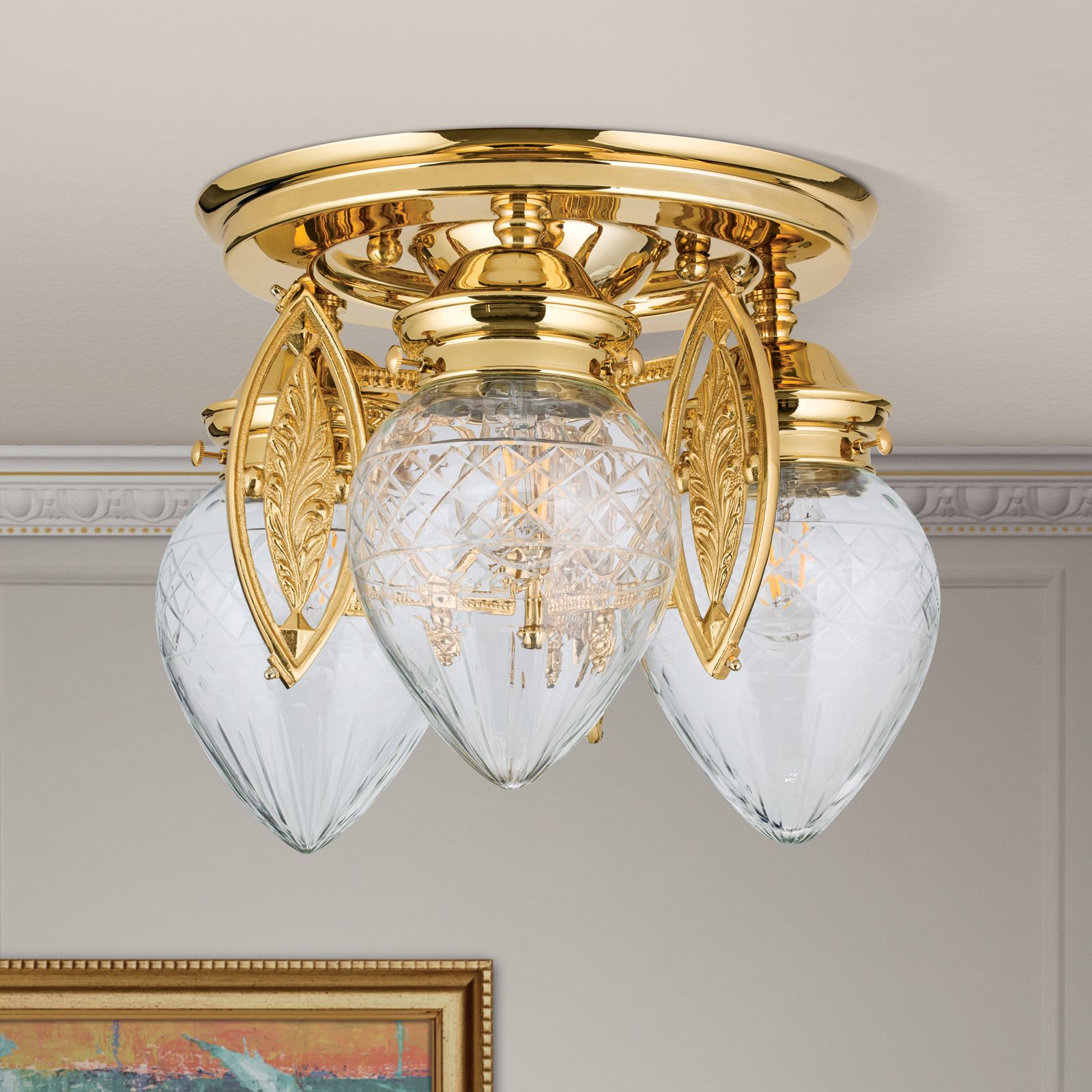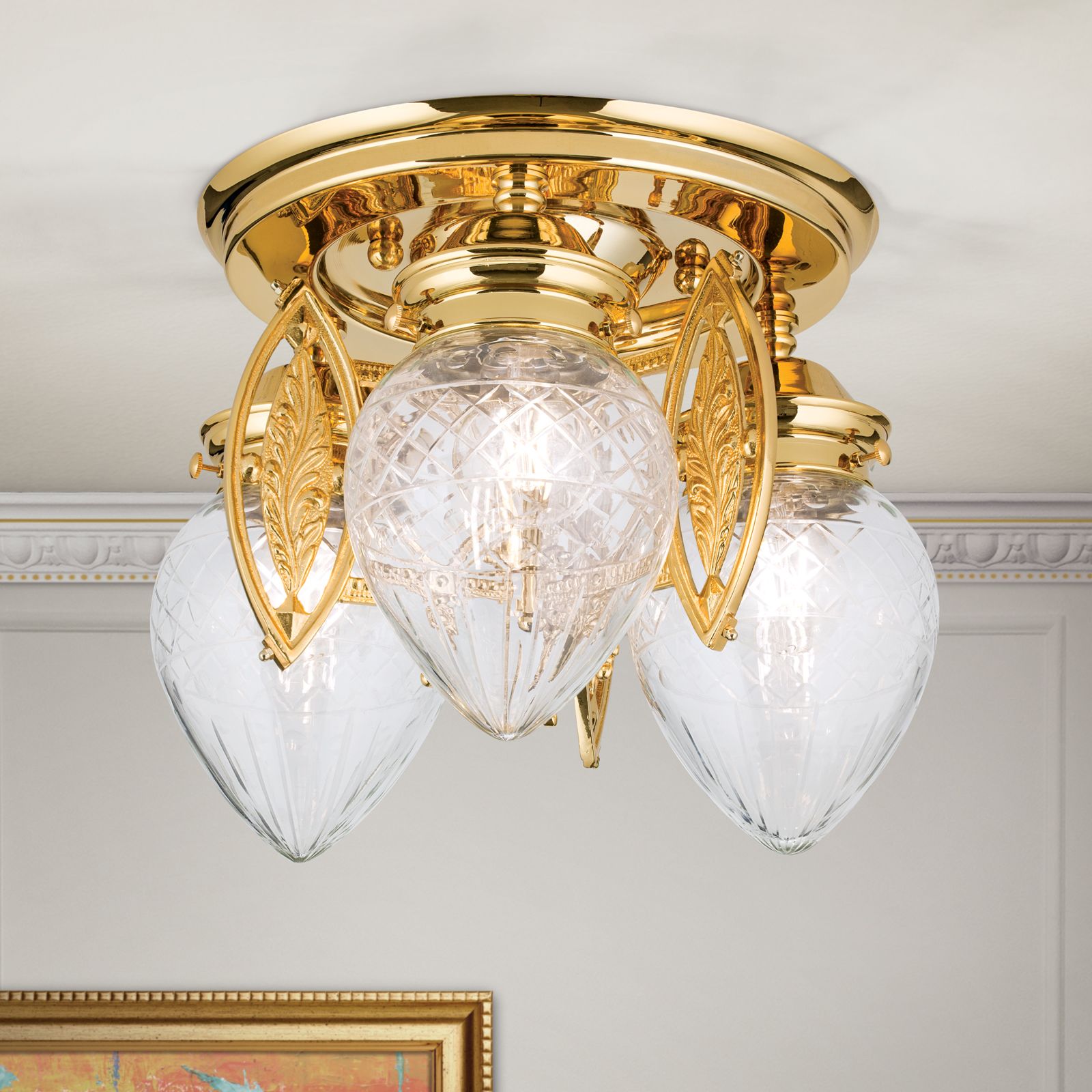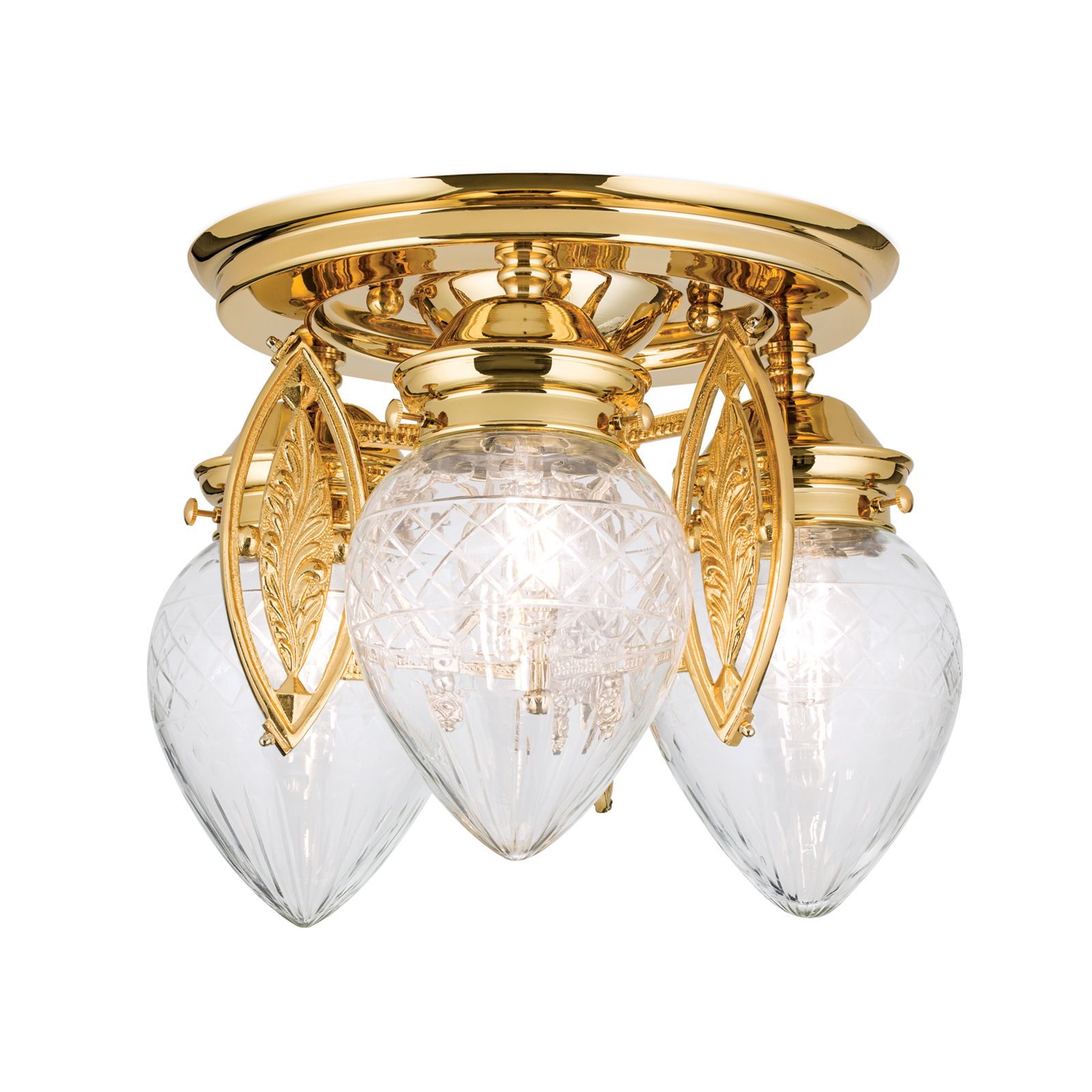 Ceiling light BUDAPEST, 3 lights in 24K gold plated finish with clear cut glasses