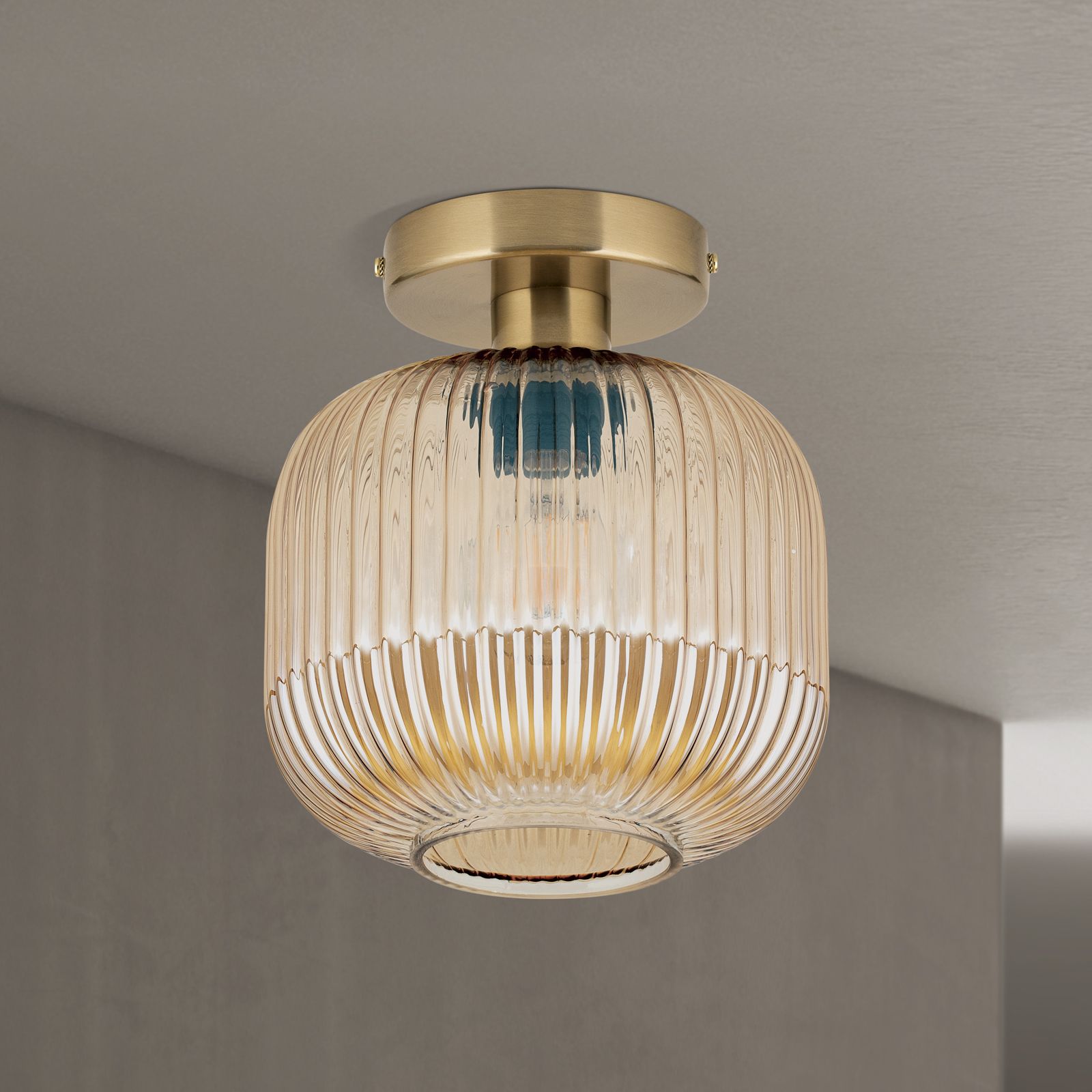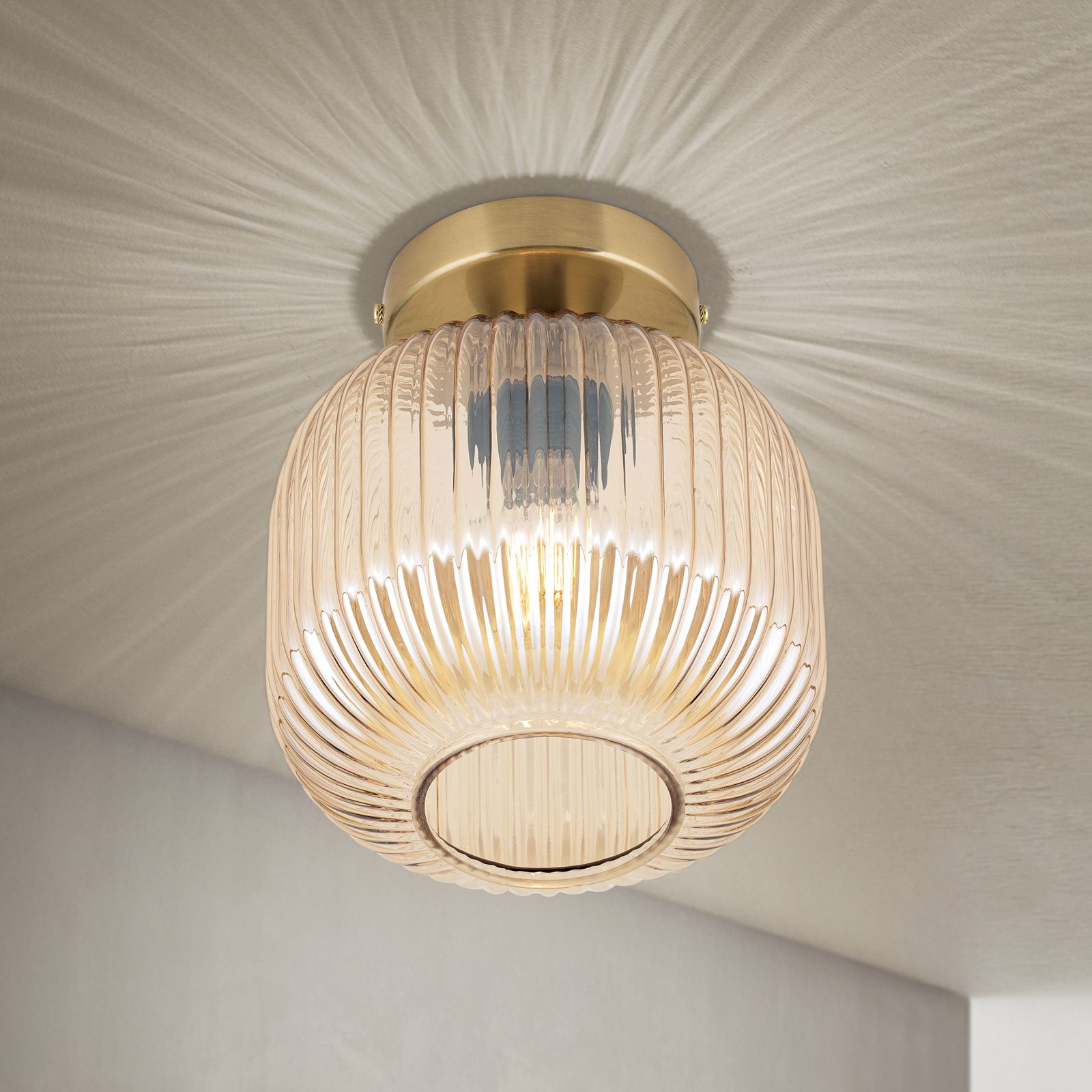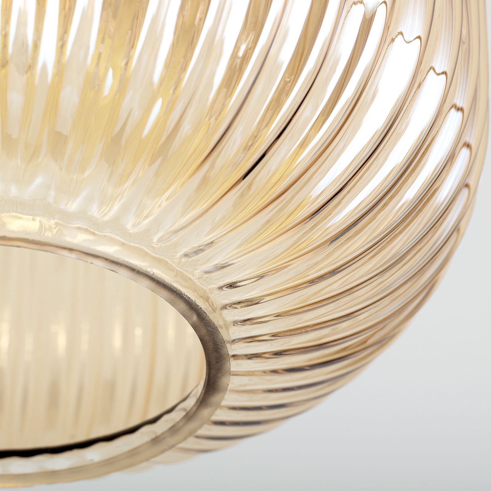 Bring nostalgic flair and stylish lighting accents into your home - with the CARNEVAL ceiling light. The elegant glass shade in the colours green, smoke, amber or red creates an atmospheric lighting effect and makes this light a real eye-catcher. The grooved pattern on the shade gives the design depth and a touch of retro character.