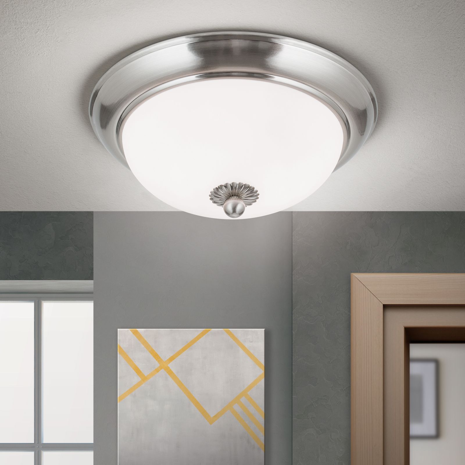 Ceiling light EMPIRE, 26cm, satin chrome colour, matt opal glass