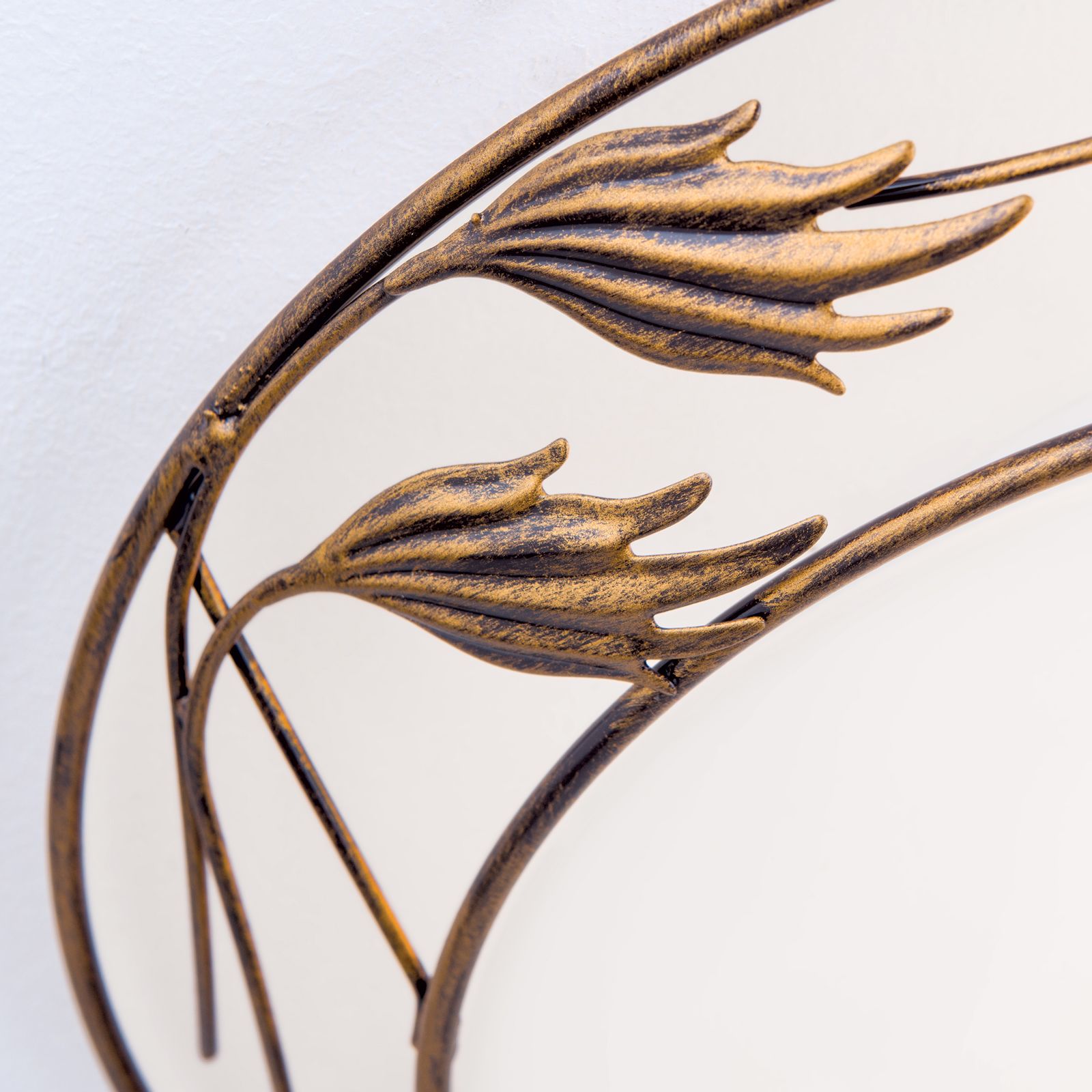 Ceiling light FLEUR exudes special charm bringing a rustic feeling to any home. Entrance areas, living rooms, but also bedrooms receive an invitingly warm touch from its the playful wrought iron style. The robust steel corpus' floral design trumps in antique gold immediately catches the eye with its attention to detail, .