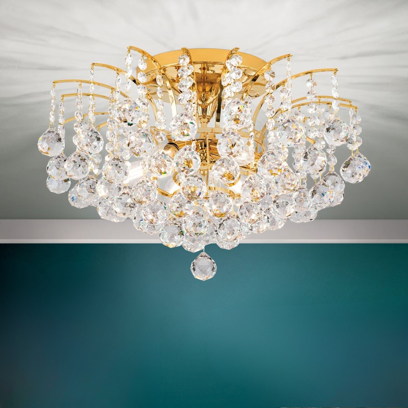 Ceiling light KRISTALL KLASSISCH, 6 lamps, 24K gold plated, clear crystal