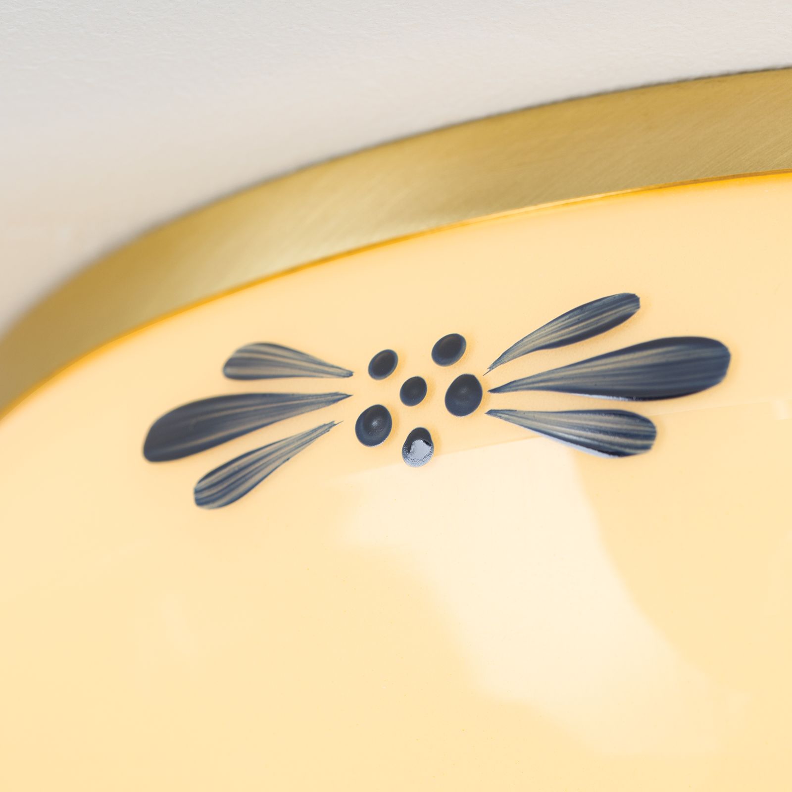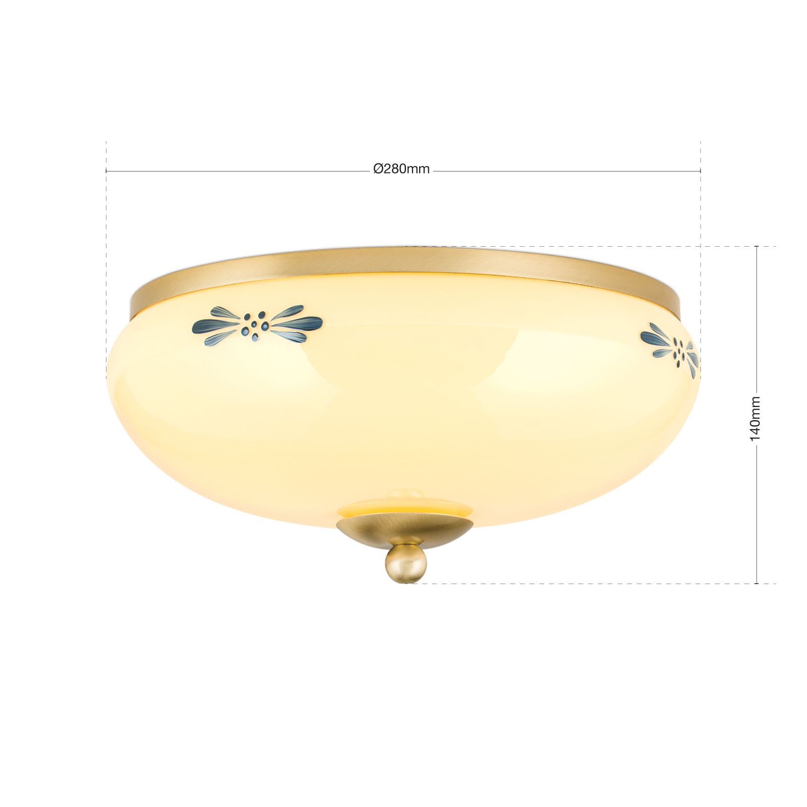 Ceiling light LANDHAUS, brass, with blue decoration, with knob, Ø 28cm