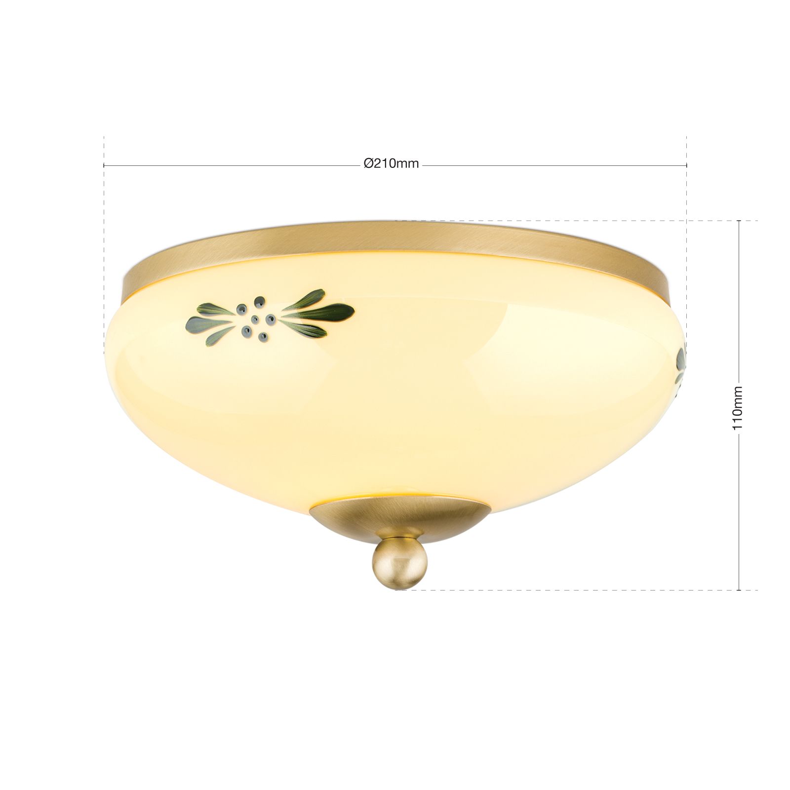Ceiling light LANDHAUS, brass, with green decoration, with knob, Ø 21cm