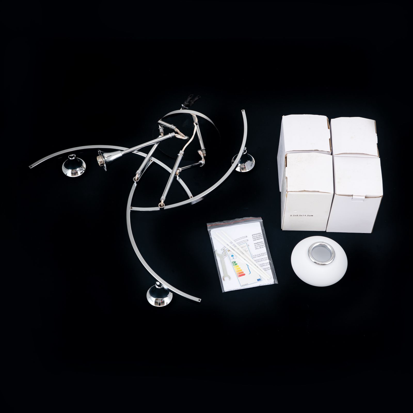 Chrome-plated steel and high-quality opal glass shades give dining room lamp LIA elegance and durability. The dimmable light in contemporary style is an excellent choice for effortlessly elegant interiors. The ceiling lamp is equipped with four G9 sockets for 33 watts maximum per socket. The elliptical opal matt shades give off a soft, even room light and are particularly suited for matt pin-base lamps.