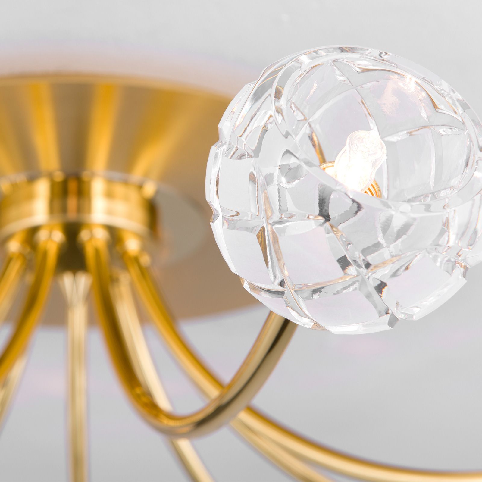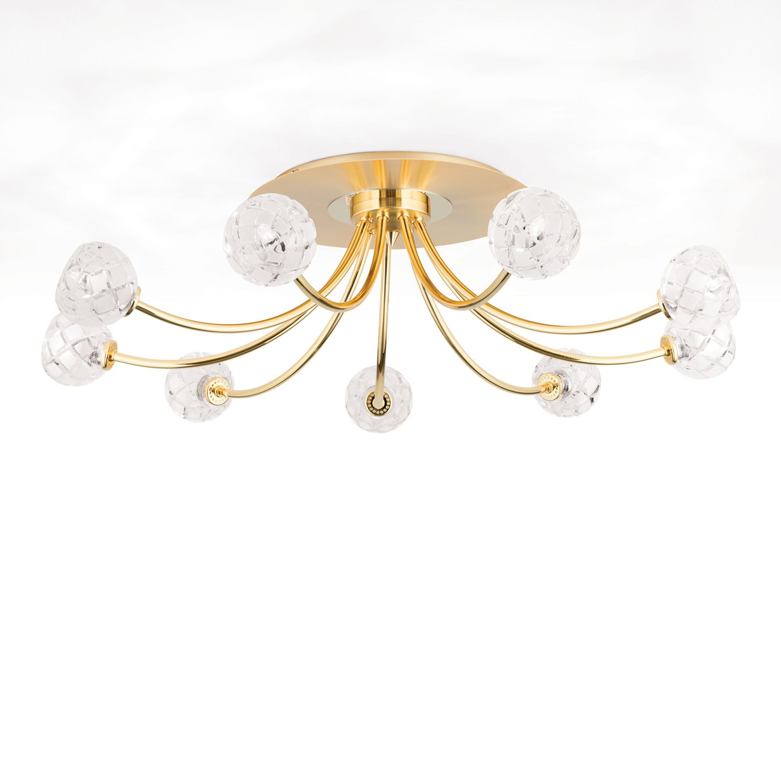 Due to its low height of only 16 centimetres, it can be installed in rooms with low ceilings. The nine G9 sockets can be fitted with halogen or LED bulbs with 40 watts maximum per socket to provide even larger rooms with sufficient brightness.