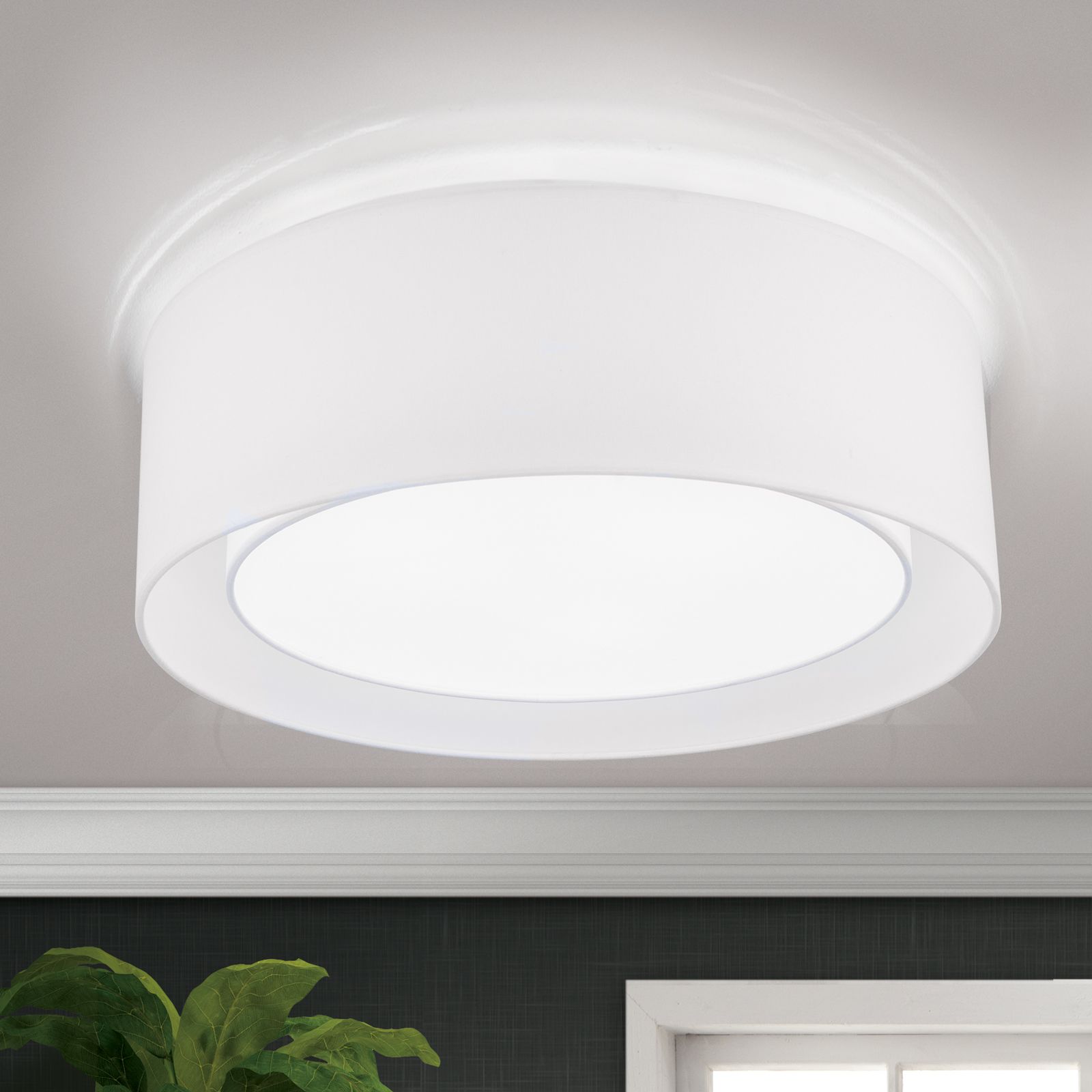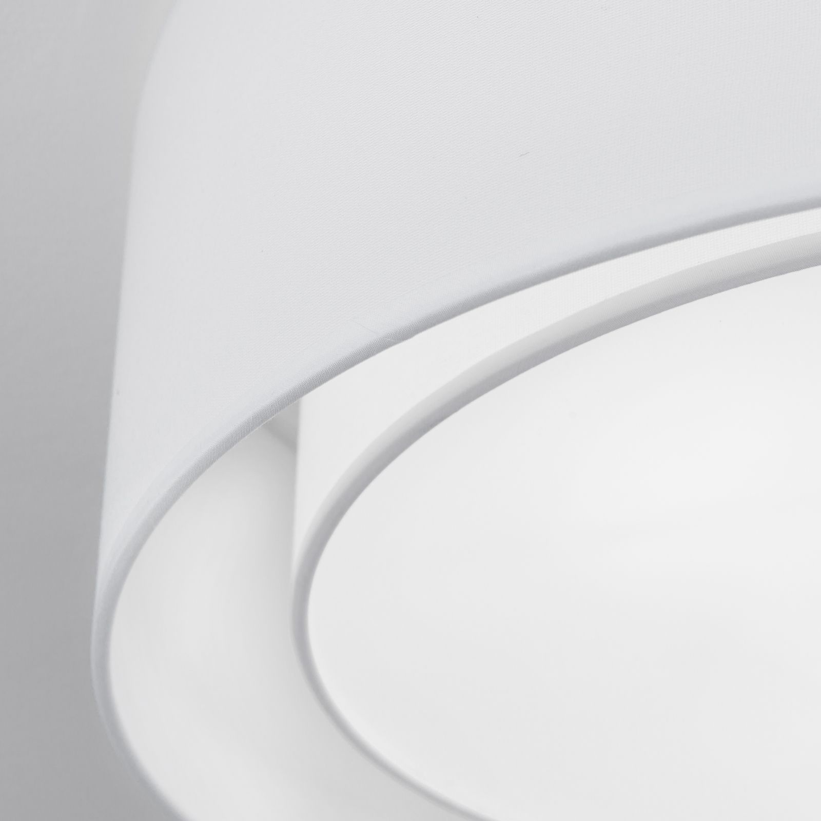 The ceiling light with a diameter of 50 cm is equipped with 3 E27 sockets and can be fitted with maximum 60 watts per socket. Matt E27 LED lamps are ideal for the environmentally conscious and energy-efficient cylindrical ceiling light's operation, that is also available with a black linen shade.