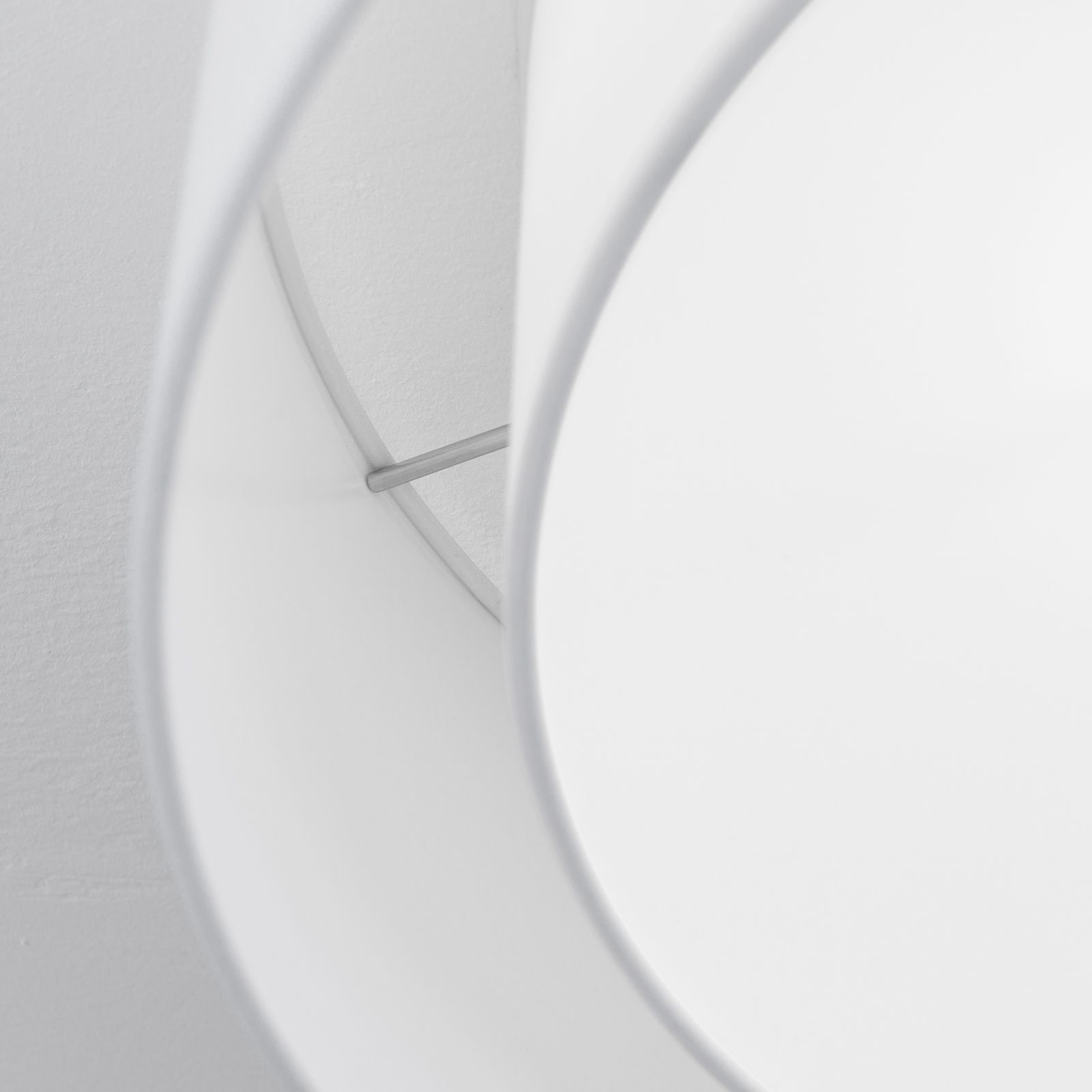 The frame is made of steel covered with white linen forming the lampshade. The fabric also acts as diffuser for homogeneous, glare-free light distribution in the entire living room contributing immensely to a cosy, comfortable living ambience.