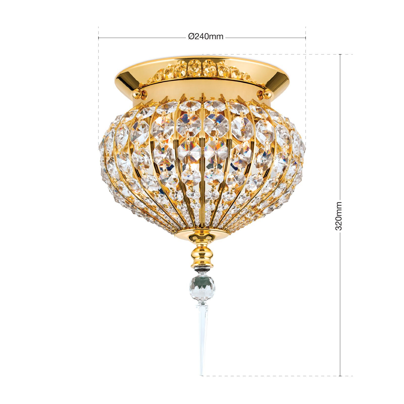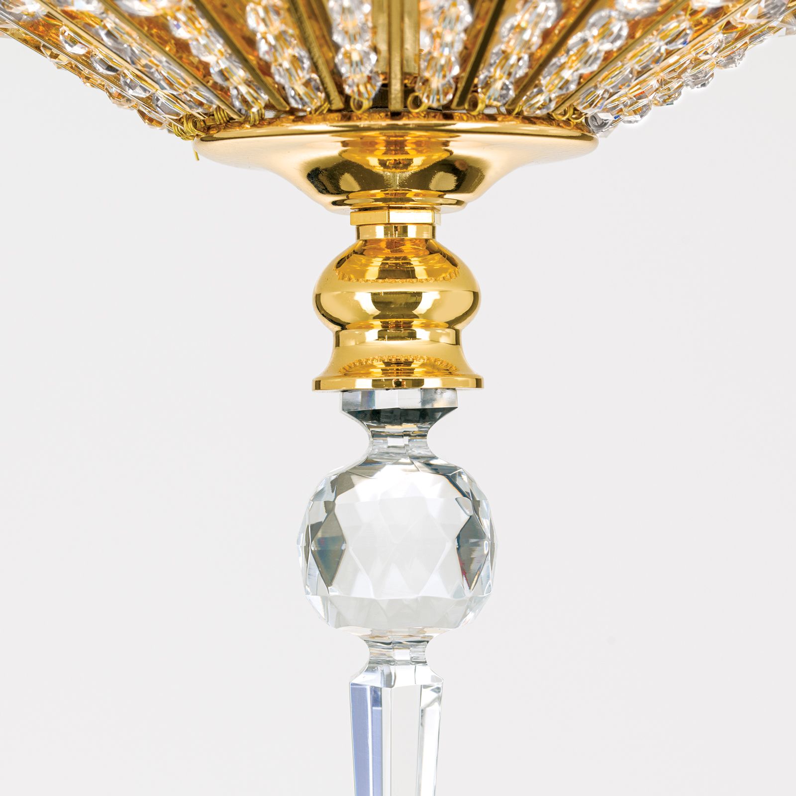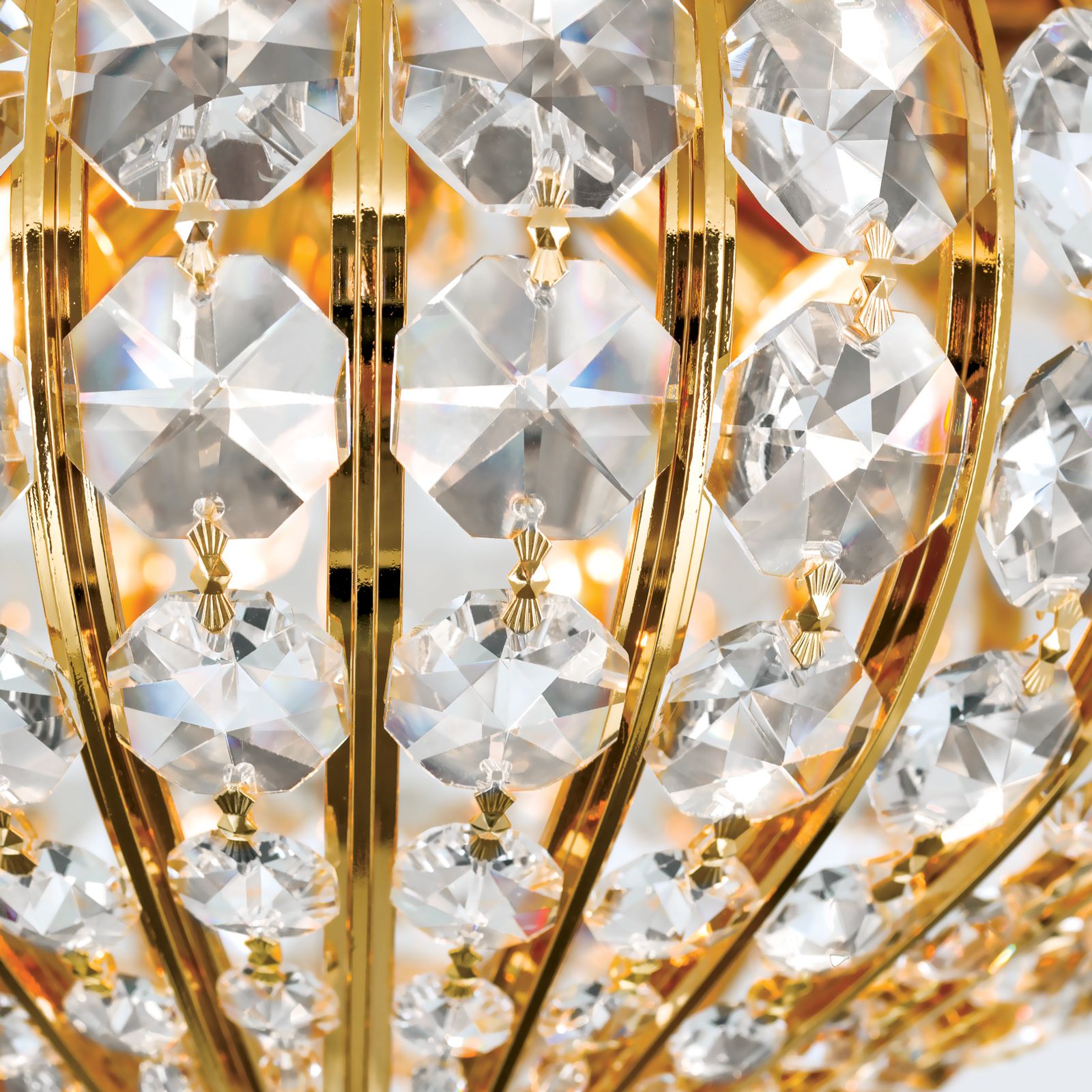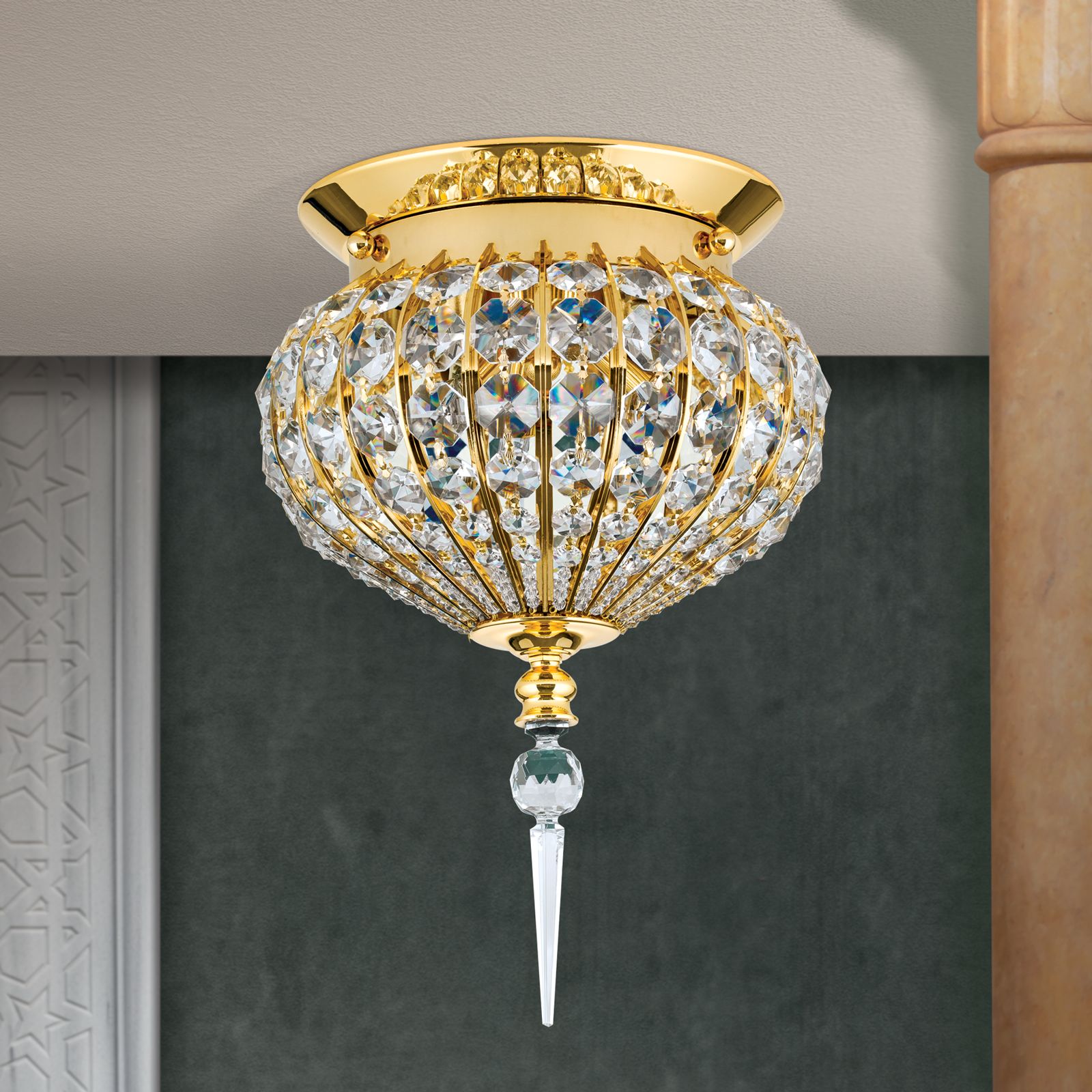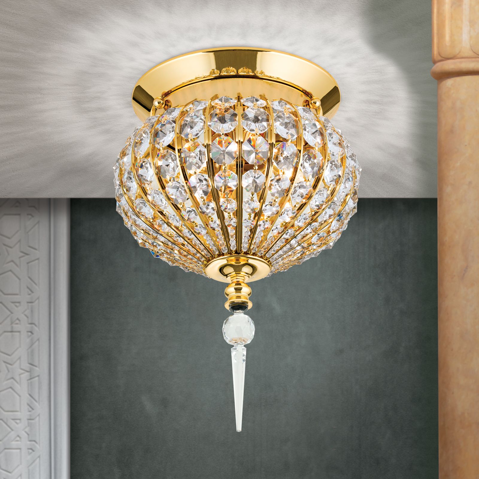 Ceiling light ORIENTAL is truly a piece of jewellery and can be wonderfully combined with other lights from the eponymous series. High-quality materials such as 24 carat gold-plated solid brass parts and SCHÖLER CRYSTAL® crystals form a dome that not only provides good illumination in the designated area, but also unique light plays. Due to its design, it brings a touch of oriental flair into any home and will definitely turn into an eye-catcher.
