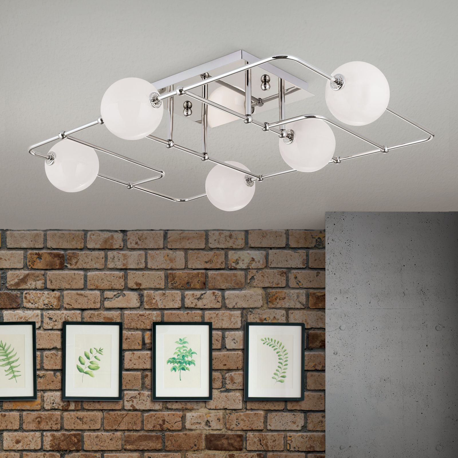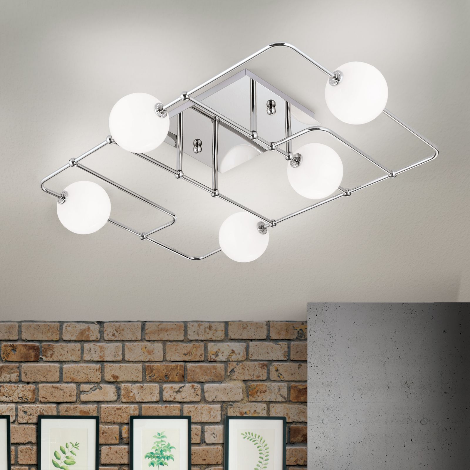 A system of pipes forms the corpus of the extraordinary and unique ceiling light from the PIPES series. Its design is committed to industrial style yet without foresaking a certain elegance. The high-quality materials brass and glass lead to an exquisite overall impression. Gold finish refines the brass lamp combined with a shade made of opal matt glass providing a glare-free and balanced lighting effect. It fits perfectly in homes with open space design in industrial style contributing to the rough charm of old factory halls and studios. The ceiling light is equipped with 5 G9 sockets and can be operated with 25 watts maximum per socket.