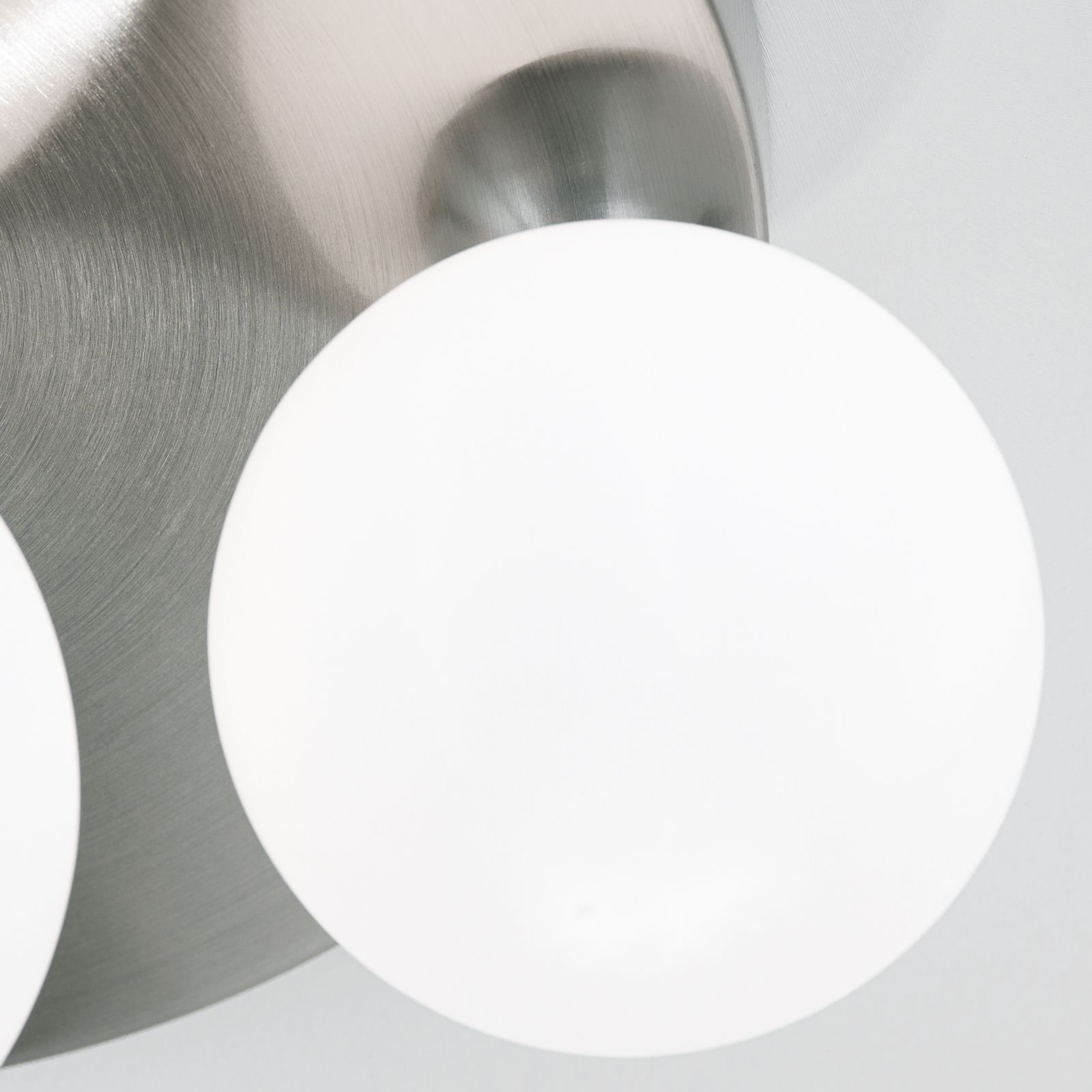 SNOWWHITE ceiling light charms with its contrasting interplay of black base and white glass spheres. In modern furnished rooms, it finds its place in numerous rooms, such as an entrance hall, the bedroom or living room and bathes the room in a pleasant light. On the black metal base, the white glass balls are evenly spaced, which are also provided with a brass-colored socket. The light promises a homogeneous light distribution in the room and contributes to a modern feel-good ambience. With 6 G9 sockets can be operated with a maximum of 20 watts per socket. The base has a diameter of 36 cm.