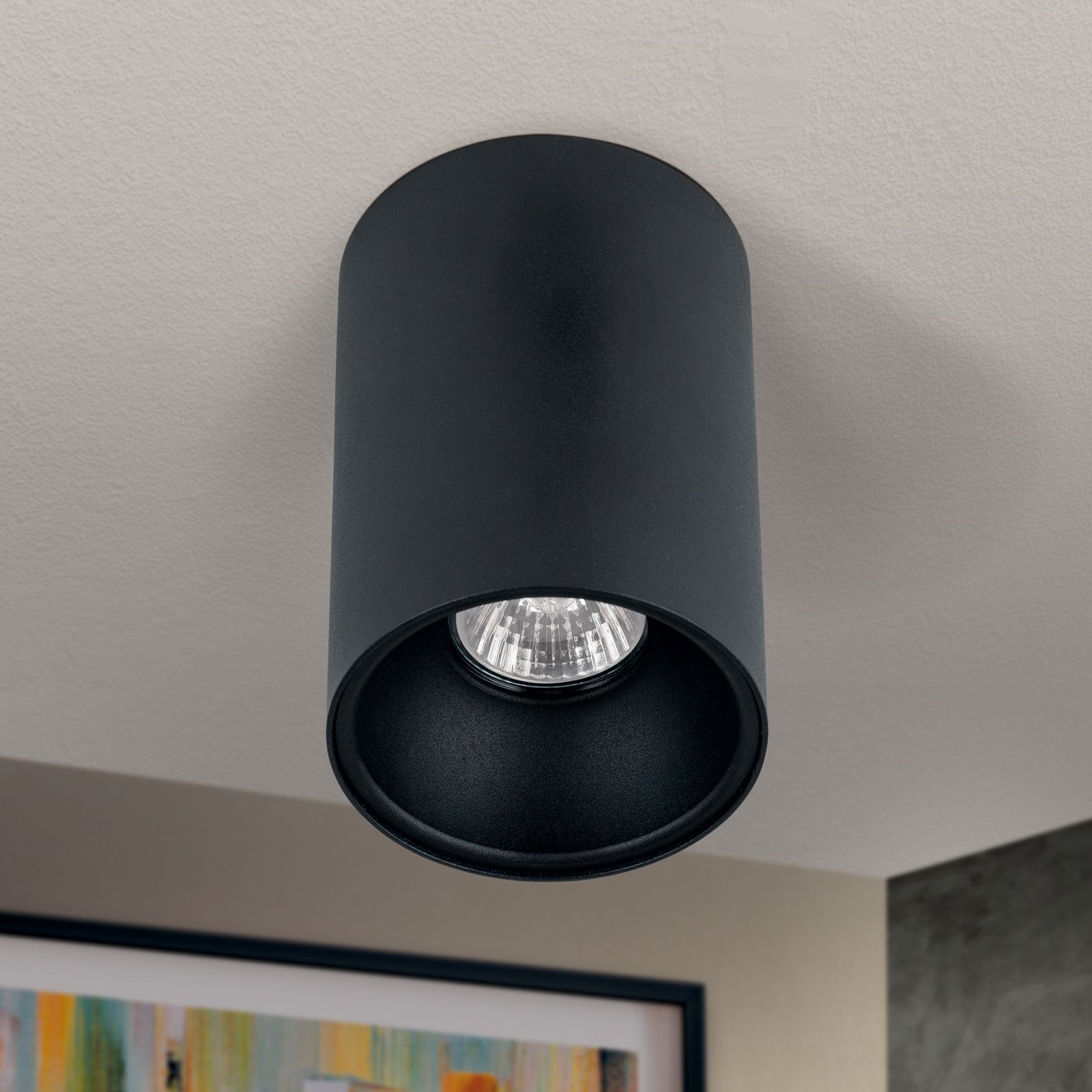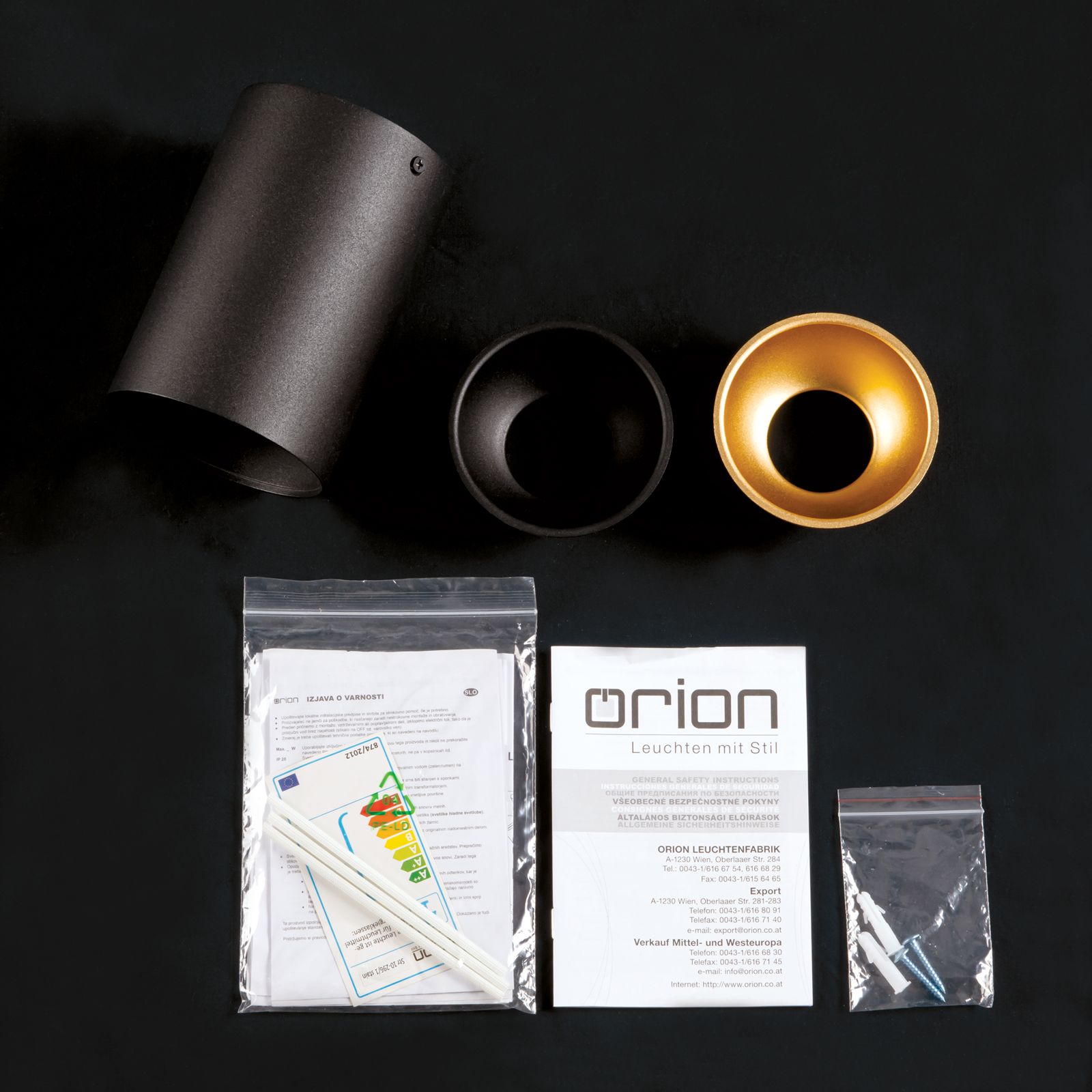 The ceiling light STARLIGHT represents a particularly attractive source of light, because the inside of the light can be replaced with an additional internal reflector in gold, so that by the light the golden surface begins to shimmer. STARLIGHT can be integrated into both modern and classic living spaces, where as a single luminaire for accent lighting or grouped, they bathe the room in a pleasant light. The cylindrical housing in white or black harmonizes wonderfully with the golden interior and rounds off the overall appearance of the light. In addition, the golden reflector provides a particularly warm light. The light with a diameter of 9.6 cm and a height of only 14 cm is also ideal for rooms with low ceilings. Equipped with a GU10 socket, this can be operated with a maximum of 50 watts.