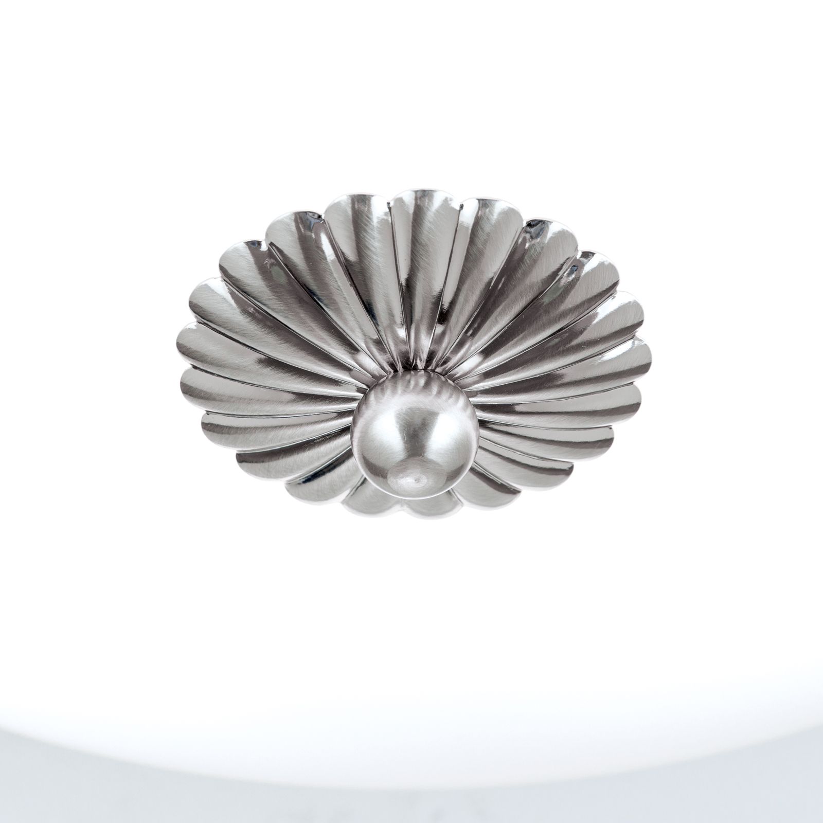 The ceiling light from the EMPIRE series features a flower-shaped knob at the centre of the glass shade. It crowns the theme of roundness, centrality, symmetry. Can anything be more perfect than a circle? The distance from centre to rim is identical everywhere, there are no corners, angles, slopes. This is why this shape is ideal for a ceiling light: the light is distributed absolutely evenly across the room, democratically, so to speak. In combination with curtains, draperies, carpets, this light will unfold its full warmth. Three E27 sockets provide 60 watts maximum each.