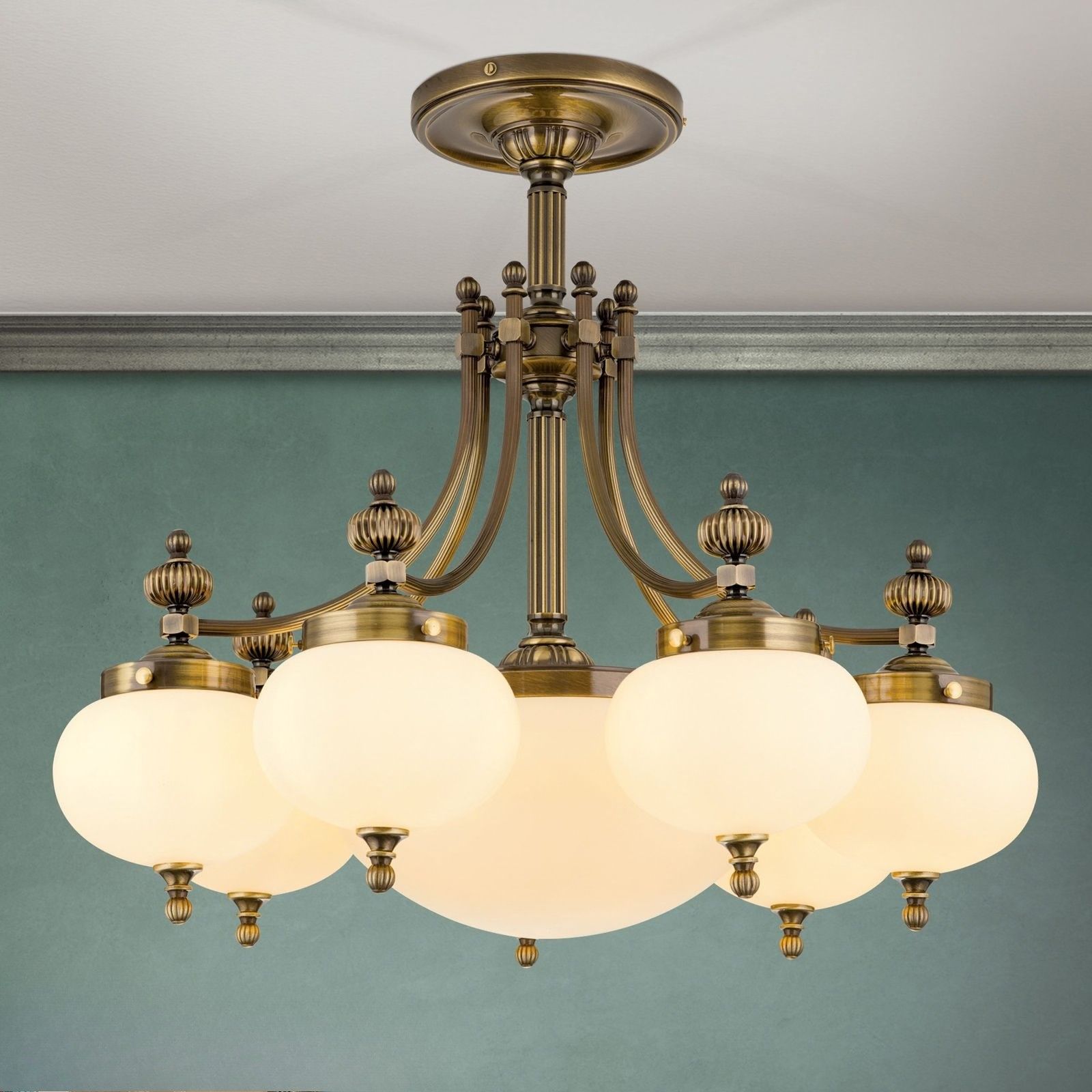 Ceiling light WIENER NOSTALGIE, 7+1 lamps, antique brass finish, champagne coloured glasses