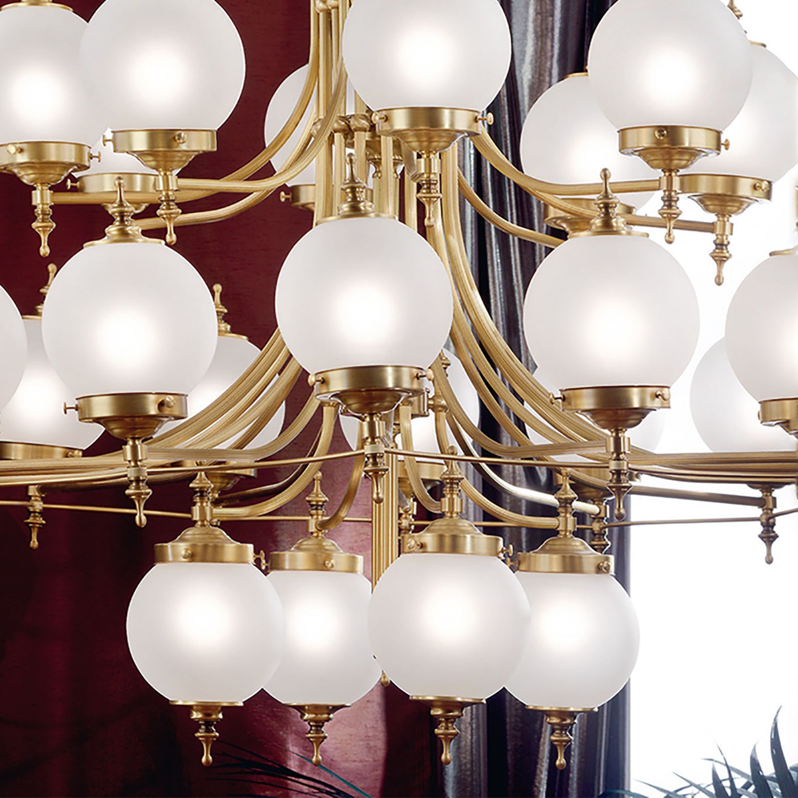 Chandelier 1510 OBJEKTDESIGN, 32-flames, bronze, with frosted glass