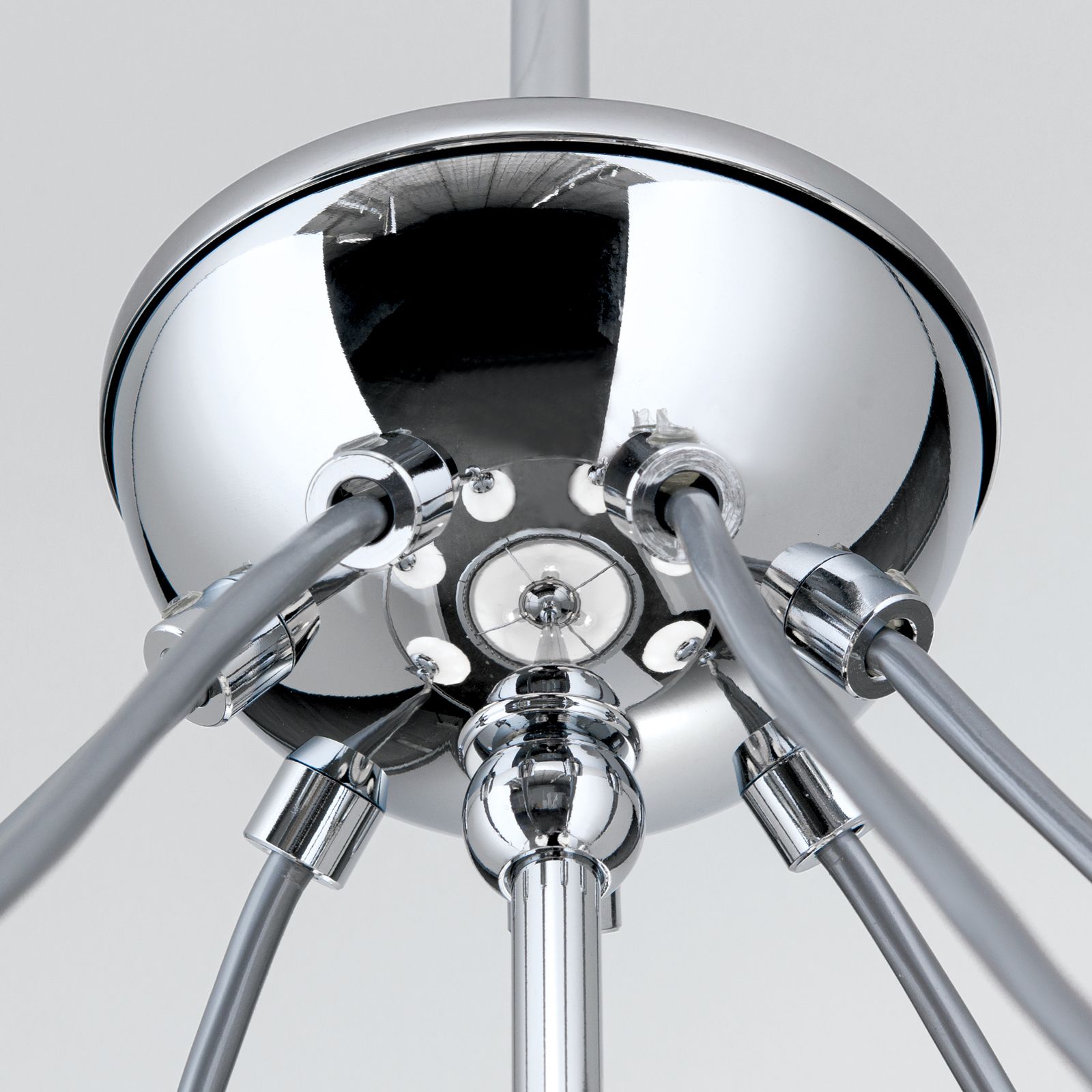 The pendant lamp is fitted with seven E14 sockets for up to 40 watts each and three E27 sockets for 60 watts maximum each and can also be ordered in a Patina version.
