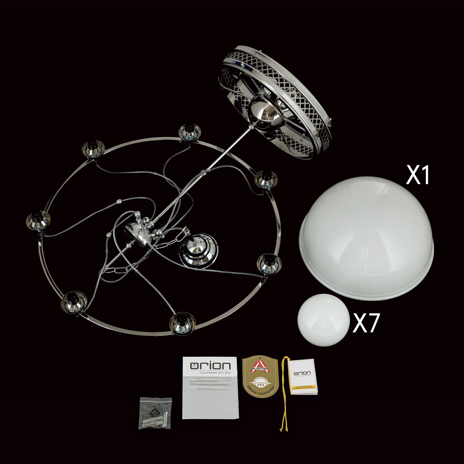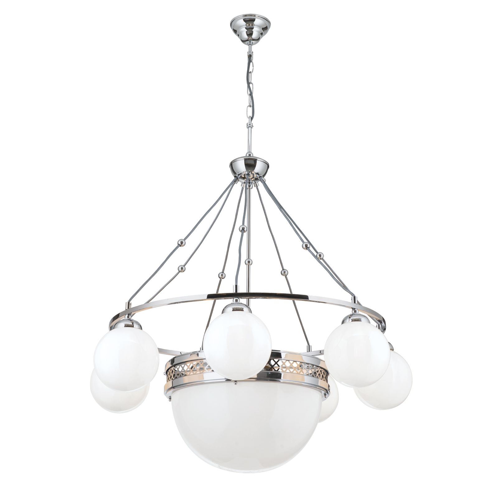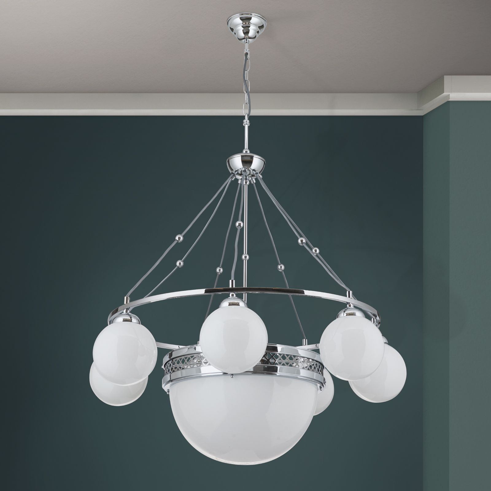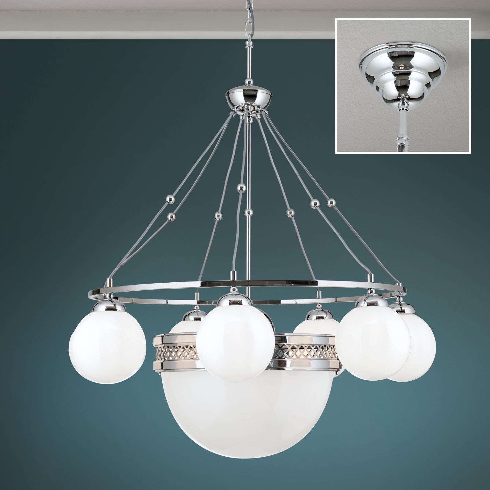 Chandelier ALT WIEN, 7+1 shiny opal glasses, Surface Shiny nickel