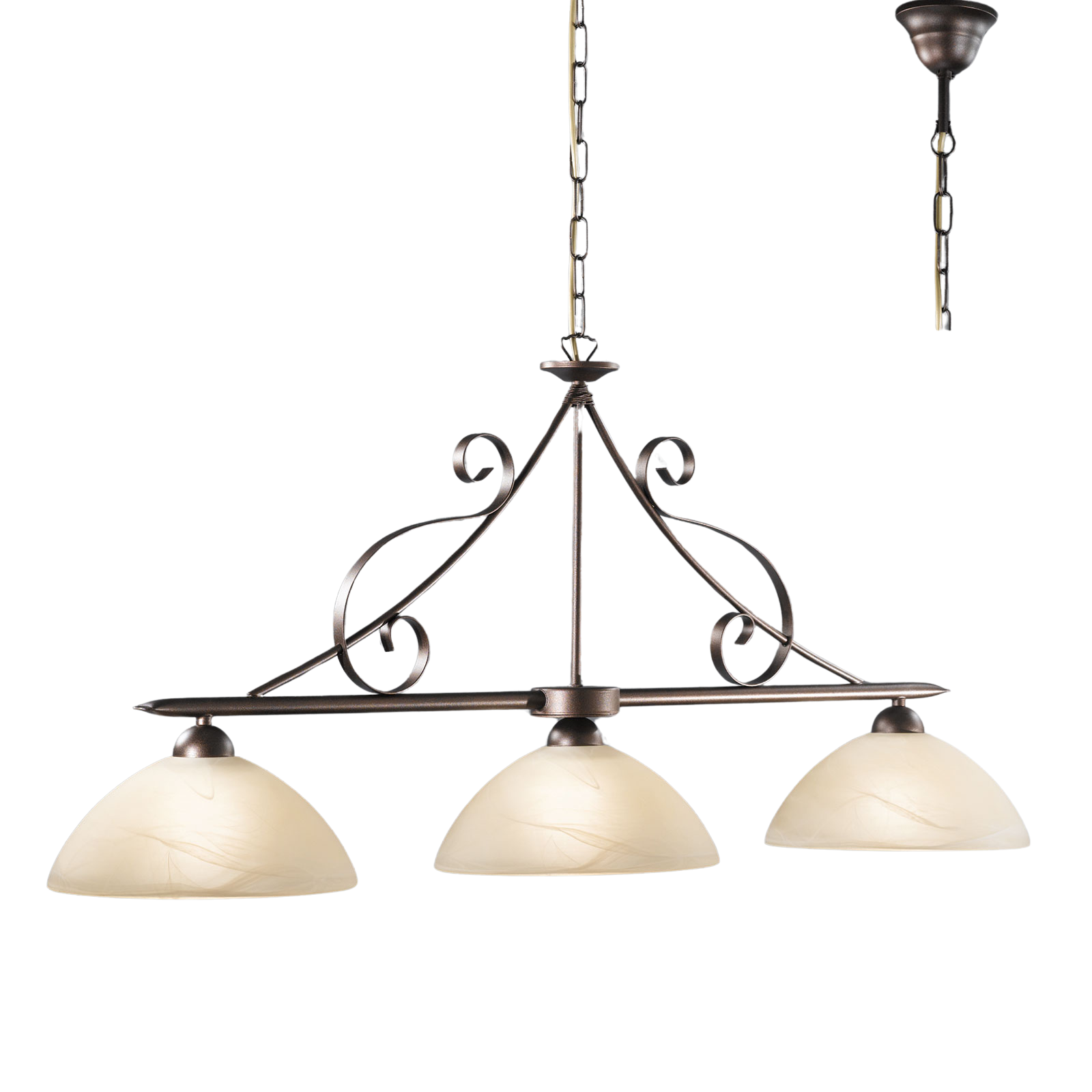 Curved steel stays in combination with structured champagne-coloured glass shades give three-flame chandelier ELLA a rustic touch. The effect made by the two contrasting elements in any room can best be described as "strikingly simple". Playful yet restrained, ELLA works well with many interior styles and always cuts a brilliant figure.