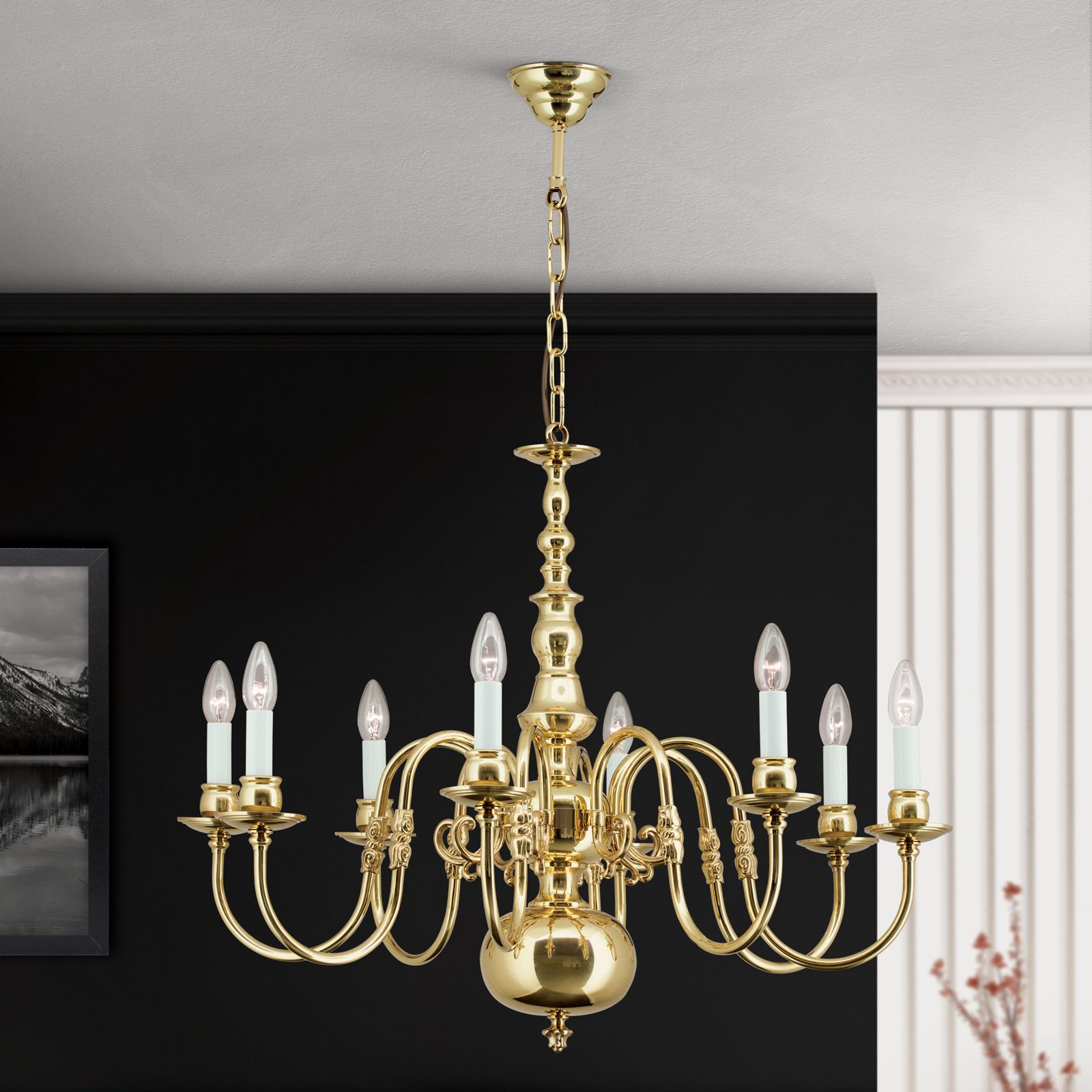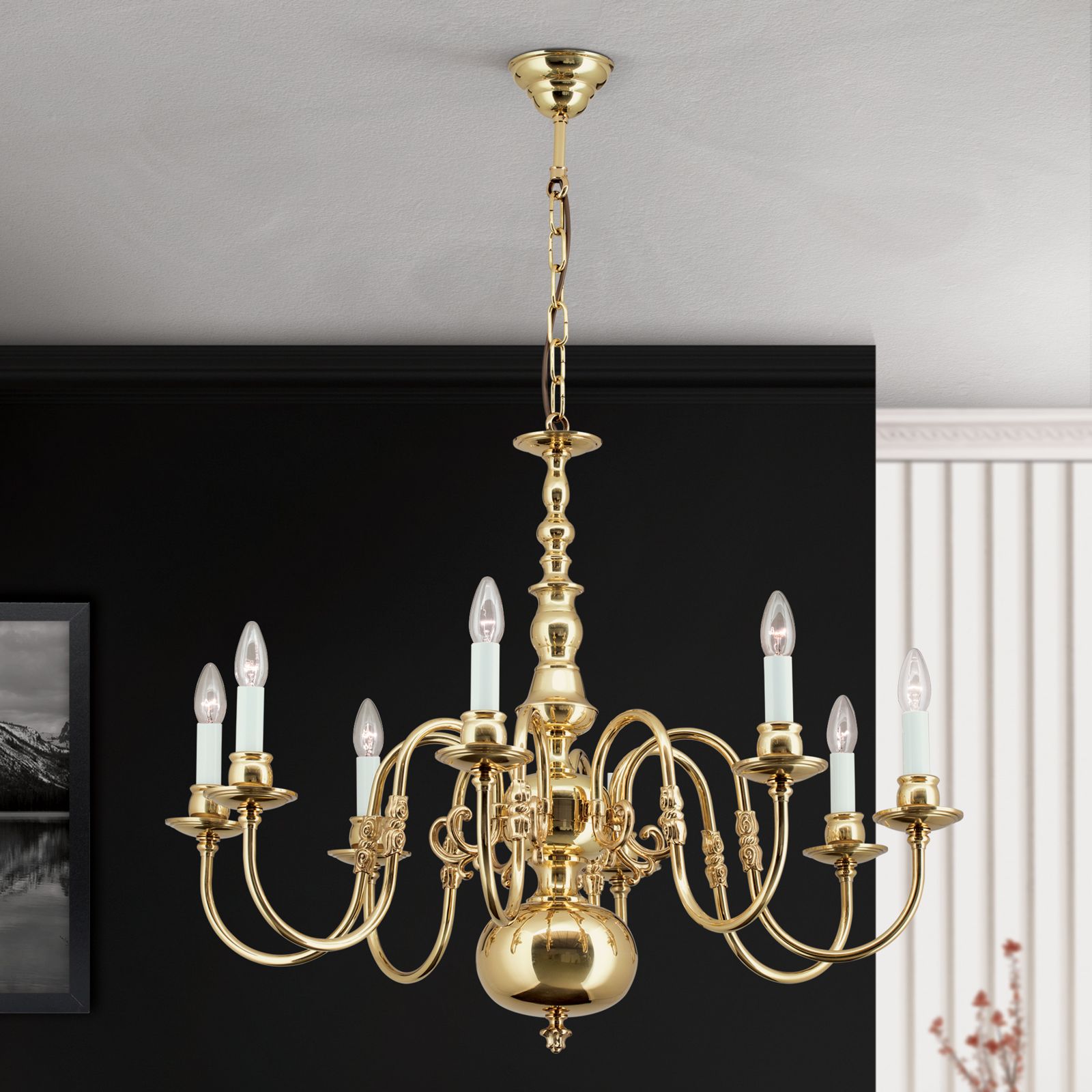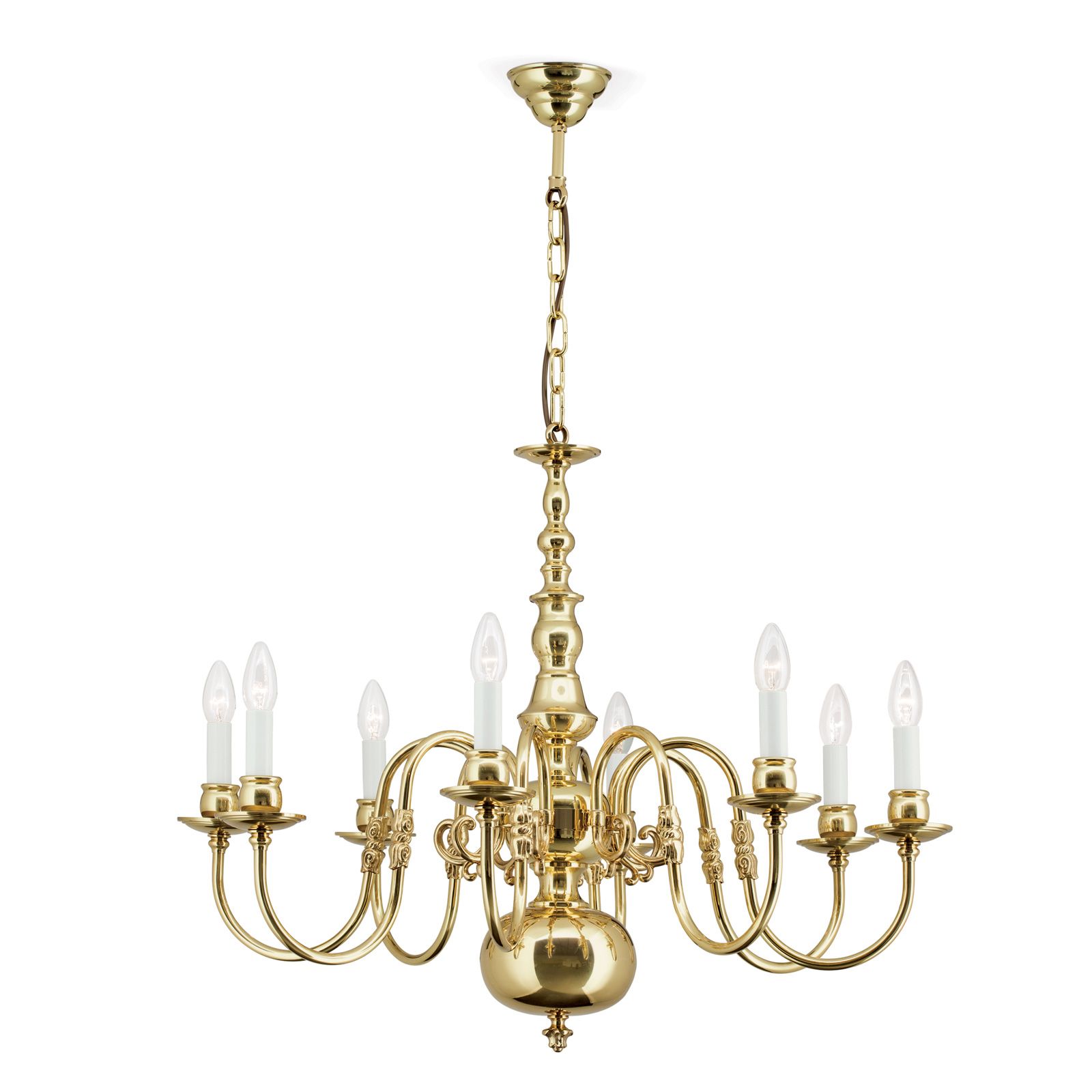 Chandelier FLÄMISCH, 8-flames, shiny brass, without eagle