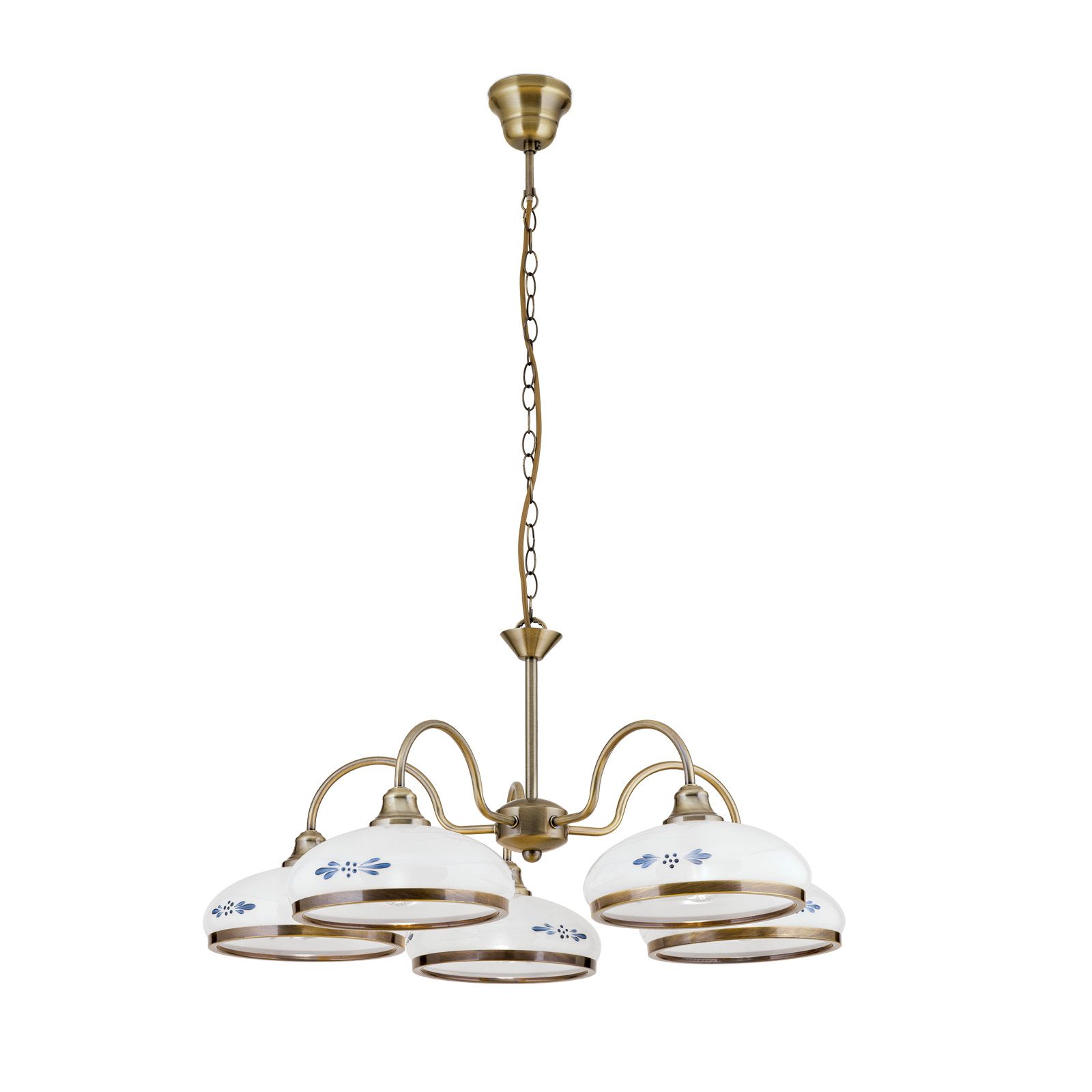 Chandelier GABI, 5-flames, patina, with opal blue glass