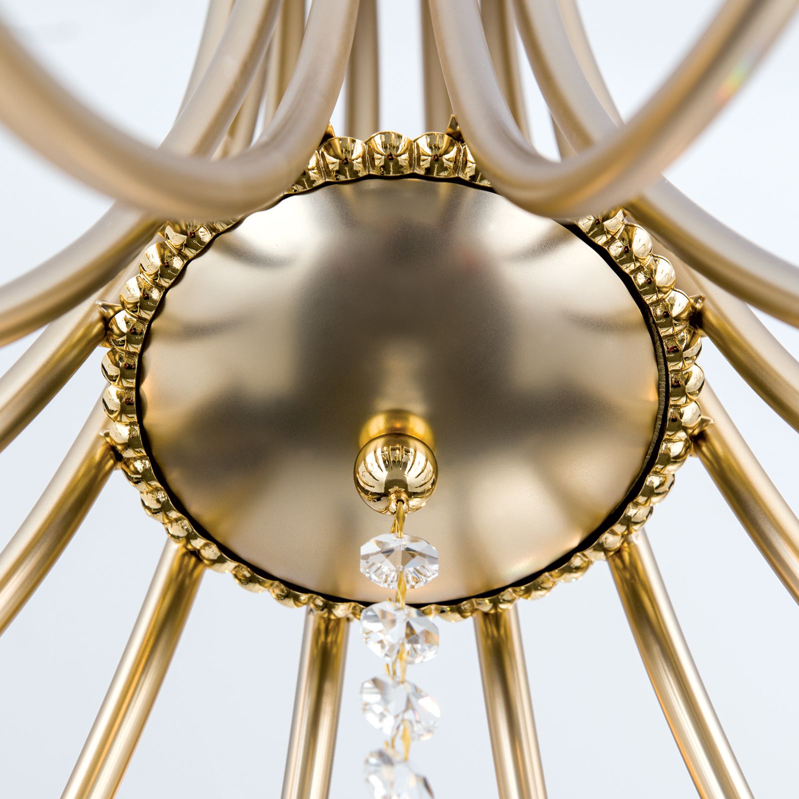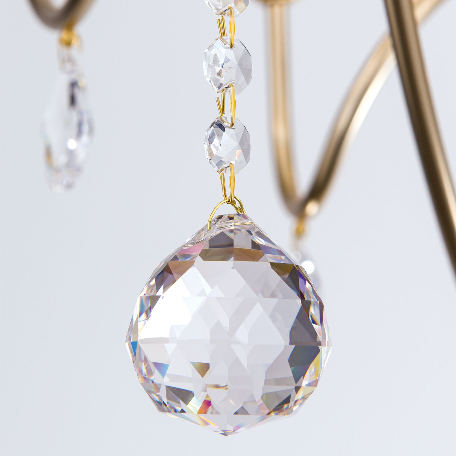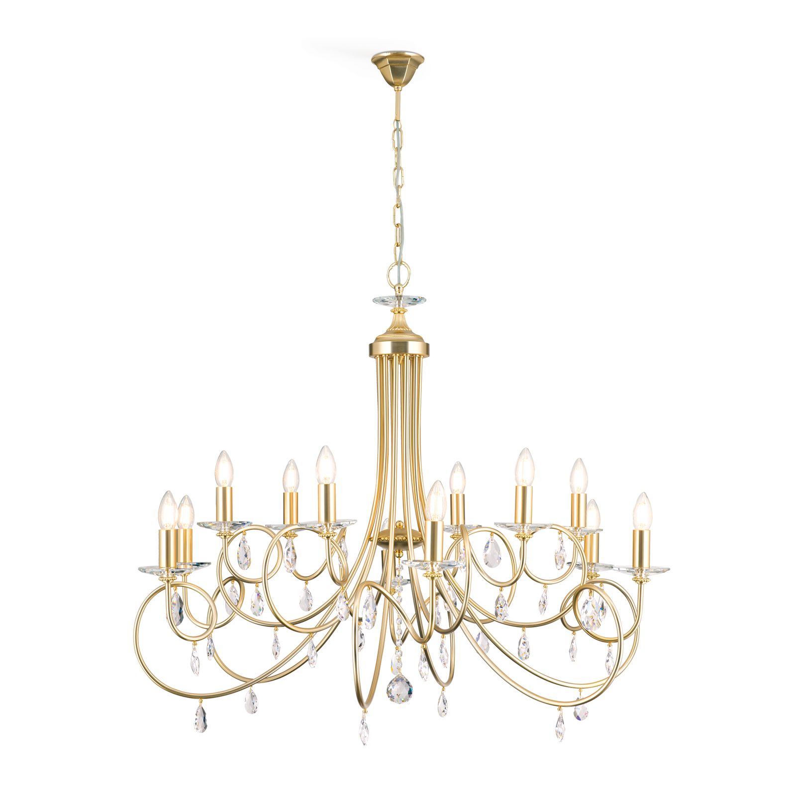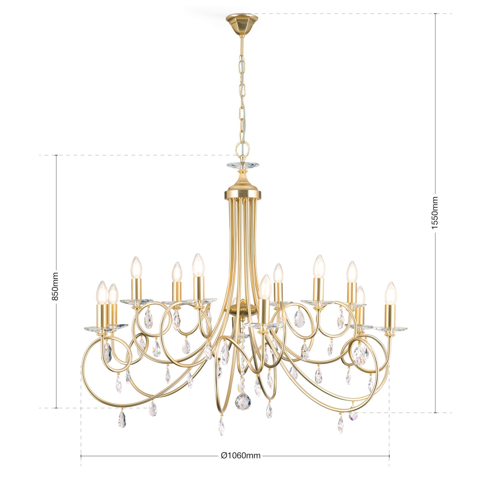 The imposing 12-lamps chandelier from the GIADA series will turn into any room's shining centre. It features a metal frame and impresses with full-cut chandelier crystal hanging from twelve curved arms. The light refracting through it creates fascinating play and reflections. It not only is a highlight when illuminated but also embodies beauty and elegance when unlit. It looks particularly good above dining or living room tables. The E14 sockets can be fitted with any bulbs (max. 40W).