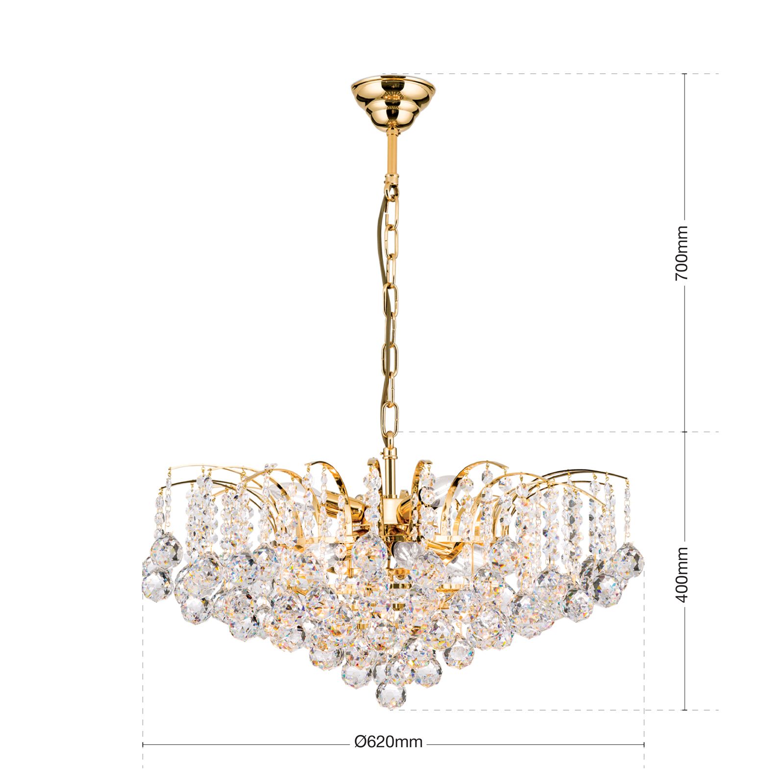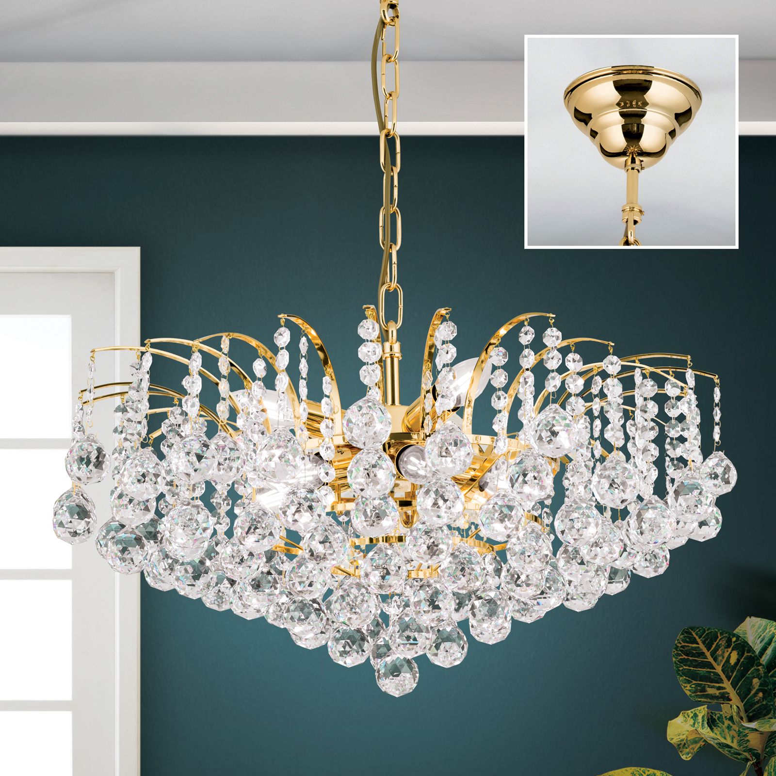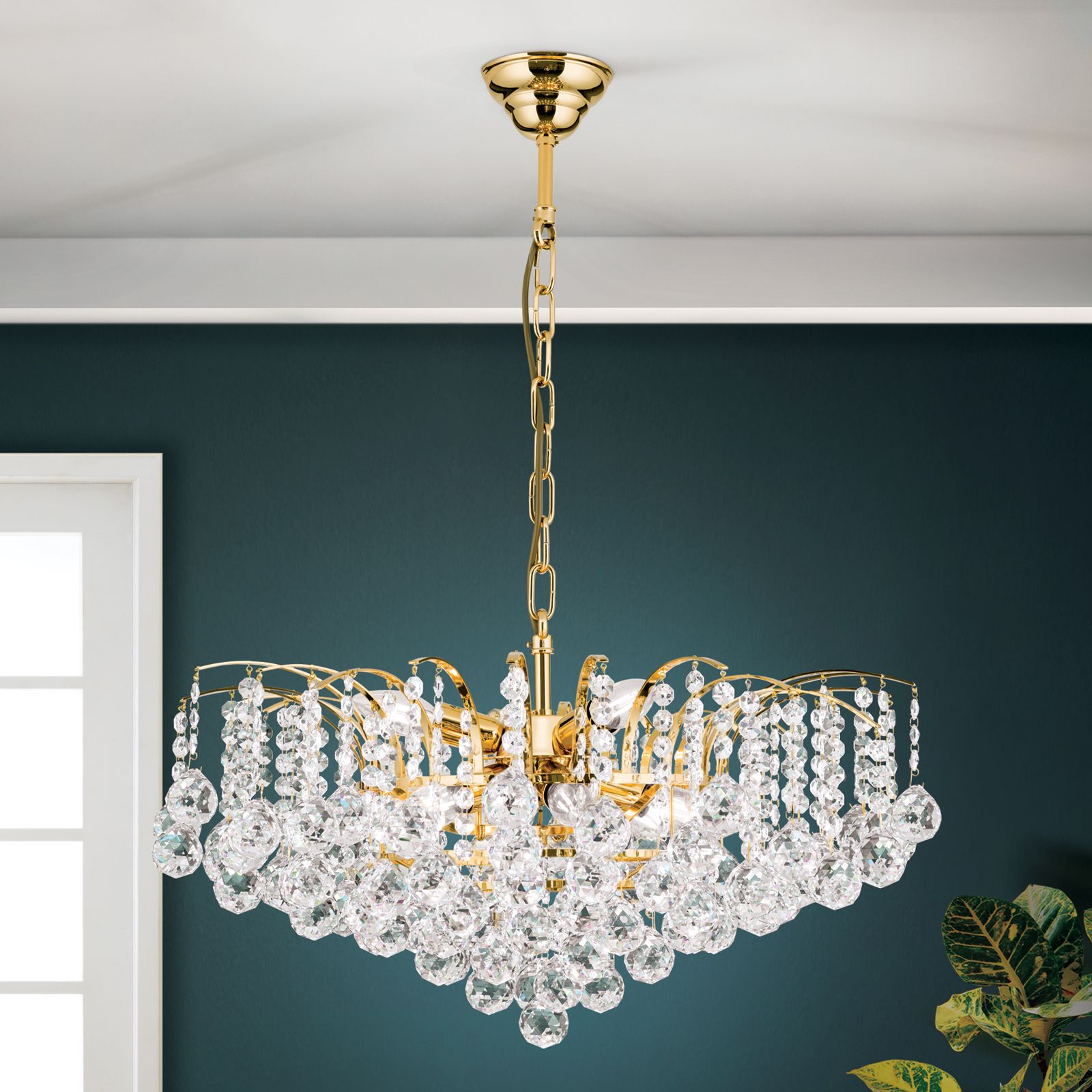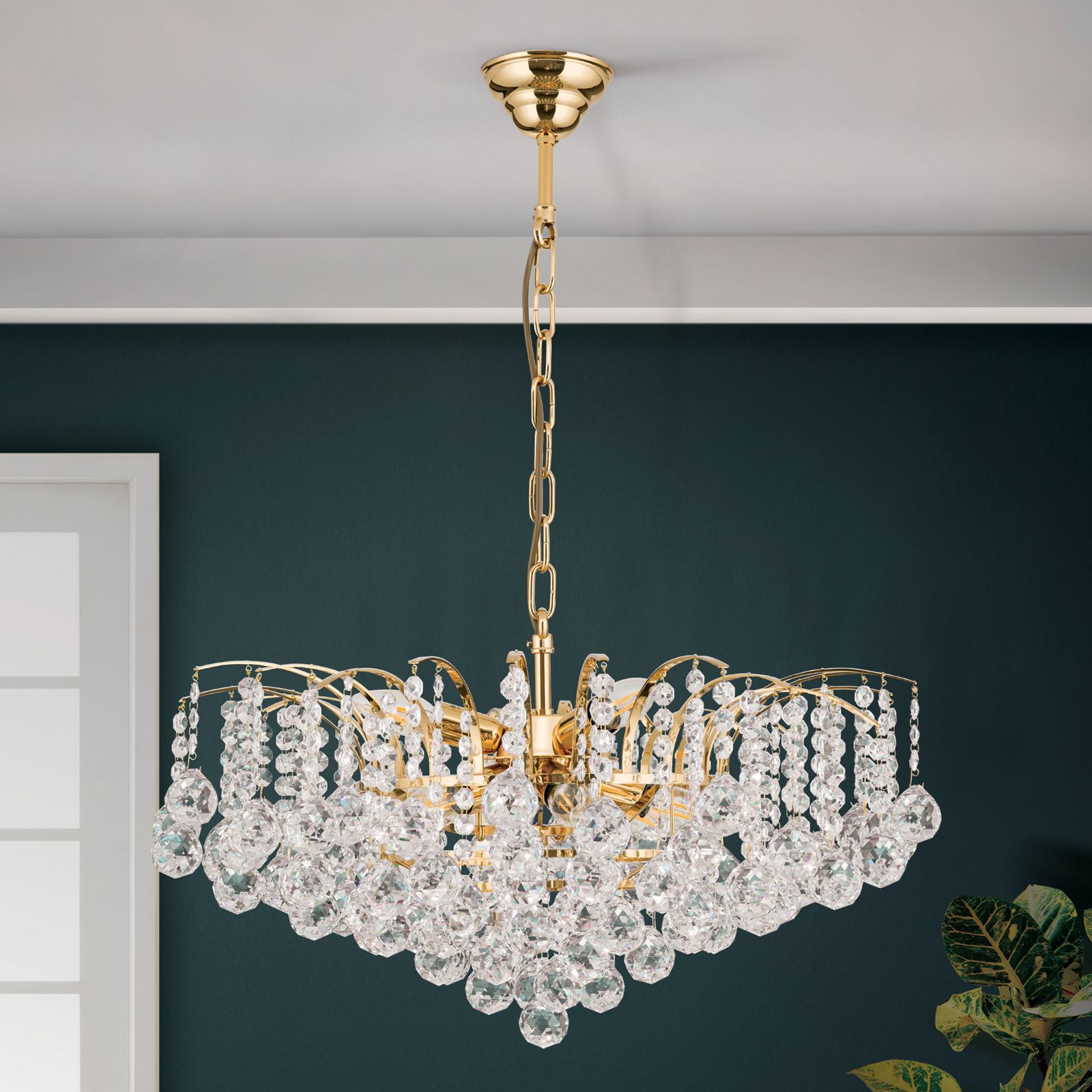 Chandelier KRISTALL KLASSISCH, 9 lamps, 24K gold plated, clear crystal