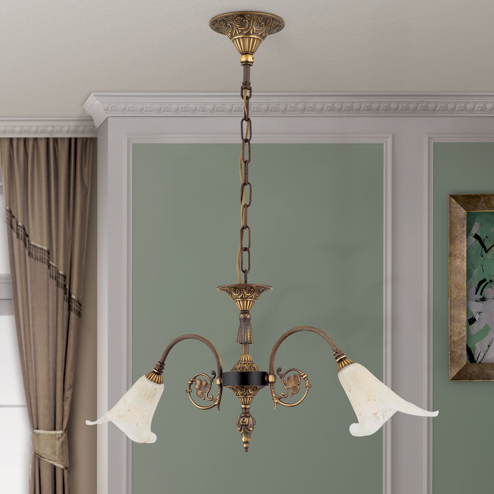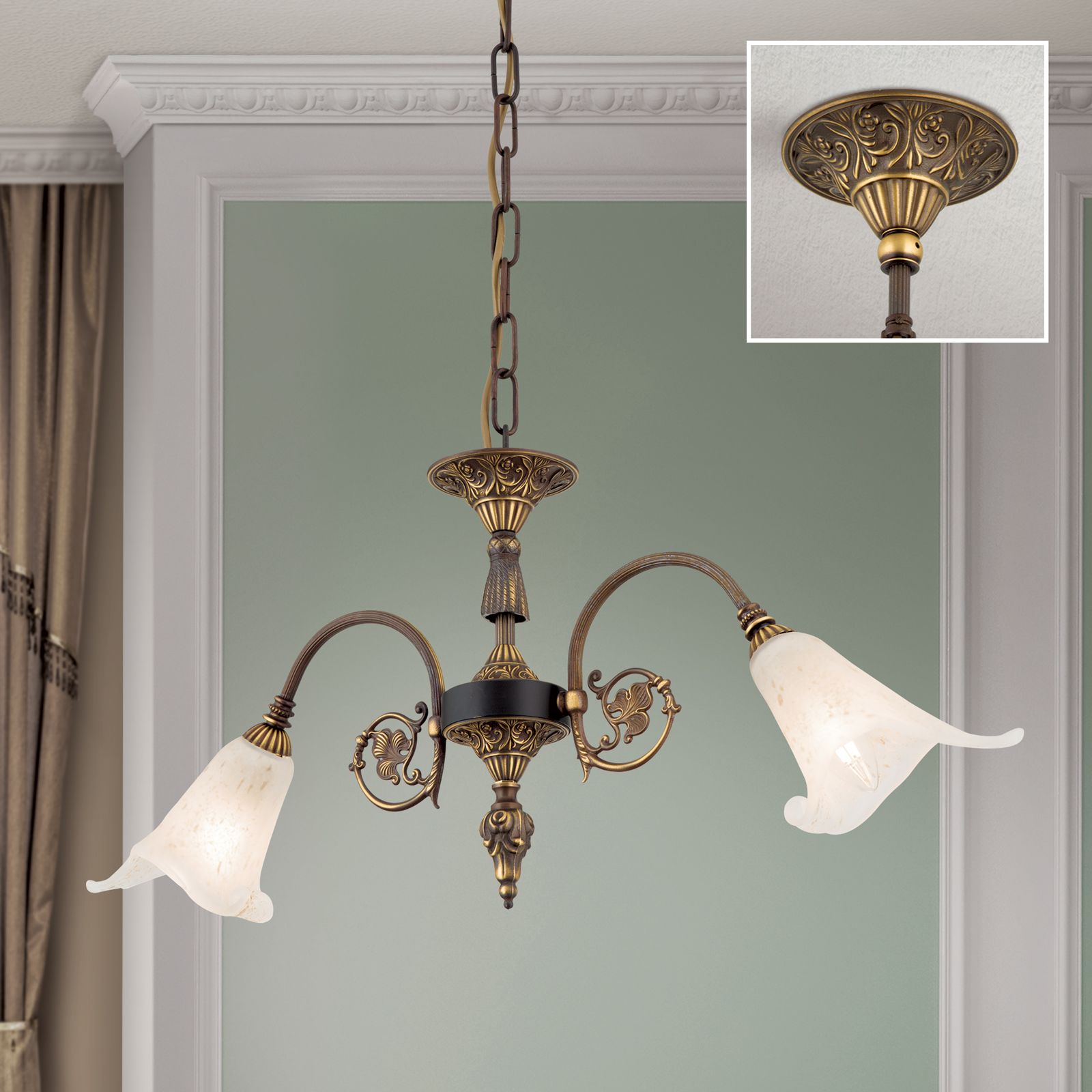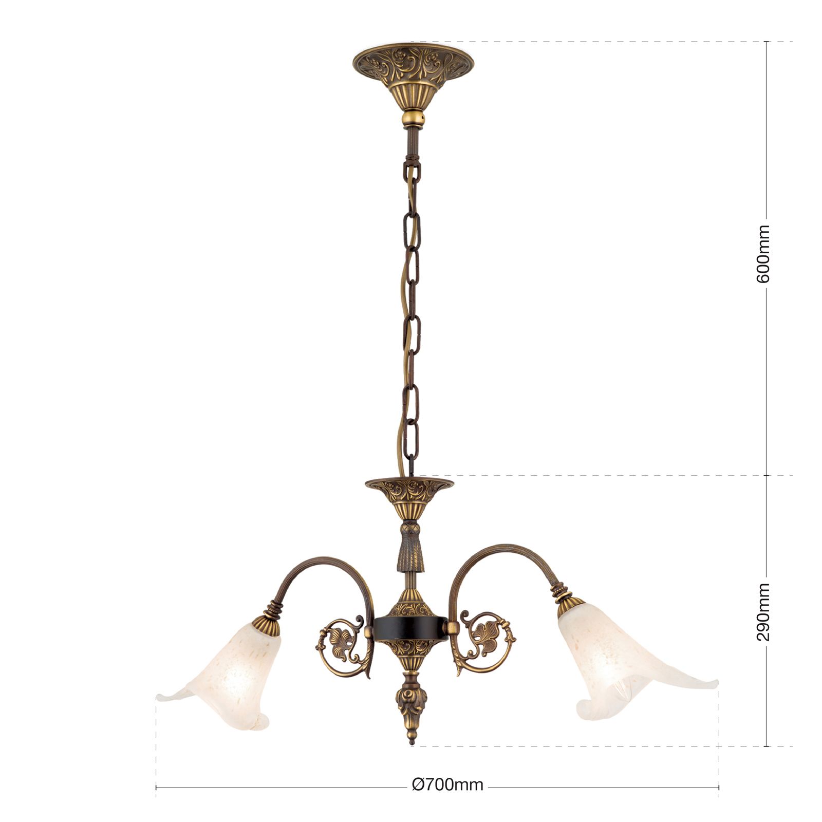 Chandelier TOSCA, 2-flames, antique patina