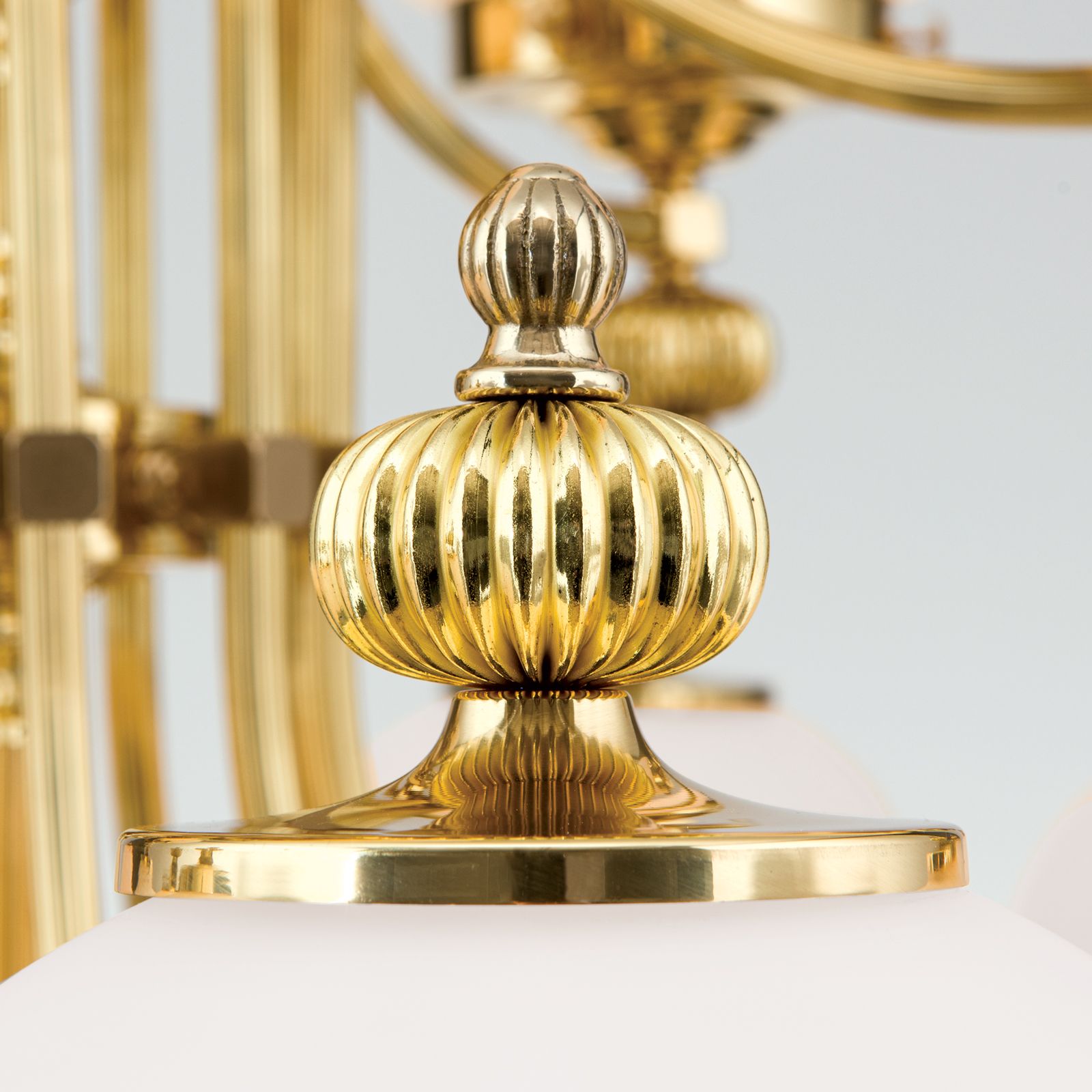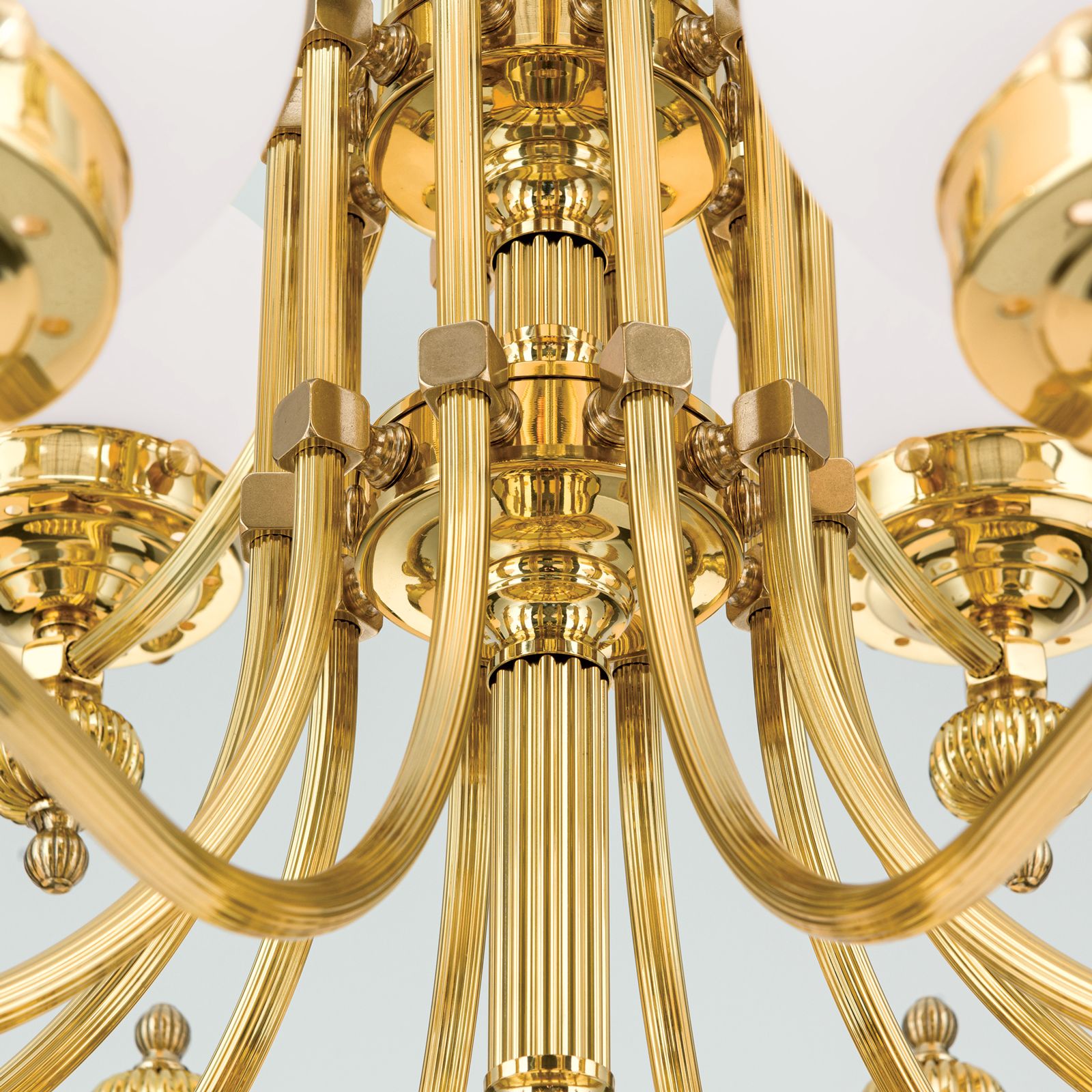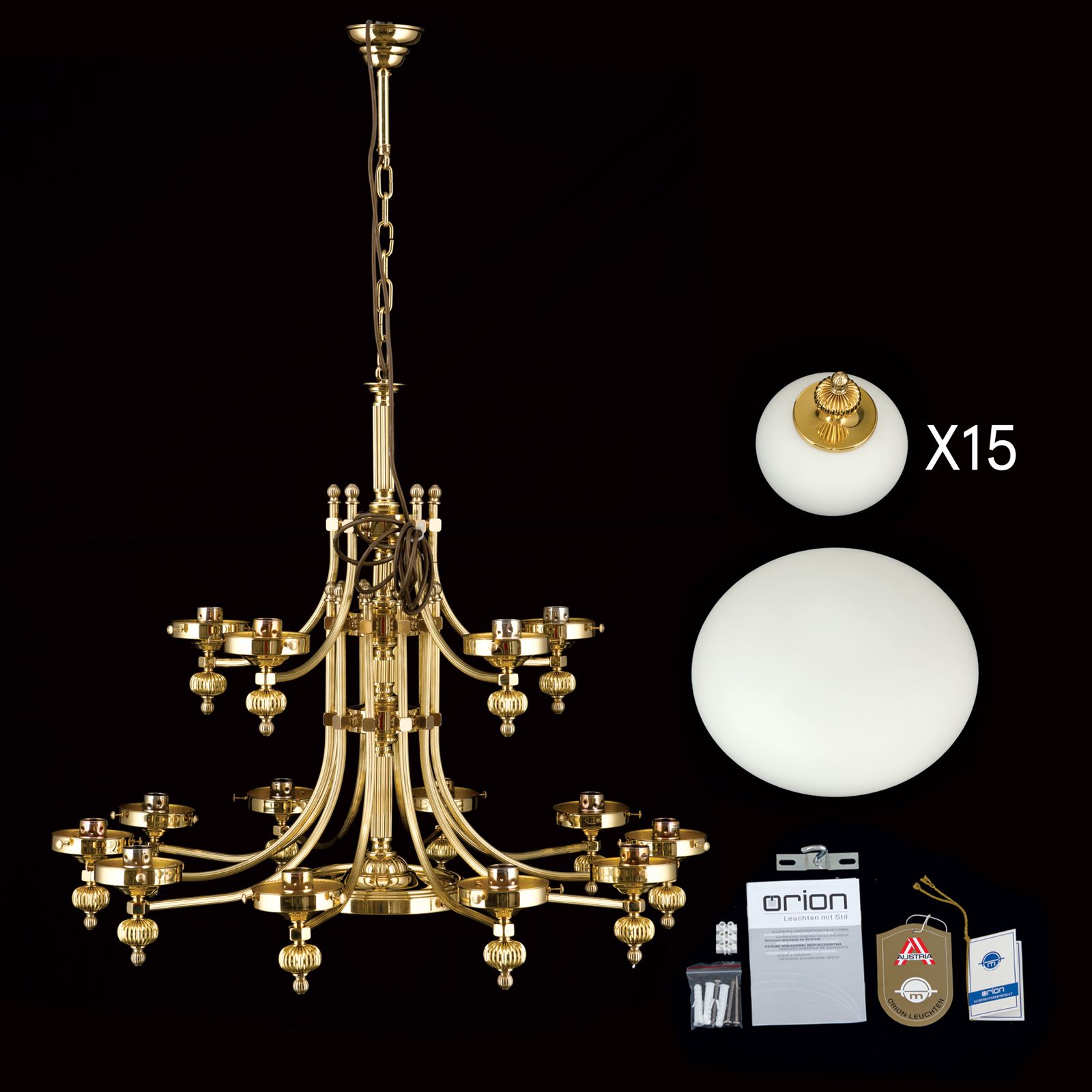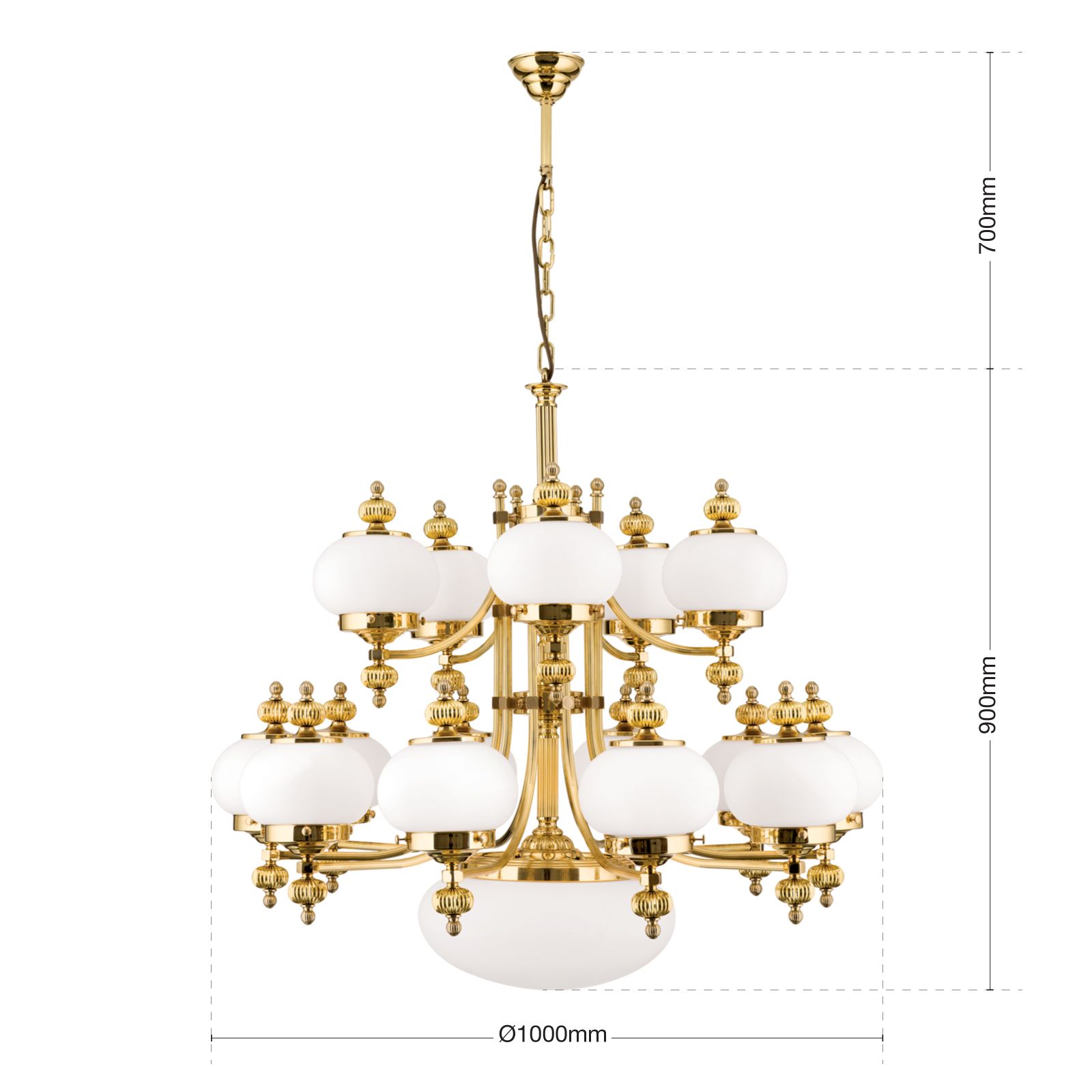 Chandelier WIENER NOSTALGIE, 16-flames, shiny brass, with opal matt glass, upwards