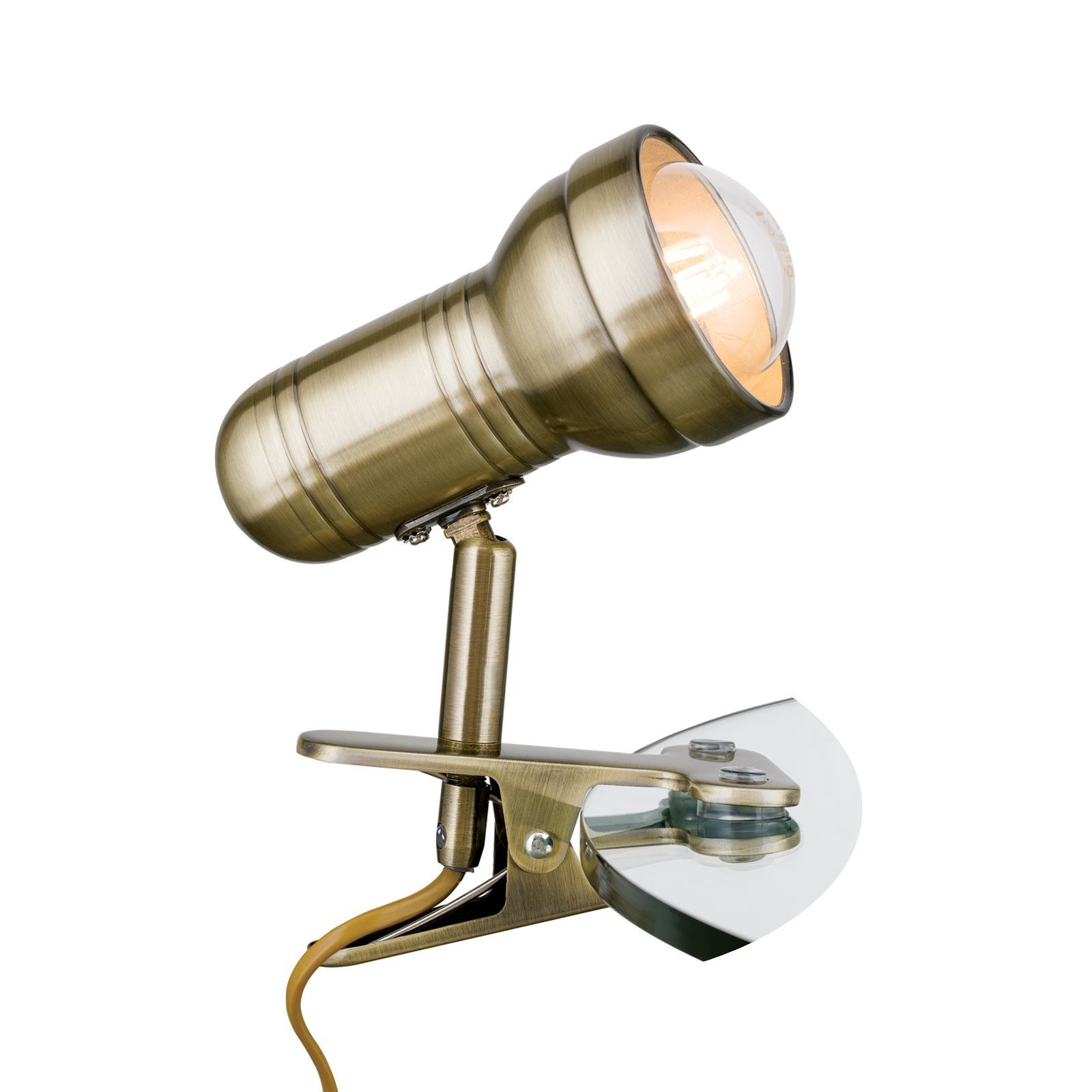 Clamp-on spotlight WILHELM, antique brass finish, short