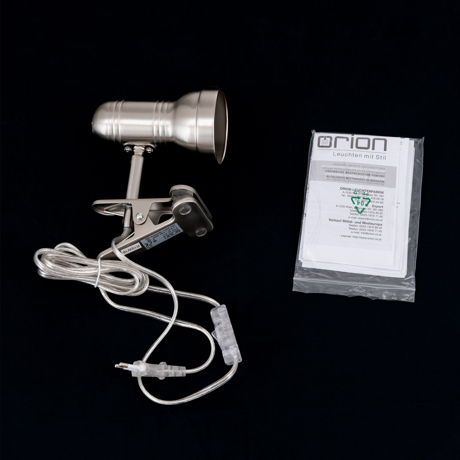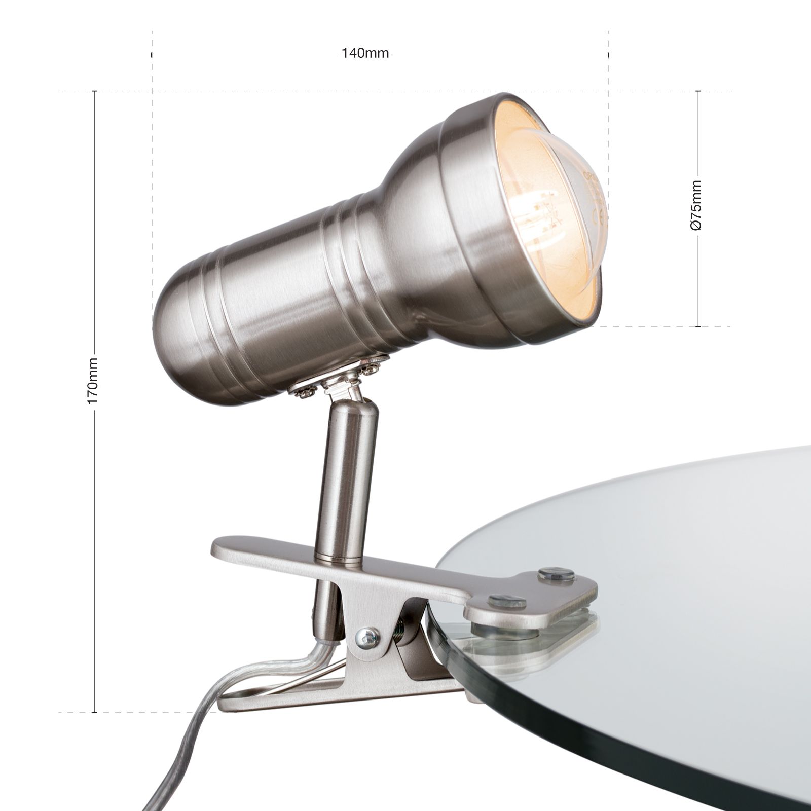 The deliberately cool, functional industrial chic ensures that WILHELM series' clamp spotlight has an adequate place in any interior. The light's clamp and swivel option offer maximum flexibility. This makes the spotlight particularly suitable for installation on table edges, shelf sides, sideboards, shelves or bed heads. The lamp stem's discreet gradations structure the body embellishing the understated look with a design statement. The spotlight is equipped with an E27 socket for 60 watts maximum. The use of energy-saving, matt LED drop shaped bulbs.