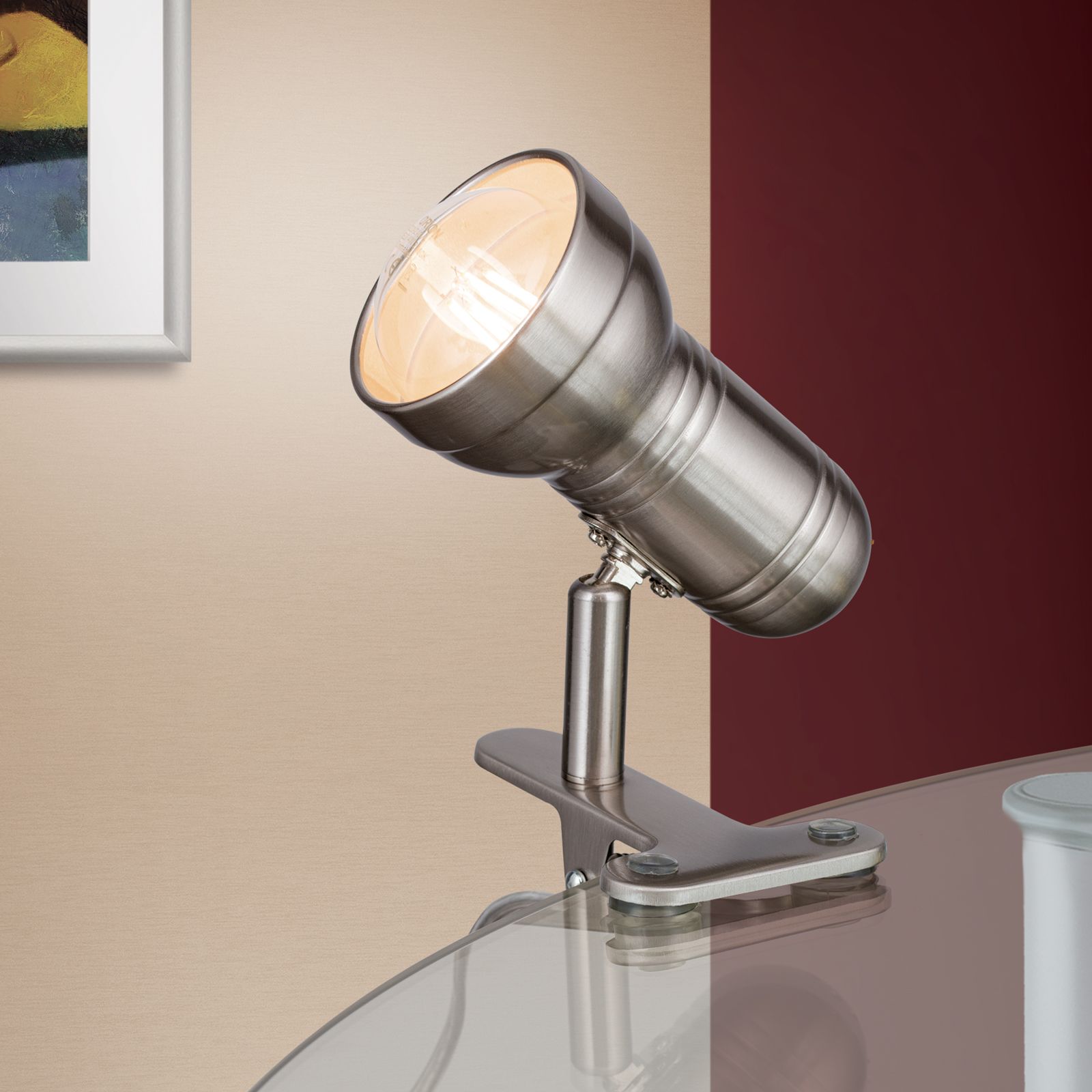 Clamp-on spotlight WILHELM, satinated, short
