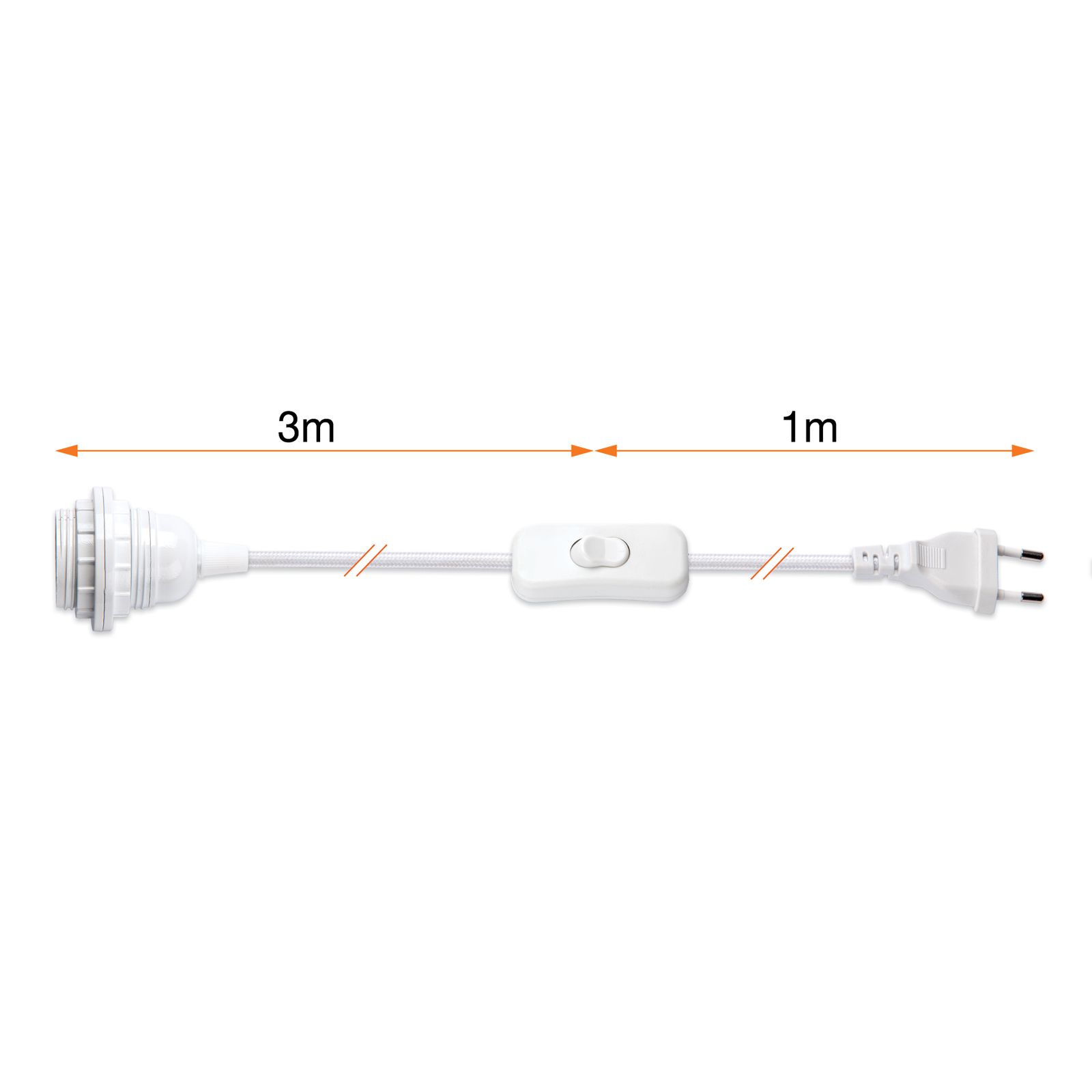 Anschlußkabel Textil weiß/E27/Schalt 4M