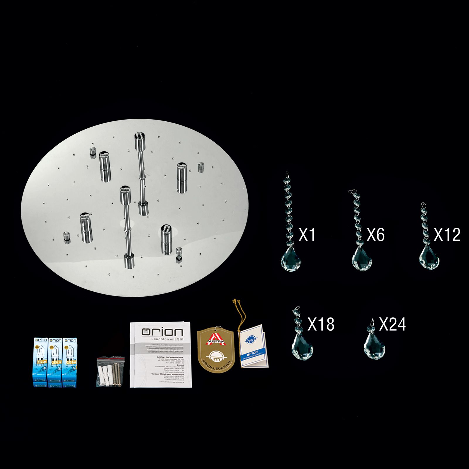 CELESTE is dimmable and has nine lamp holders of 40 watts each. Warm white LED bulbs with a G9 base are the perfect choice to create enchanting lighting effects while keeping energy consumption low.