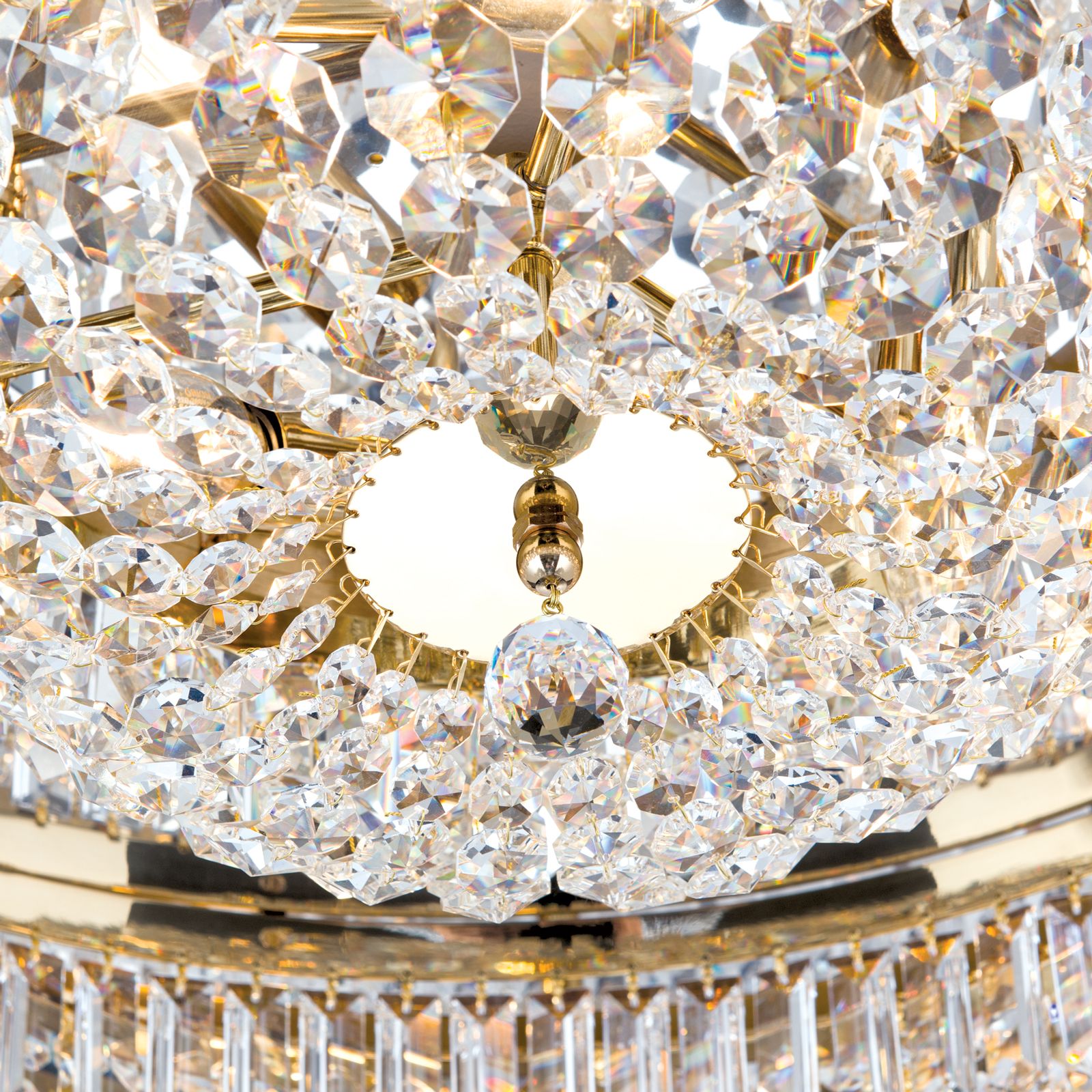 Ceiling chandelier SATURN presents itself as noble yet modern and will become any room's shining centre. High-quality chandelier crystal, a corpus made of solid brass and 24 carat gold plating determine the exclusive design.