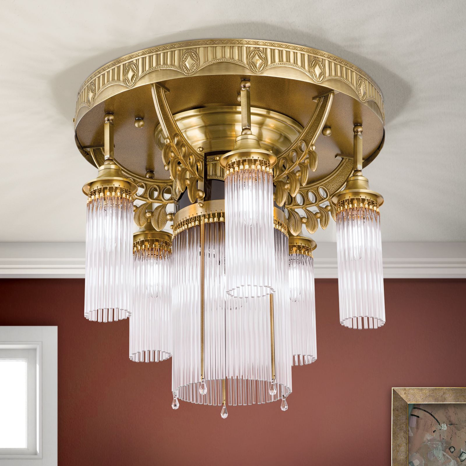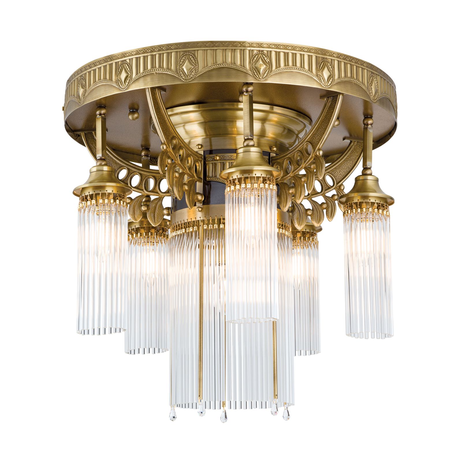Ceiling chandelier ADELE, 6-flames, antique brass, with glass rods