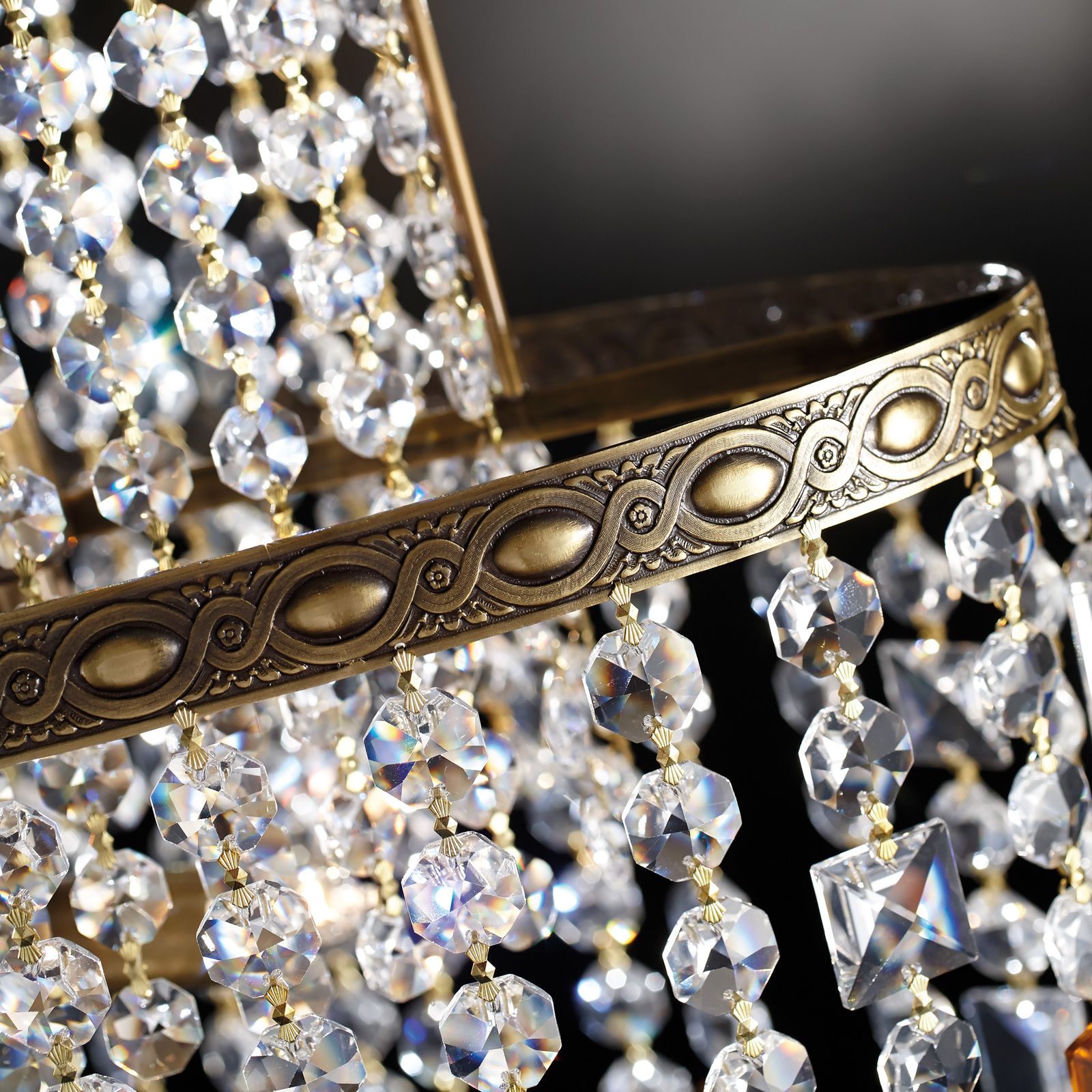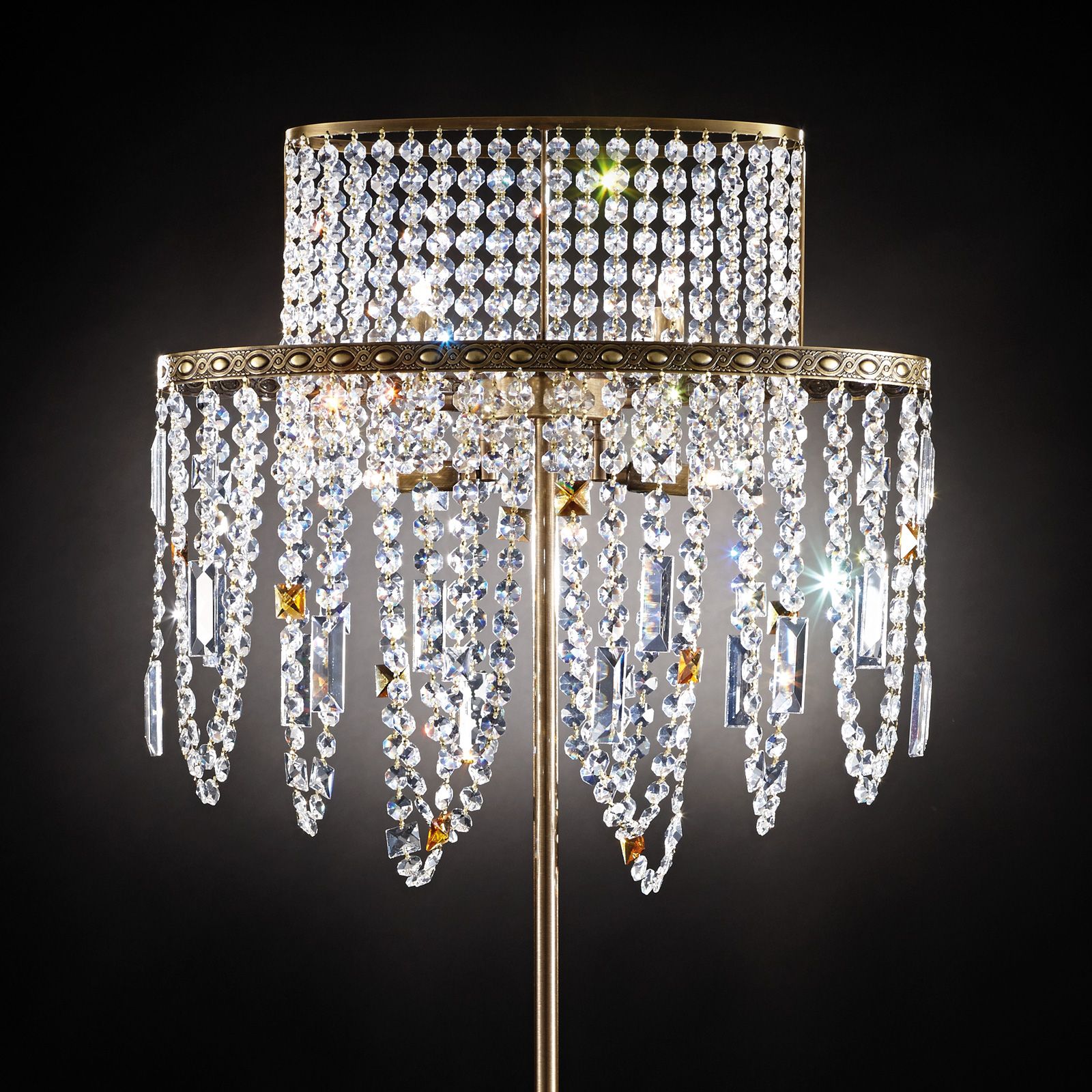 It can be conveniently switched on and off by means of a foot pedal switch. Many clear crystals guarantee the lamp's exceptional sparkle. The amber-coloured crystals provide a special touch rounding off the overall design.