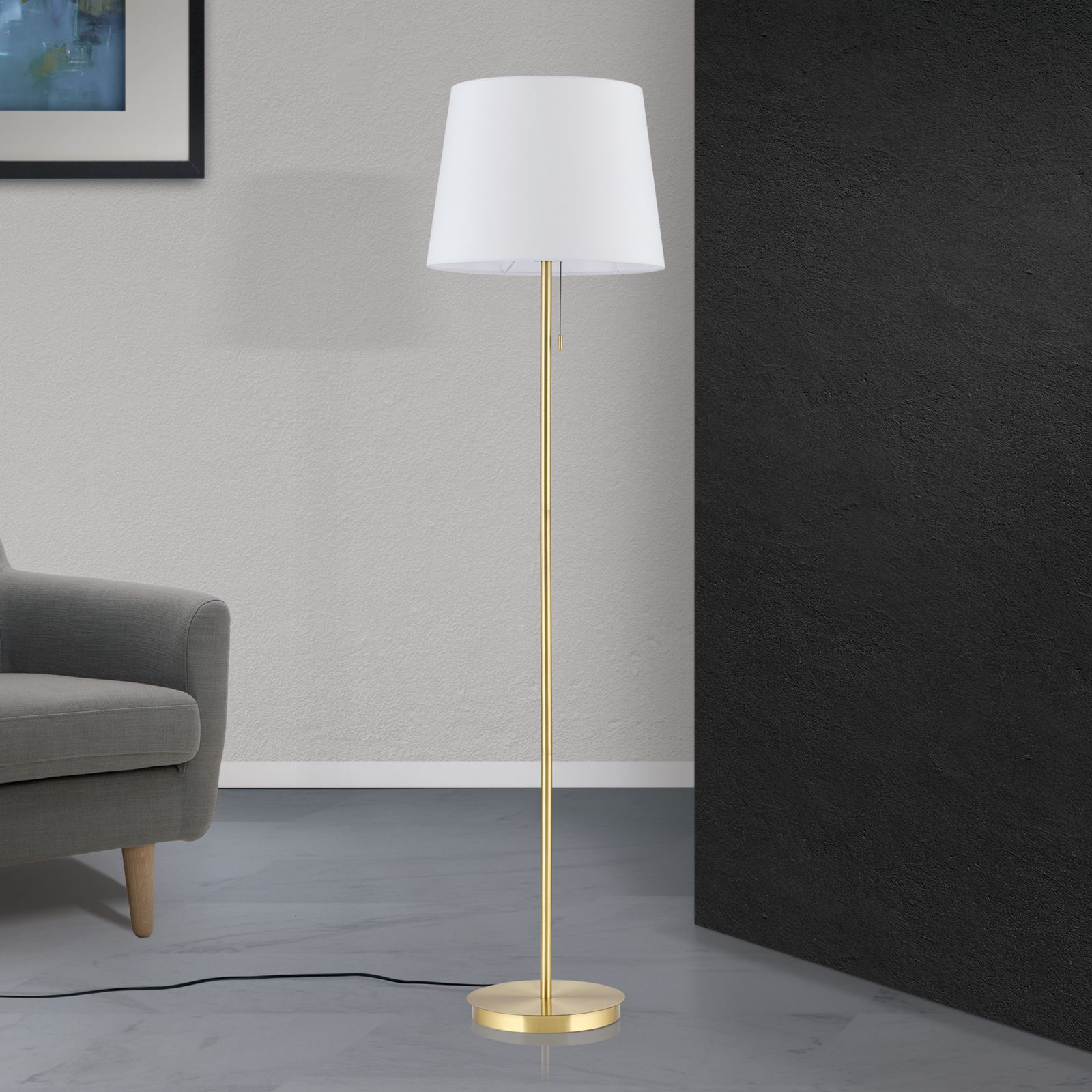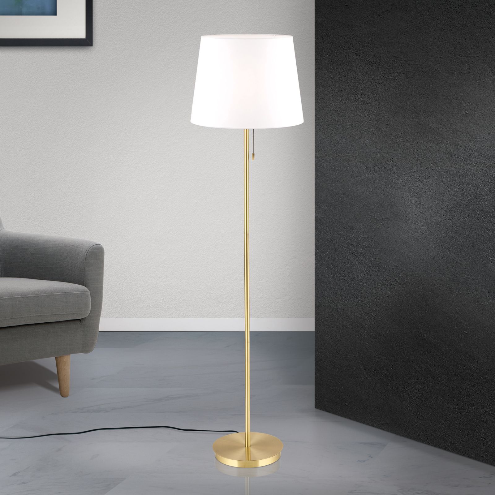 You can't go wrong with a classic floor lamp, and LUDWIG is no exception. Whether in satin, patina, white or black completed by a white linen shade, you are spoilt for choice. The pull switch on the shade allows easy and quick switching on and off of the light. Thanks to its white shade, it emits light evenly into the living space and provides enough light for a cosy reading hour on the couch. LUDWIG is perfectly suitable as background lighting to create a homely ambience. Its simple design makes it a timeless home accessory. The E27 socket can be operated with a maximum of 40 watts.