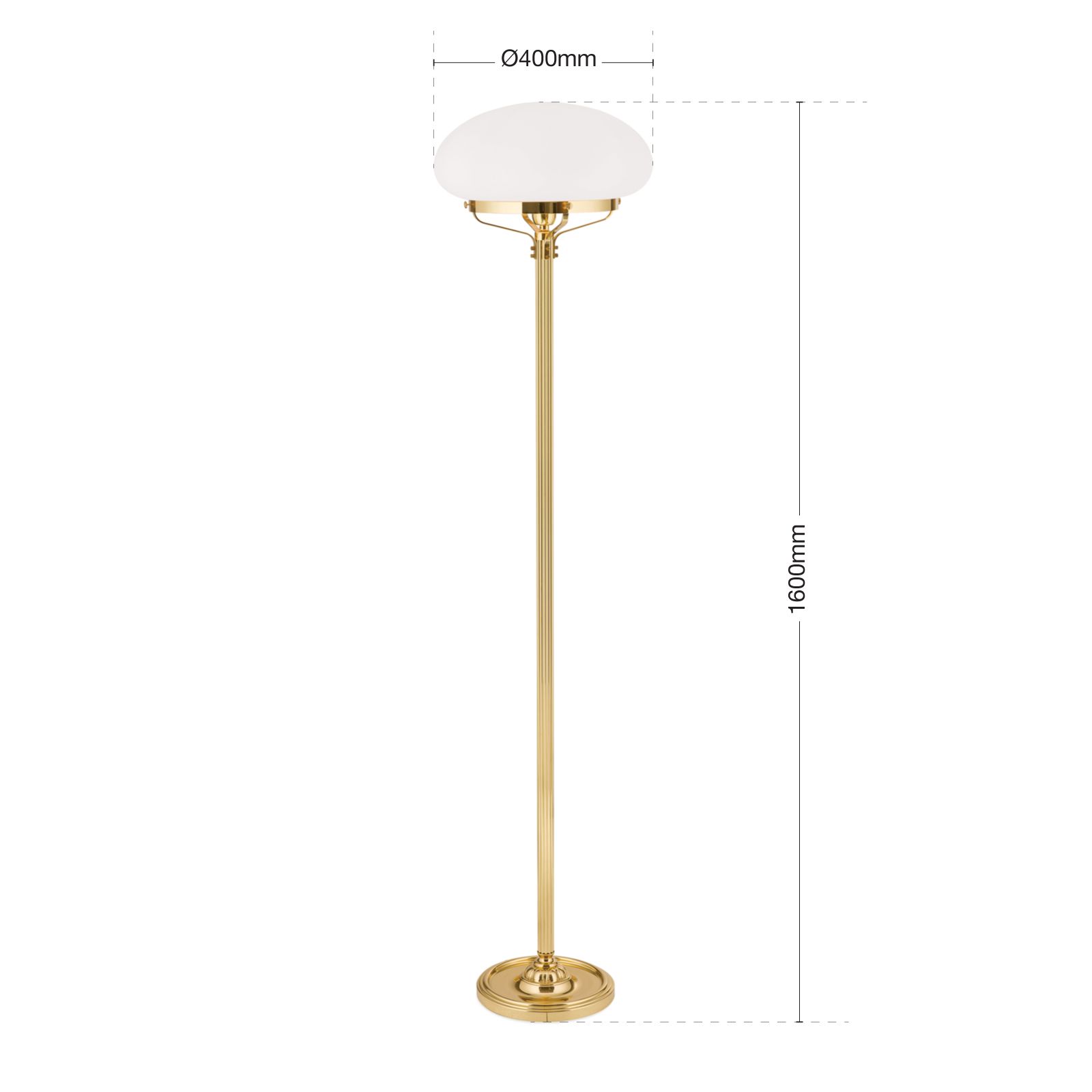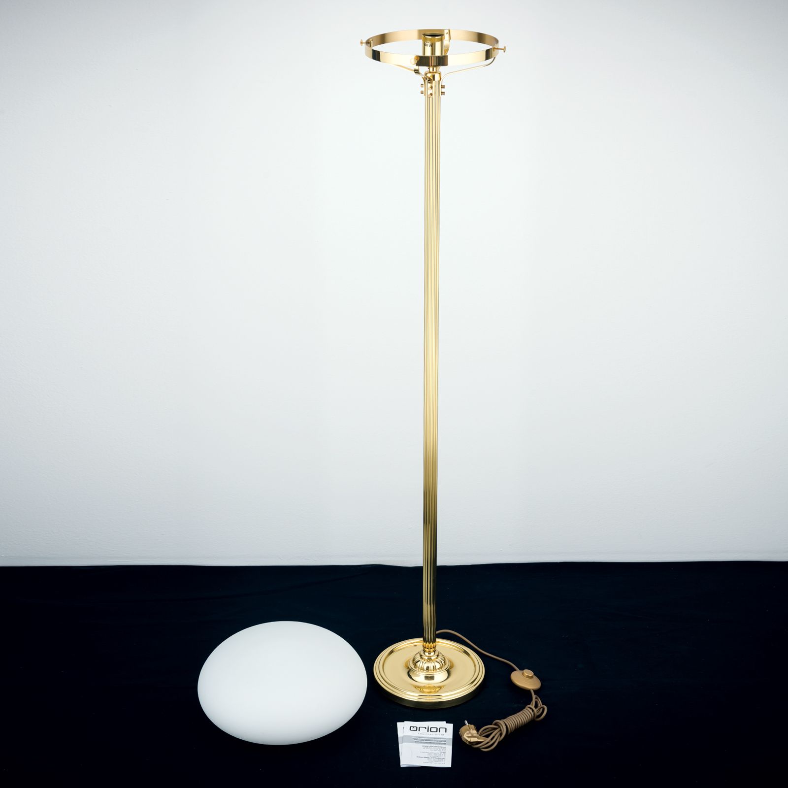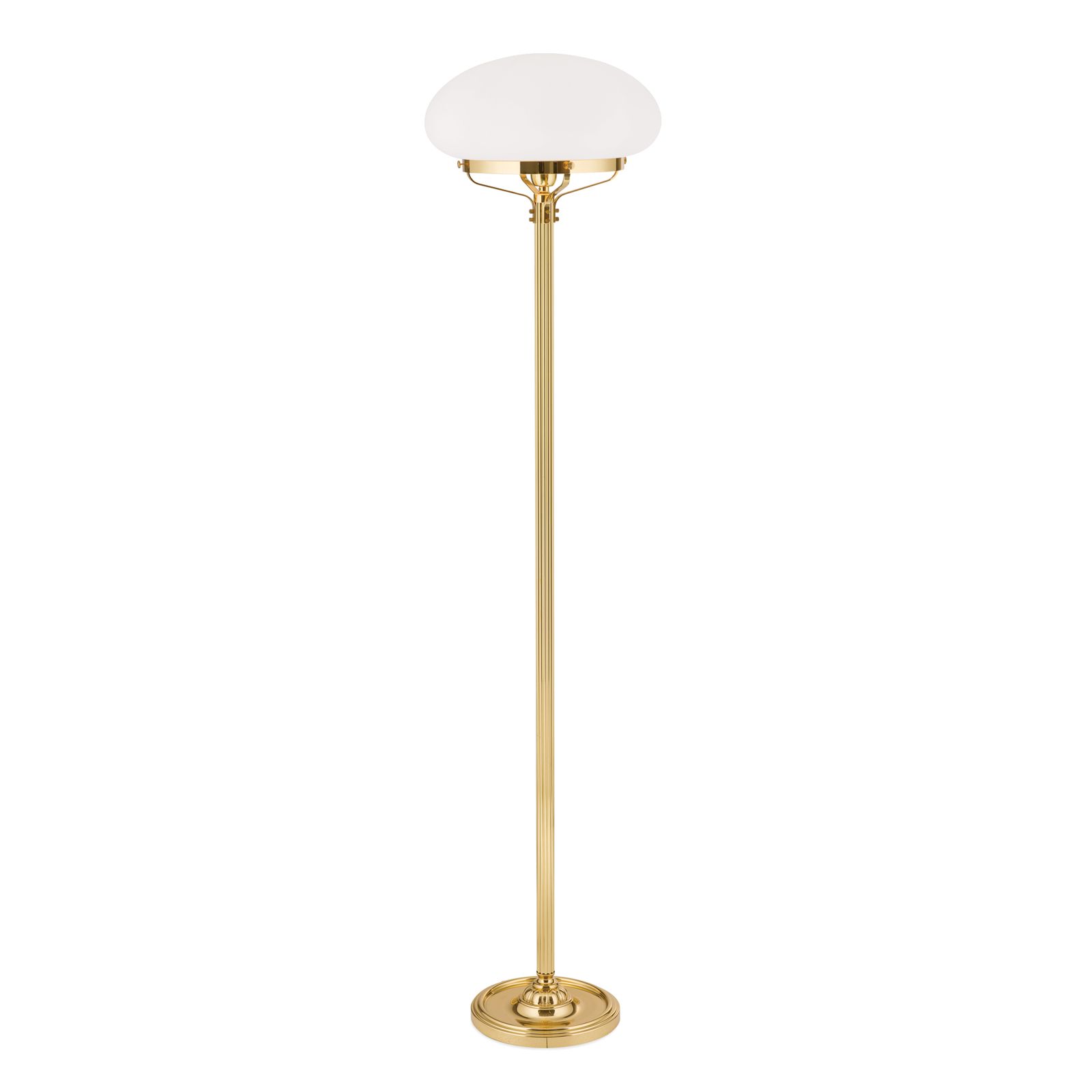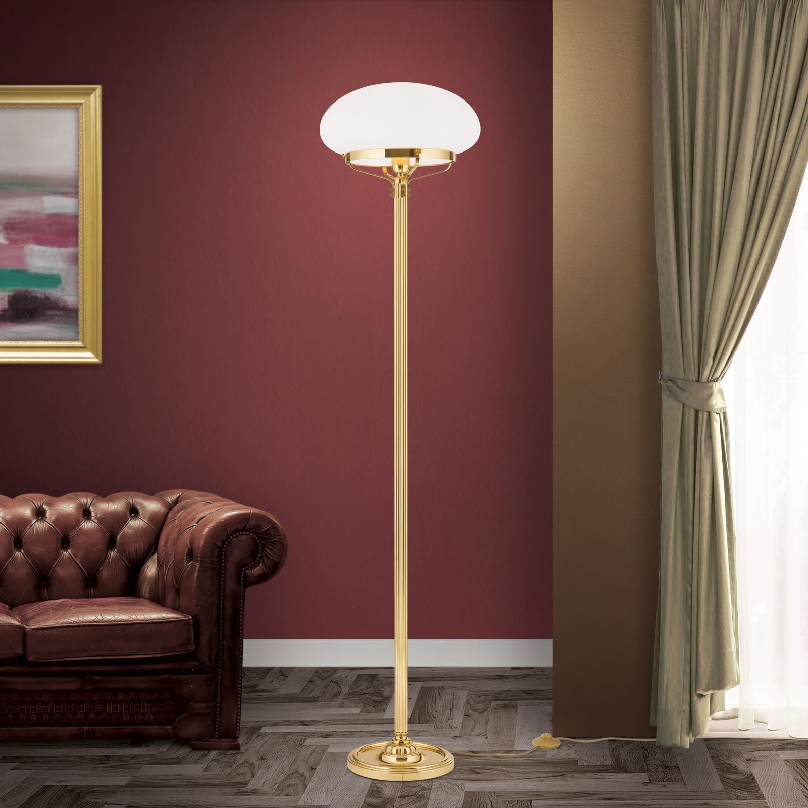 Floor lamp WIENER NOSTALGIE, shiny brass, with opal matt glass