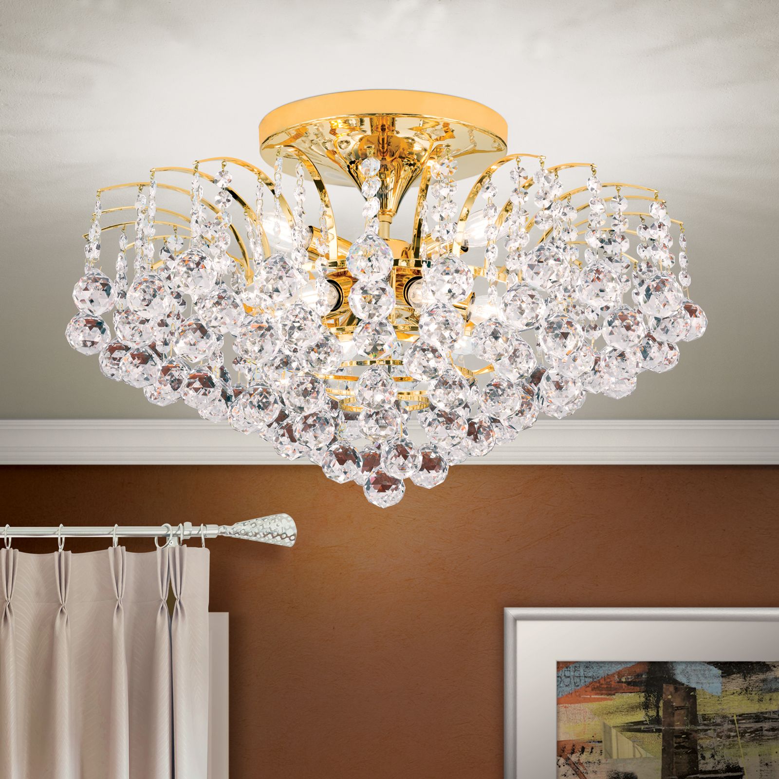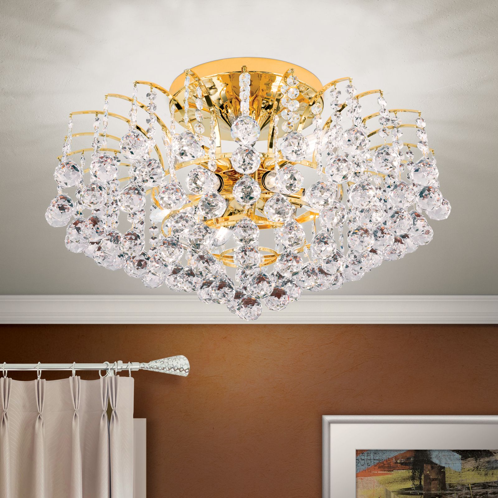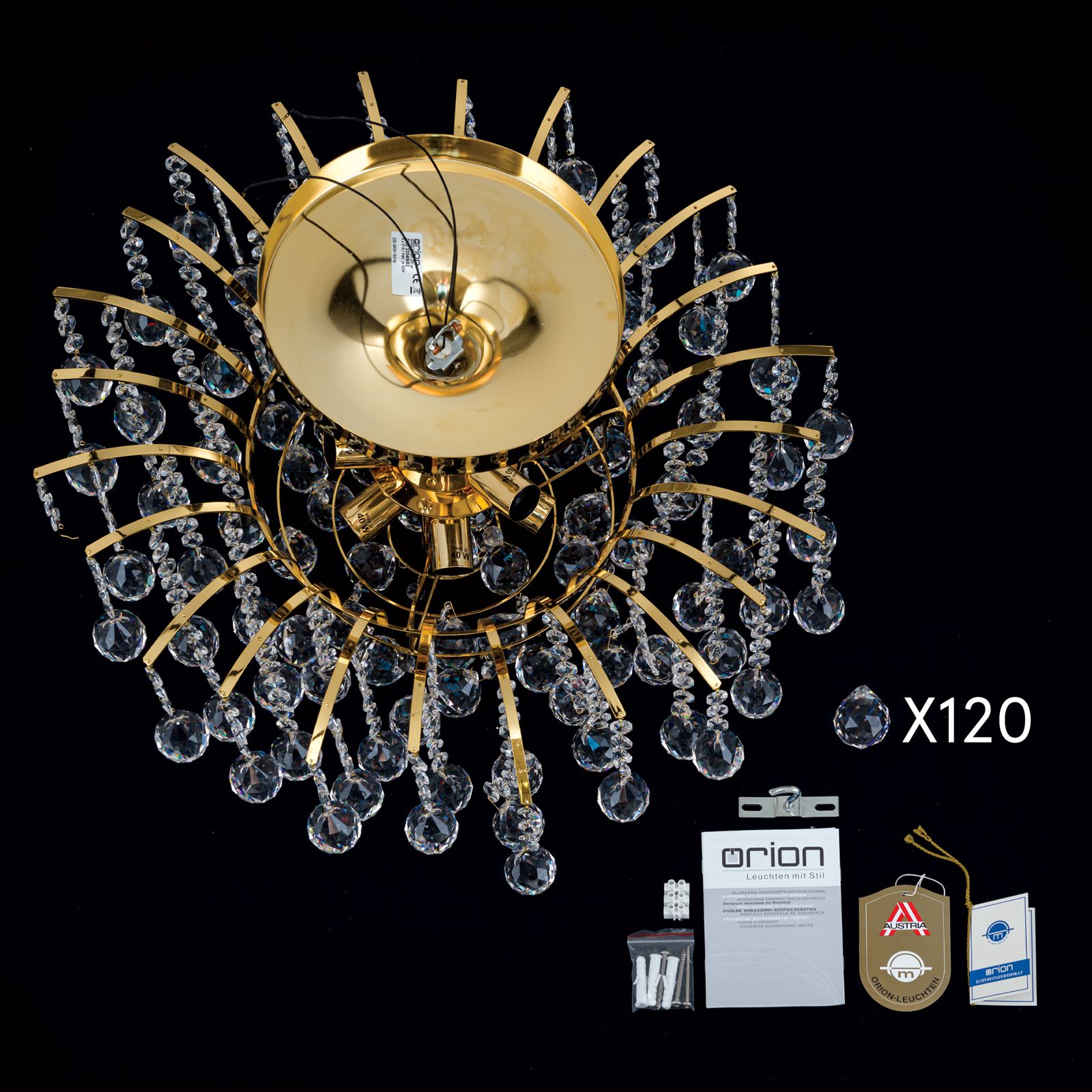 KRISTALL KLASSISCH ceiling light, 9 lamps, 24K gold plated, clear crystal