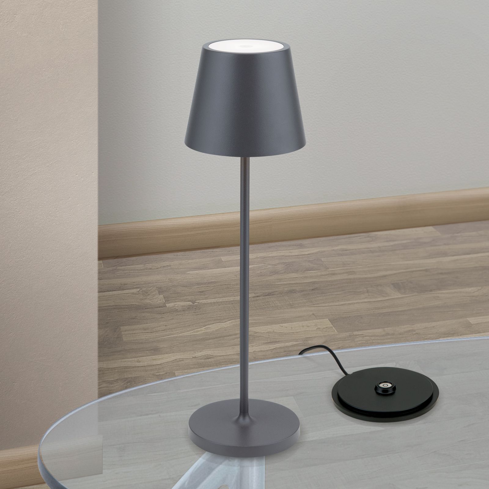 The battery CHANDELLE table lamp impresses with its minimalist design, where the focus is on function. It is charged in a flash by the integrated USB docking station and can optionally be set up without a cable. The warm white light (3000 Kelvin) is evenly emitted through an opal matt cover, which is attached to the top and bottom of the lampshade. CHANDELLE is available in numerous colours: black, white, anthracite and rust brown. Equipped with the protection class IP54, it is suitable for damp rooms such as a bathroom, where it can be used as an additional light source or simply as a nice background lighting during a relaxing bath. On the terrace or in the garden, it is the perfect mobile light source to accompany you through the night. It is a portable LED battery light for indoor or outdoor use.